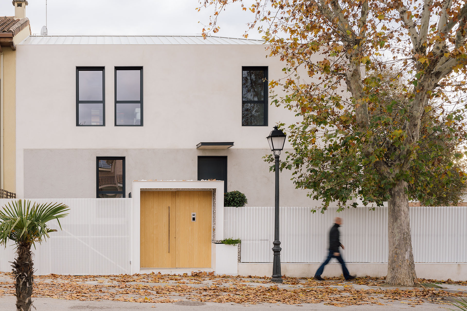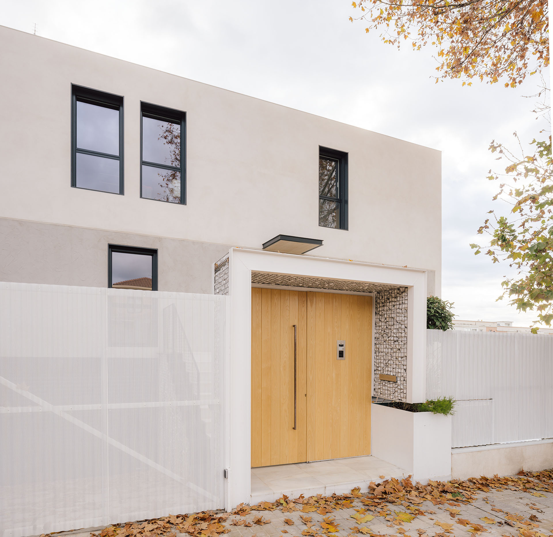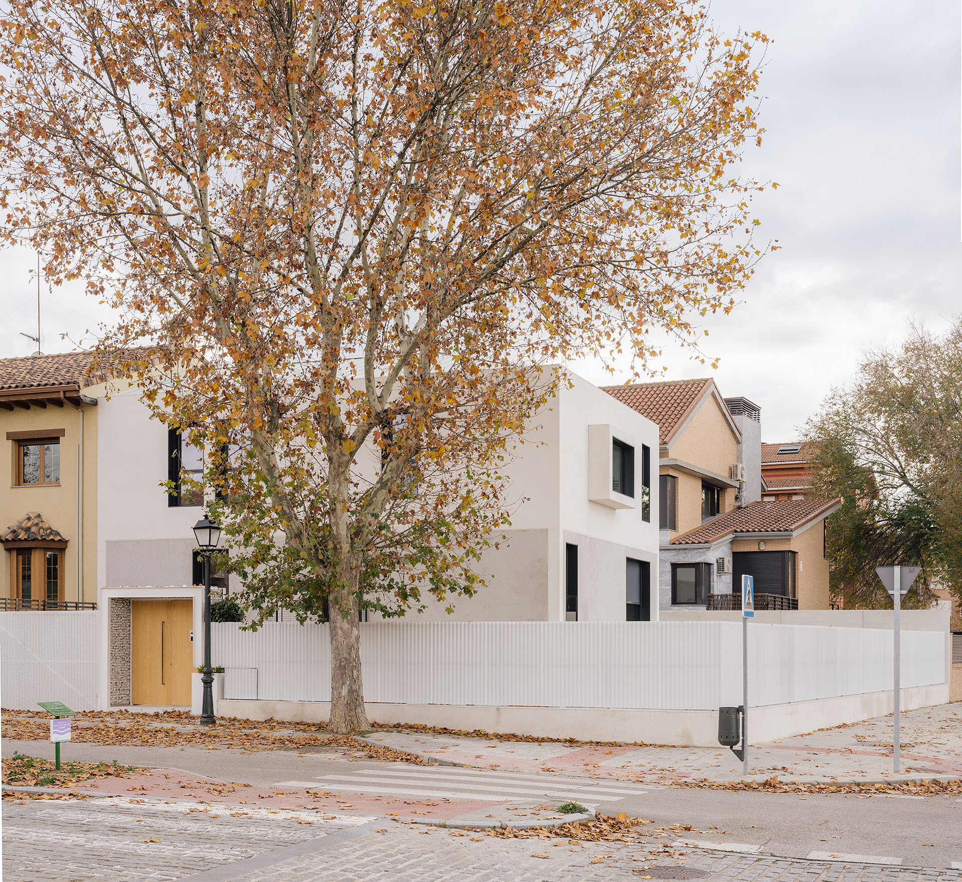 스페인 마드리드 외곽 비야비시오사데오돈Villaviciosa de Odón에, 지하 1층, 지상 2층 규모로 지은 반 단독주택이다. 설계팀과 건축주가 하나하나 긴밀하게 협력하여, 요구와 취향을 100% 담아낸 디자인 주택이기도 하다.