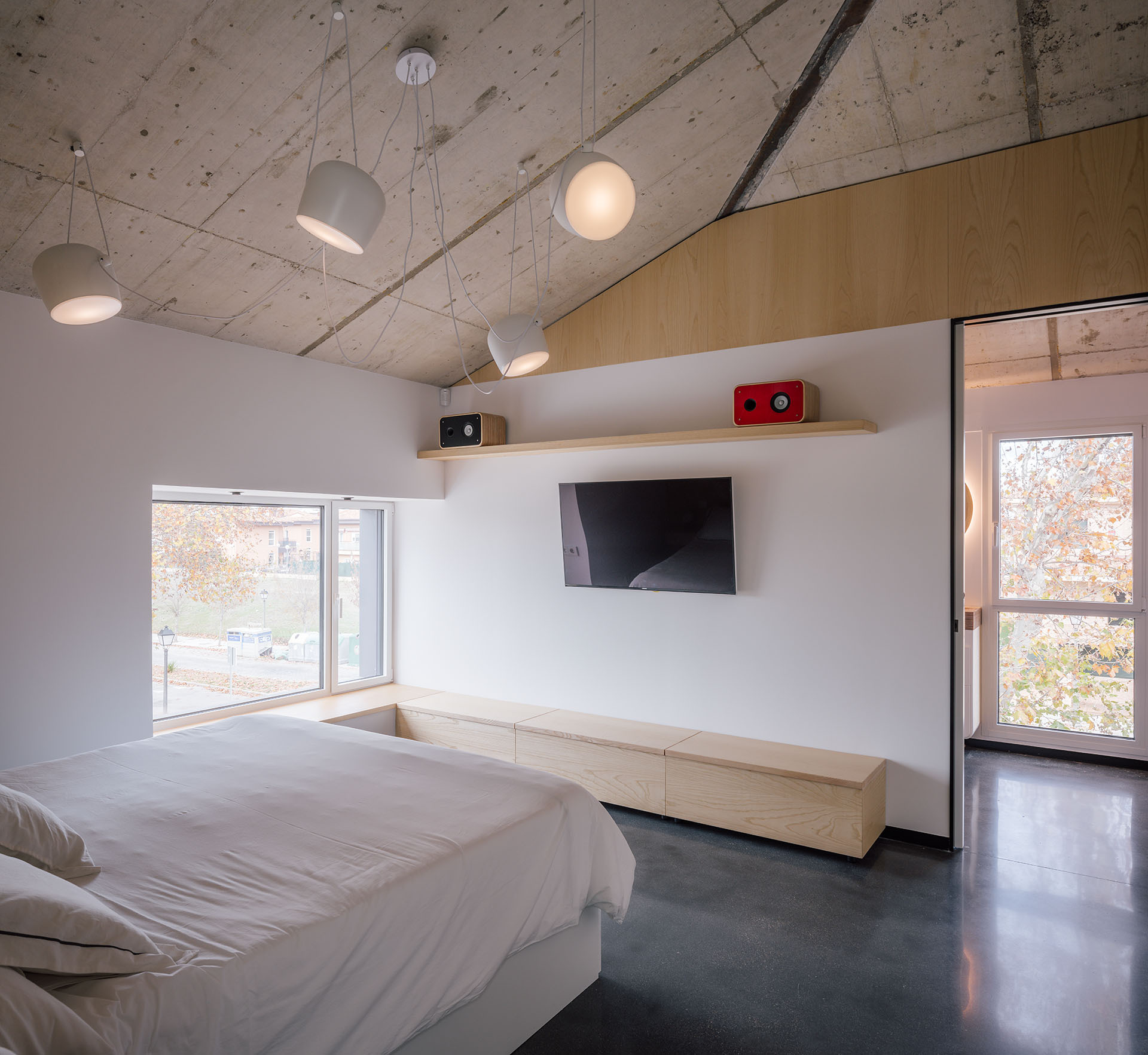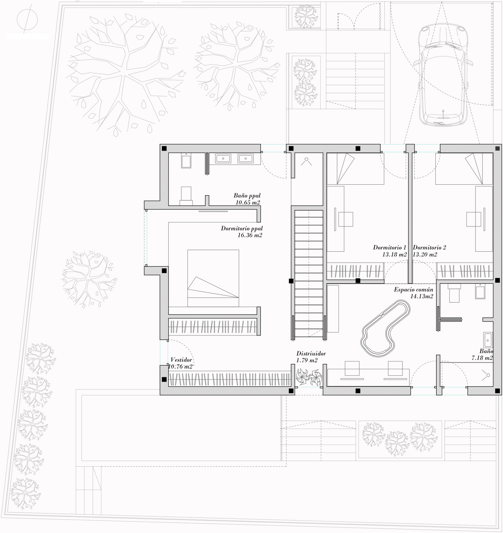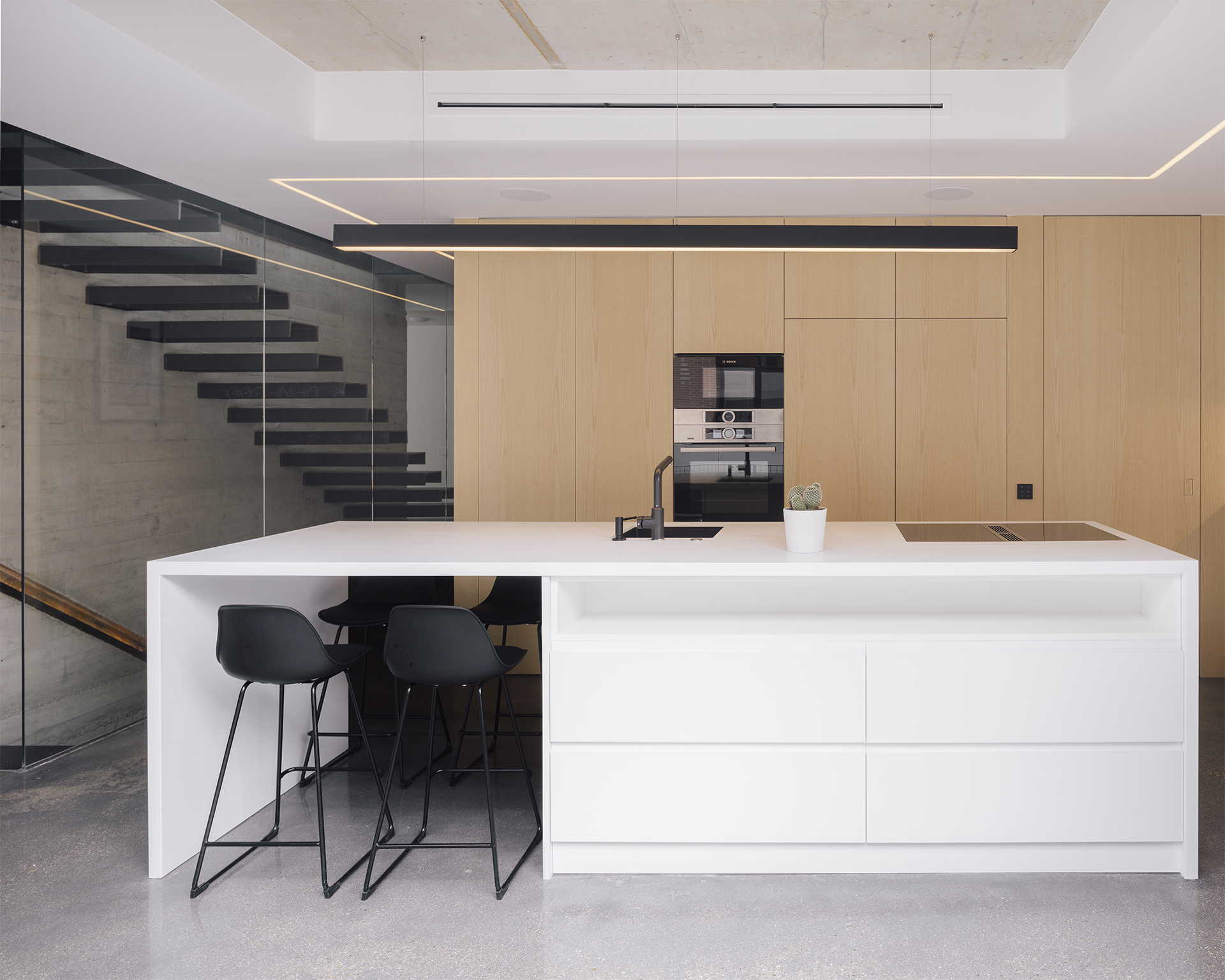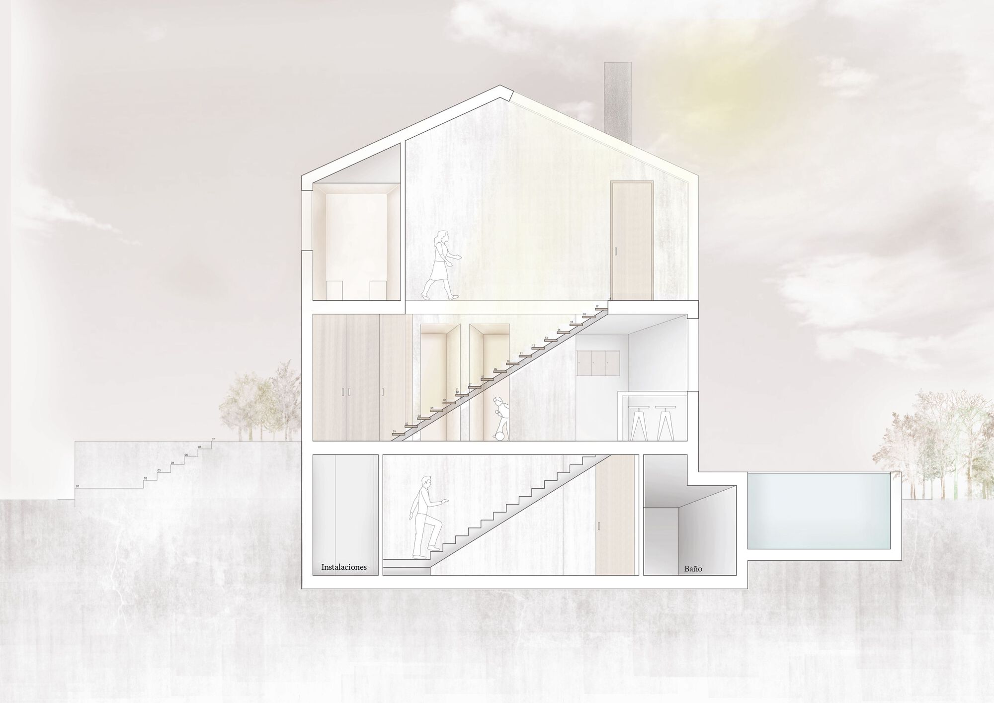 스페인 마드리드 외곽 비야비시오사데오돈Villaviciosa de Odón에, 지하 1층, 지상 2층 규모로 지은 반 단독주택이다. 설계팀과 건축주가 하나하나 긴밀하게 협력하여, 요구와 취향을 100% 담아낸 디자인 주택이기도 하다.