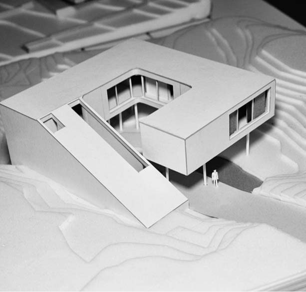 이 집 디자인에는, 전망과의 연결성을 강화하기 위해 주거 공간을 필로티 구조로 높이는 아이디어, 가변적인 개방형 구조의 거실 평면, 공용 공간과 집중 공간(작업실 또는 서재) 사이의 유용한 분리 구조 등이 포함되었다. 한편으로는 나무를 포함한 기존 환경을 유지해야 했고, 다른 한편으로는 탁 트인 호수를 향한 쪽에 가장 중요한 공간을 배치해야 했다.