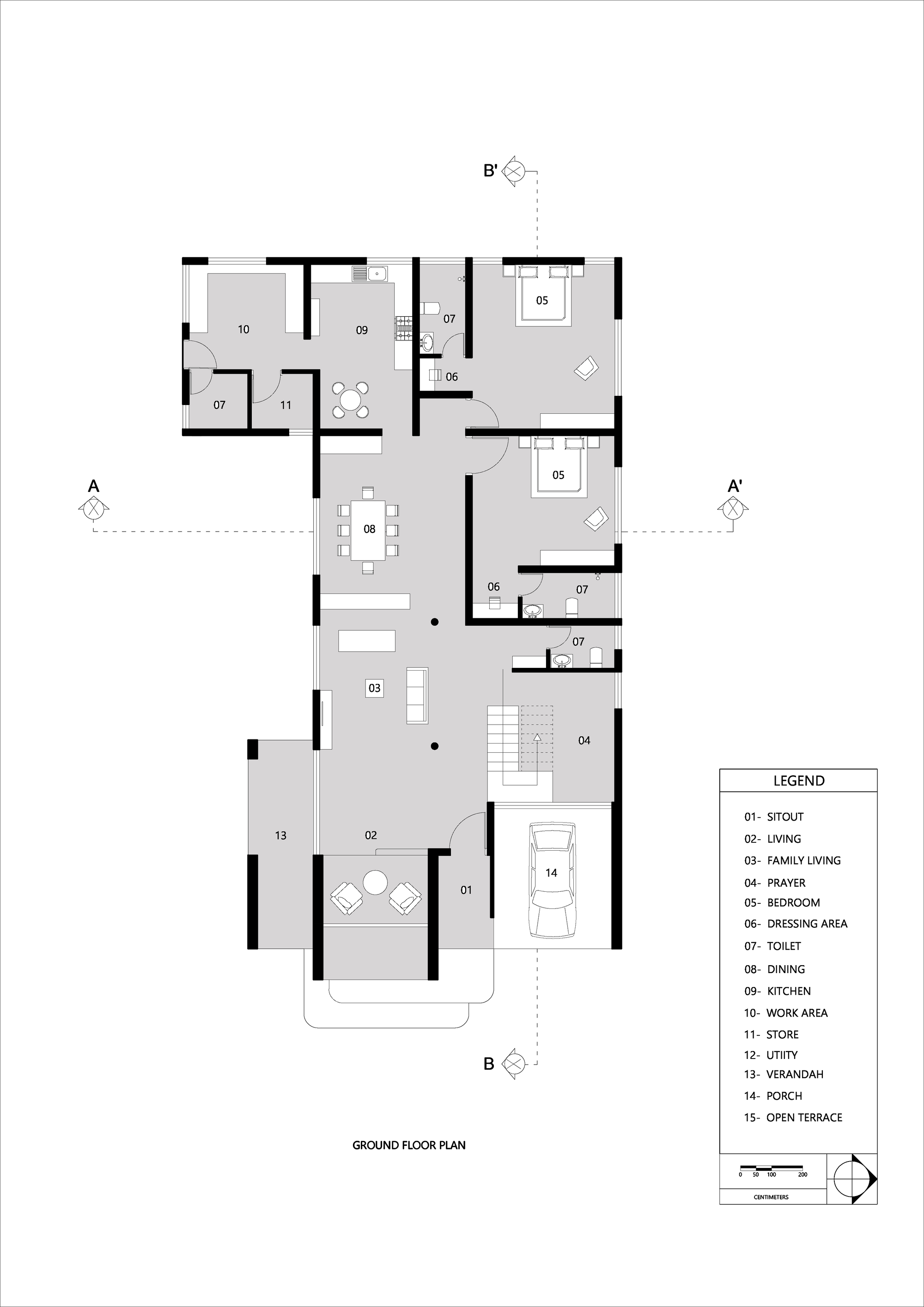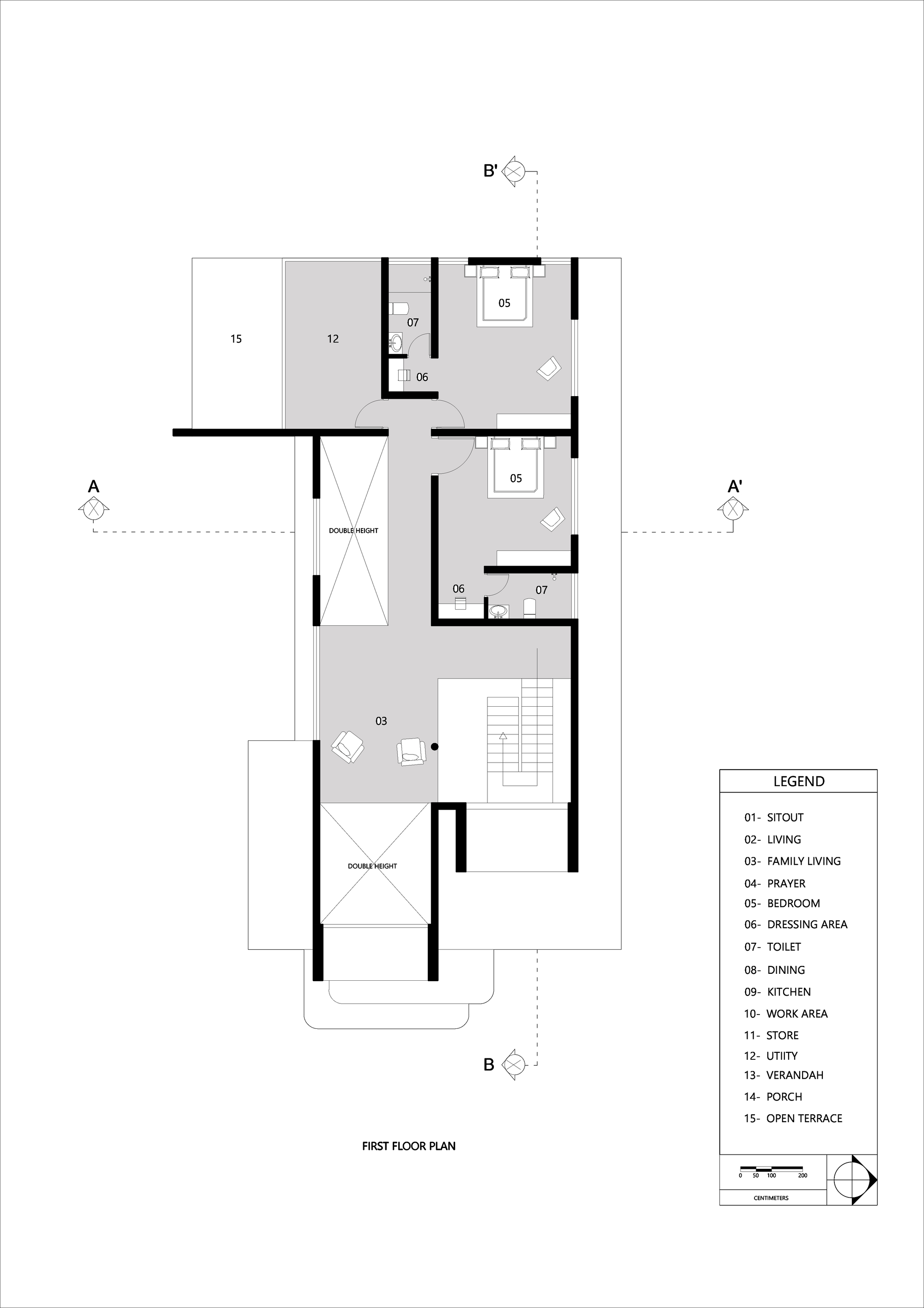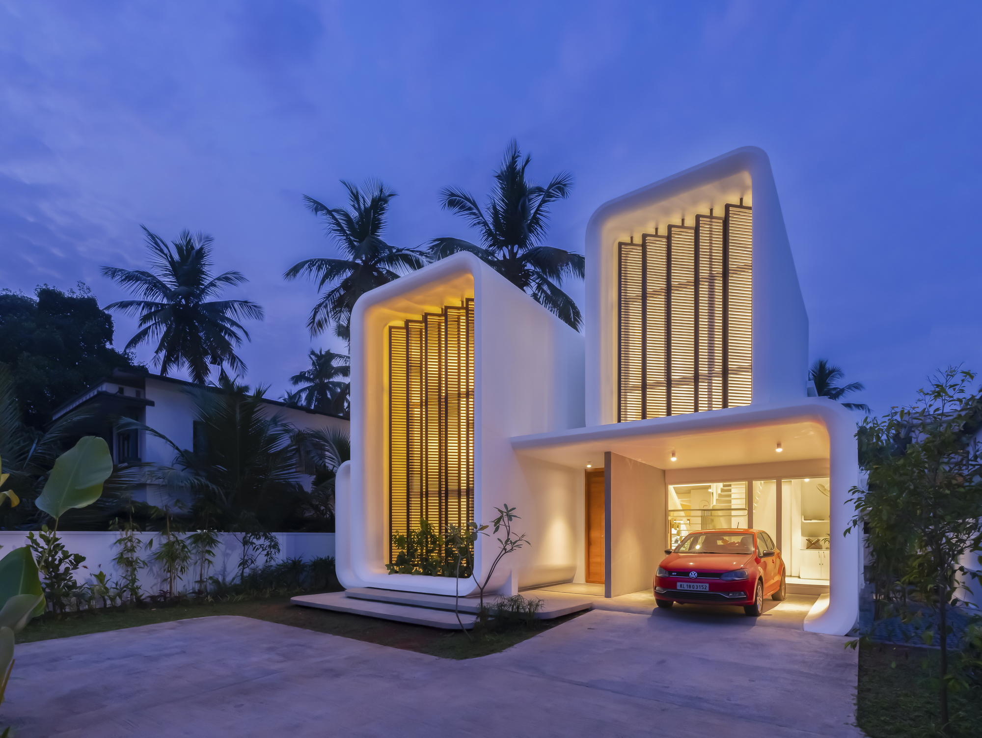 미학적으로 매력적이고, 살기 편하며, 외부로 개방되어 있는 동시에 보안과 프라이버시를 유지하는, 그런 독특한 주거 공간으로 계획된 인도 주택이다.