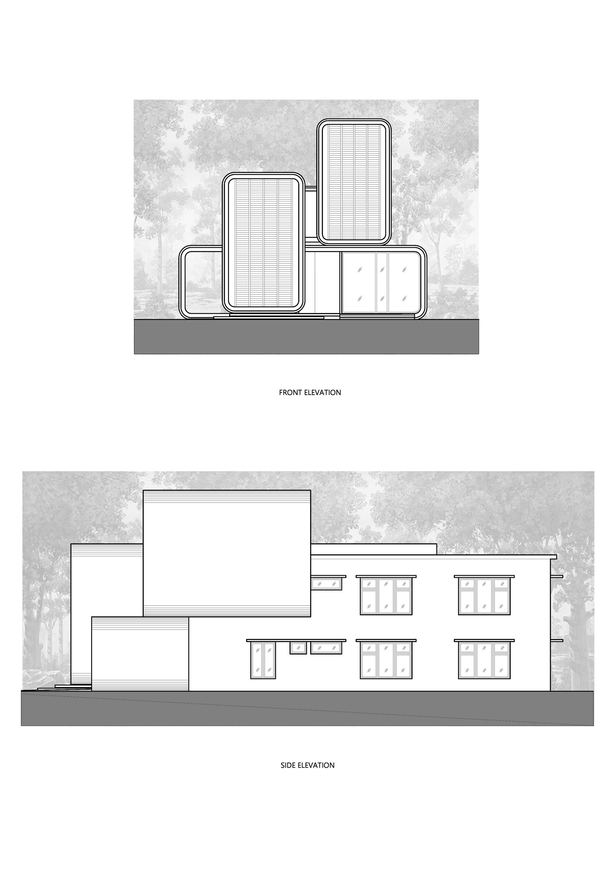 “건축주가, 새로운 형태의 밝고 채광이 잘 되는 주거 공간으로 지어달라고 했습니다.” 설계팀의 설명이다. “그래서 모서리가 둥근 흰색 캔버스나 아이폰 형태의 블록들이 테트리스 구조로 쌓인 것처럼 디자인을 했습니다.”