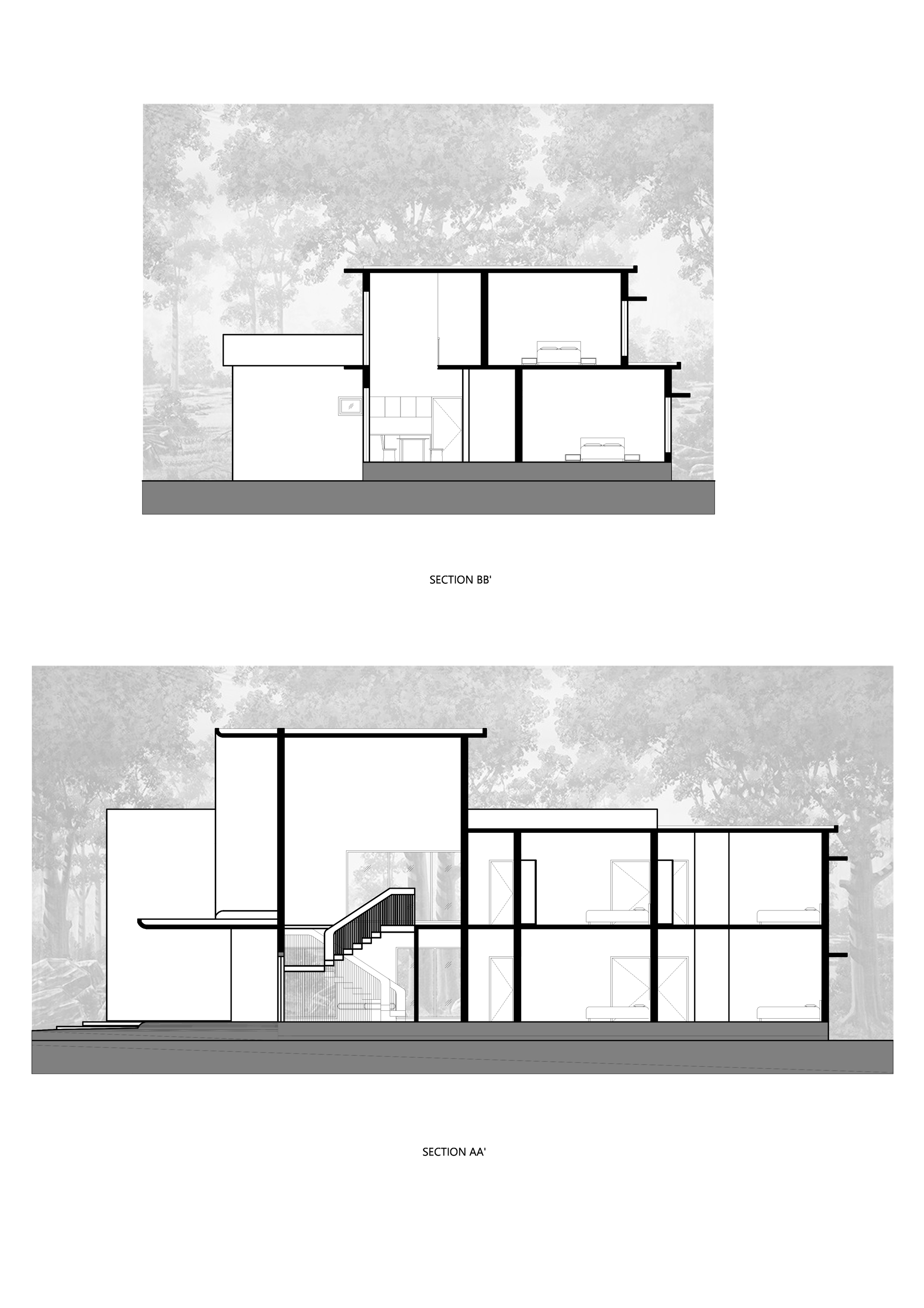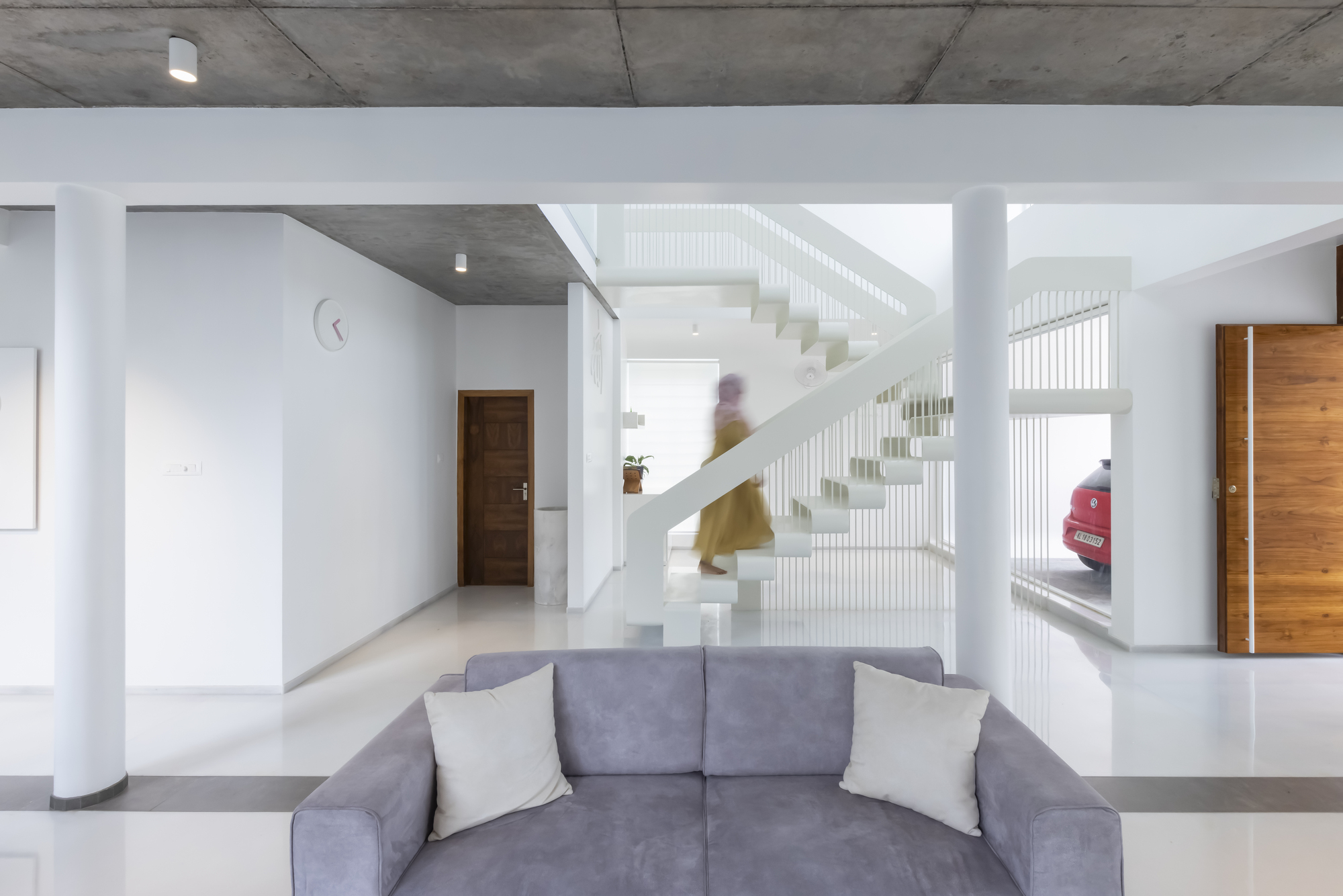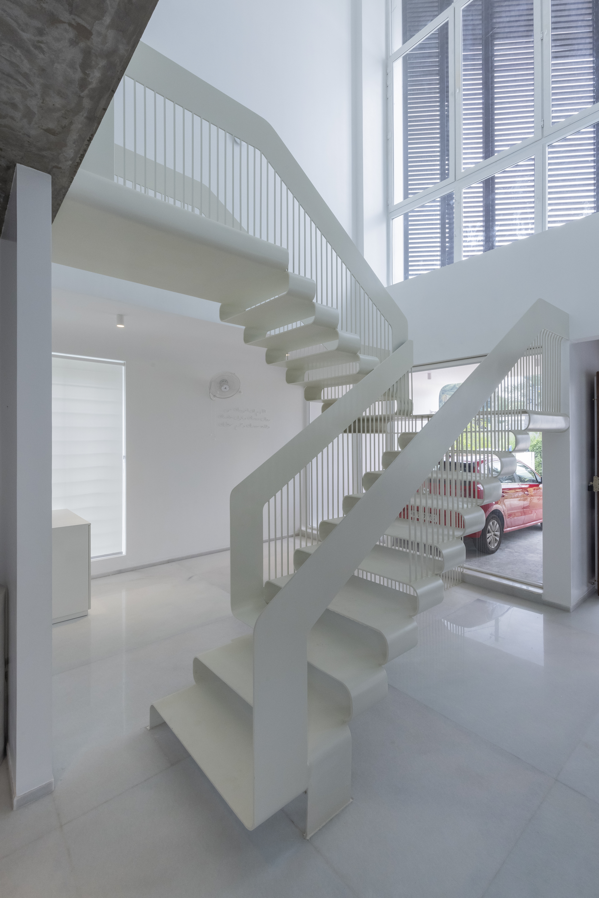 계단, 가구 등 다양한 요소들도 집의 형태와 동일한 둥근 모양으로 디자인을 하고, 전체적으로 흰색을 적용하여, 부드럽고 평온한 분위기를 냈다. 다른 미술 조각품들과 함께 곡선형 조형물처럼 디자인된 계단이 특히 눈길을 끈다.