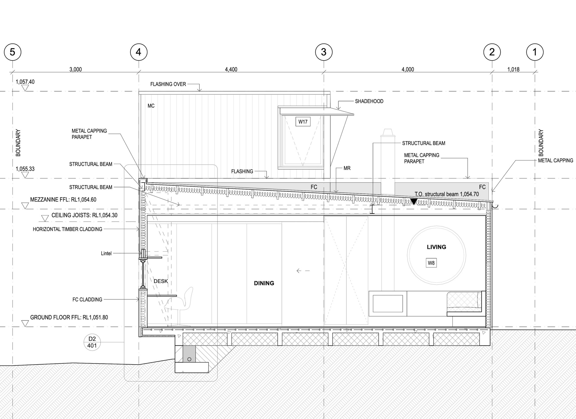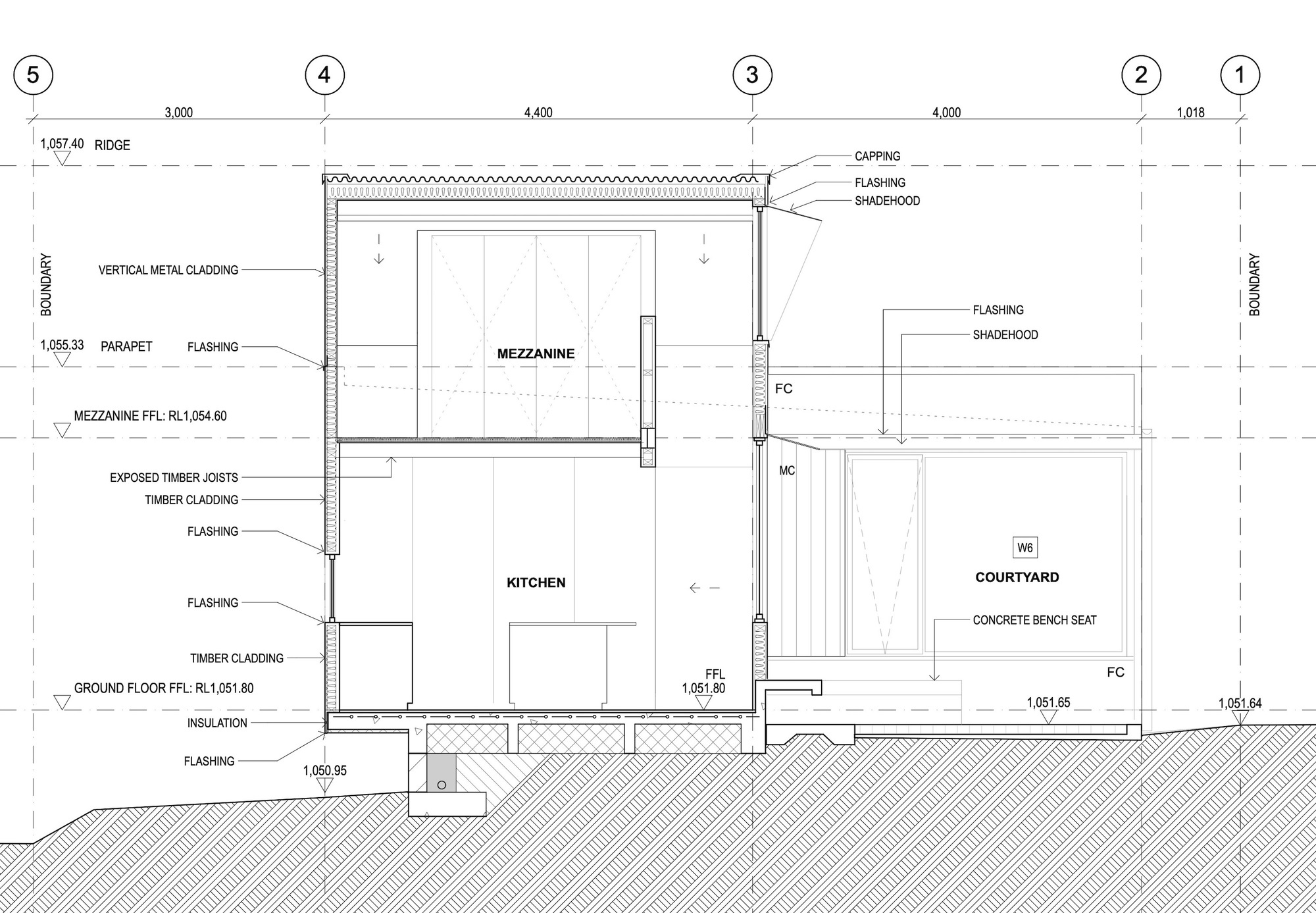 목재와 강재로 이루어진 추상적 이미지의 파사드를 특징으로 설계하여, 시드니 서쪽 블루 마운틴 안에 있는 마을인 블랙히스Blackheath, 그중에서도 녹음이 우거진 골목 가장자리에 있는 좁고 긴 대지에 지은 주택이다.