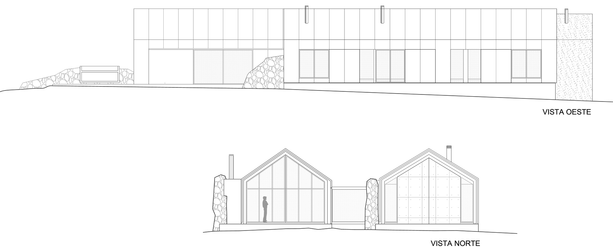 헛간 형태의 주거 건물을 지어달라는 건축주의 요청에 따라, 건조한 안데스산맥 기슭 들판에 지은 아르헨티나 주택이다. 원주민들이 돌로 지은 ‘피르카스(pircas, 돌담의 복수형)’라는 ‘고대’ 건물의 잔해를 그대로 이용하여, 빠진 이 대신 새 이를 식립implantation 하듯 강철 외관의 건물을 지었다.
