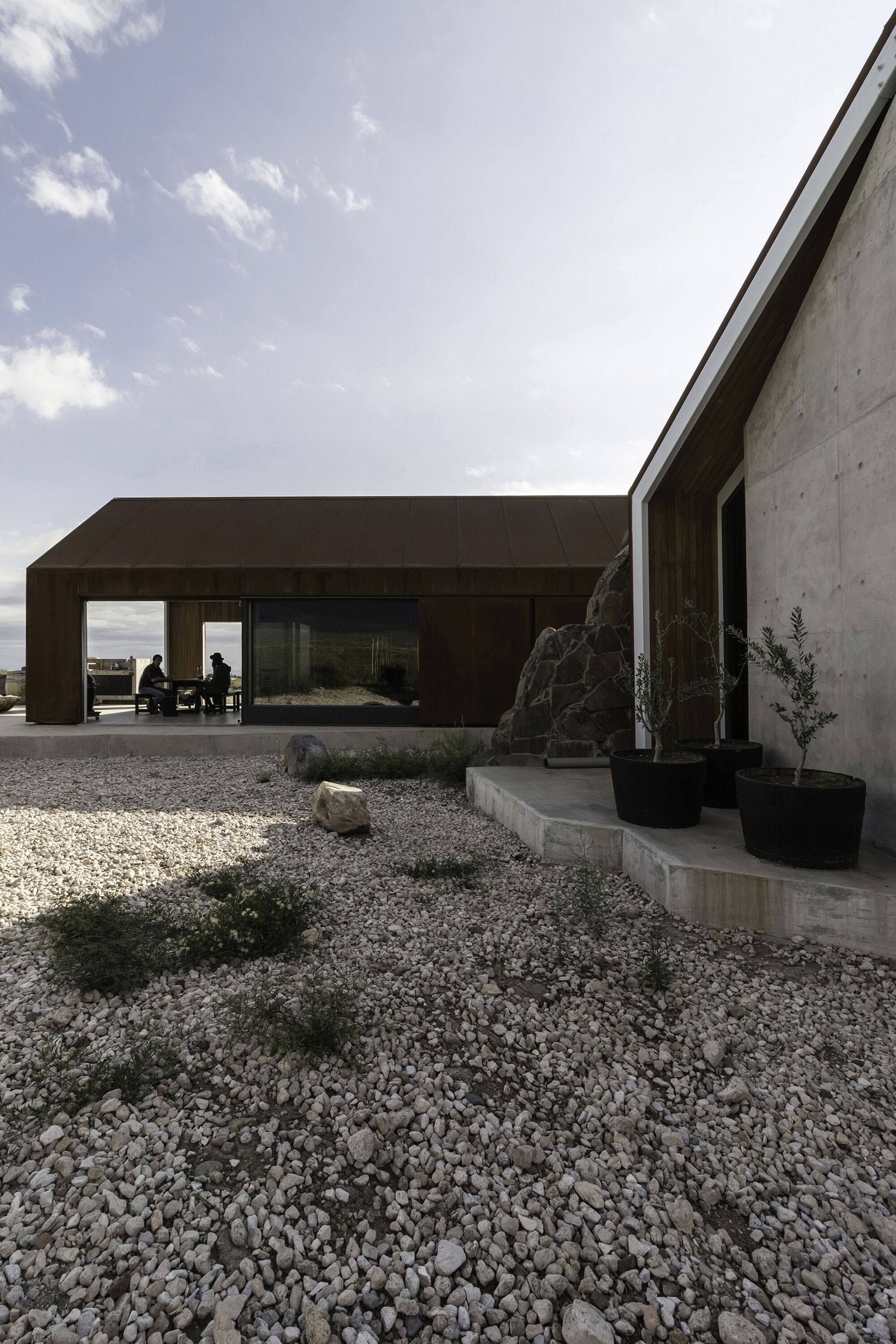 지진대에 위치하기 때문에, 견고한 콘크리트 기초 위에, 강구조 + 최대 단열 특성을 지닌 클로징 패널로 유연한 골조 시스템을 구축한 다음, 전체를 코르텐 강으로 마감했다.