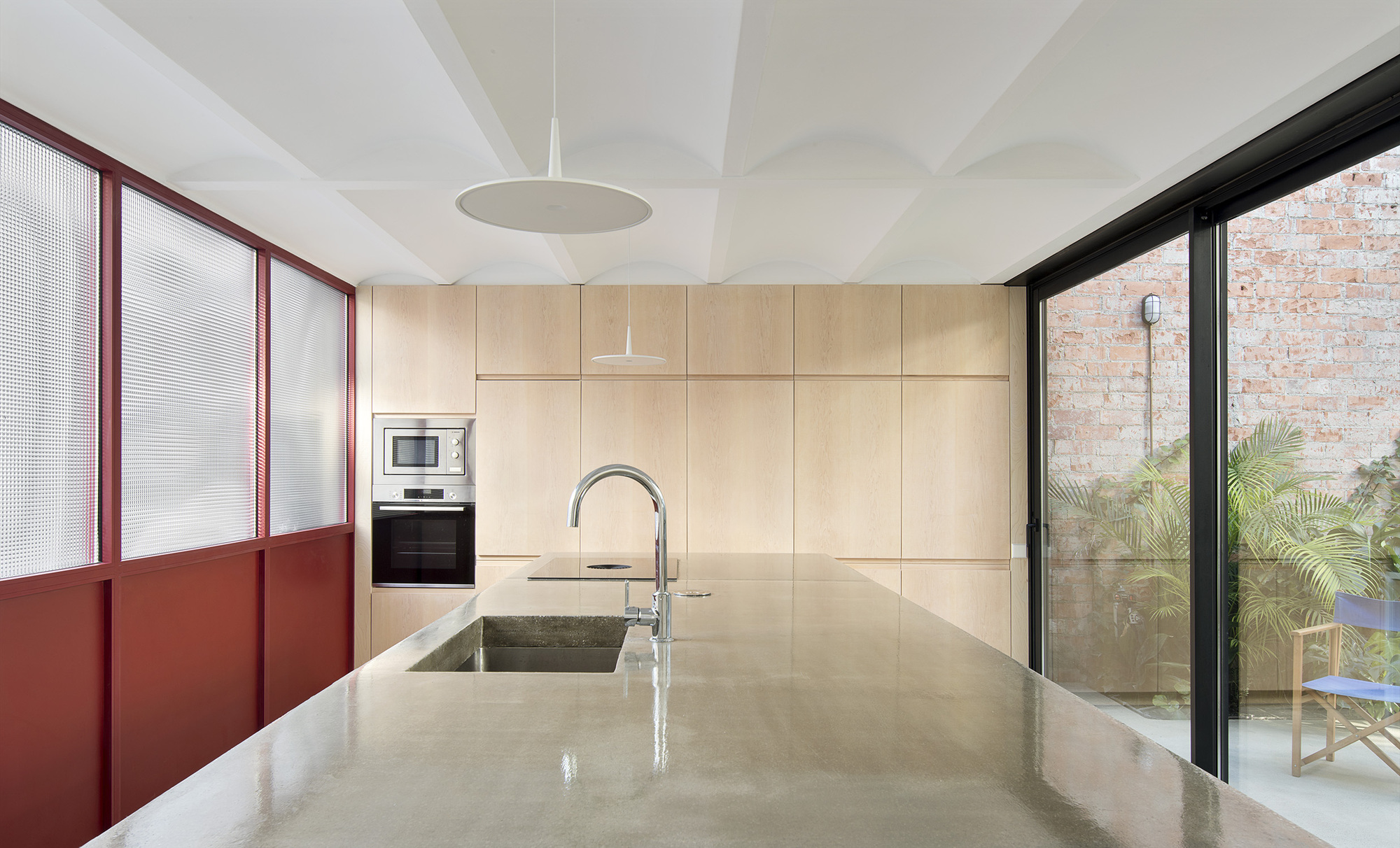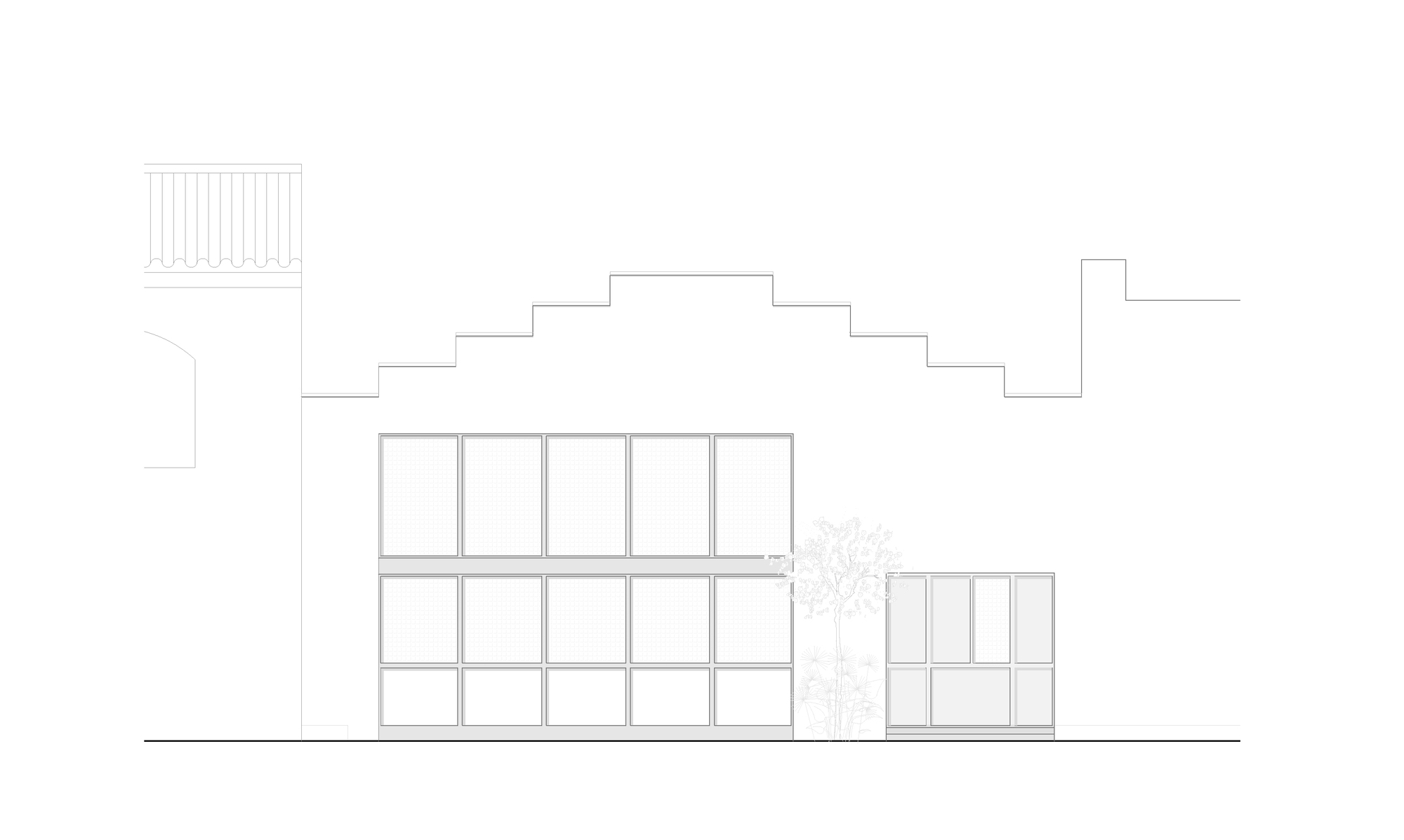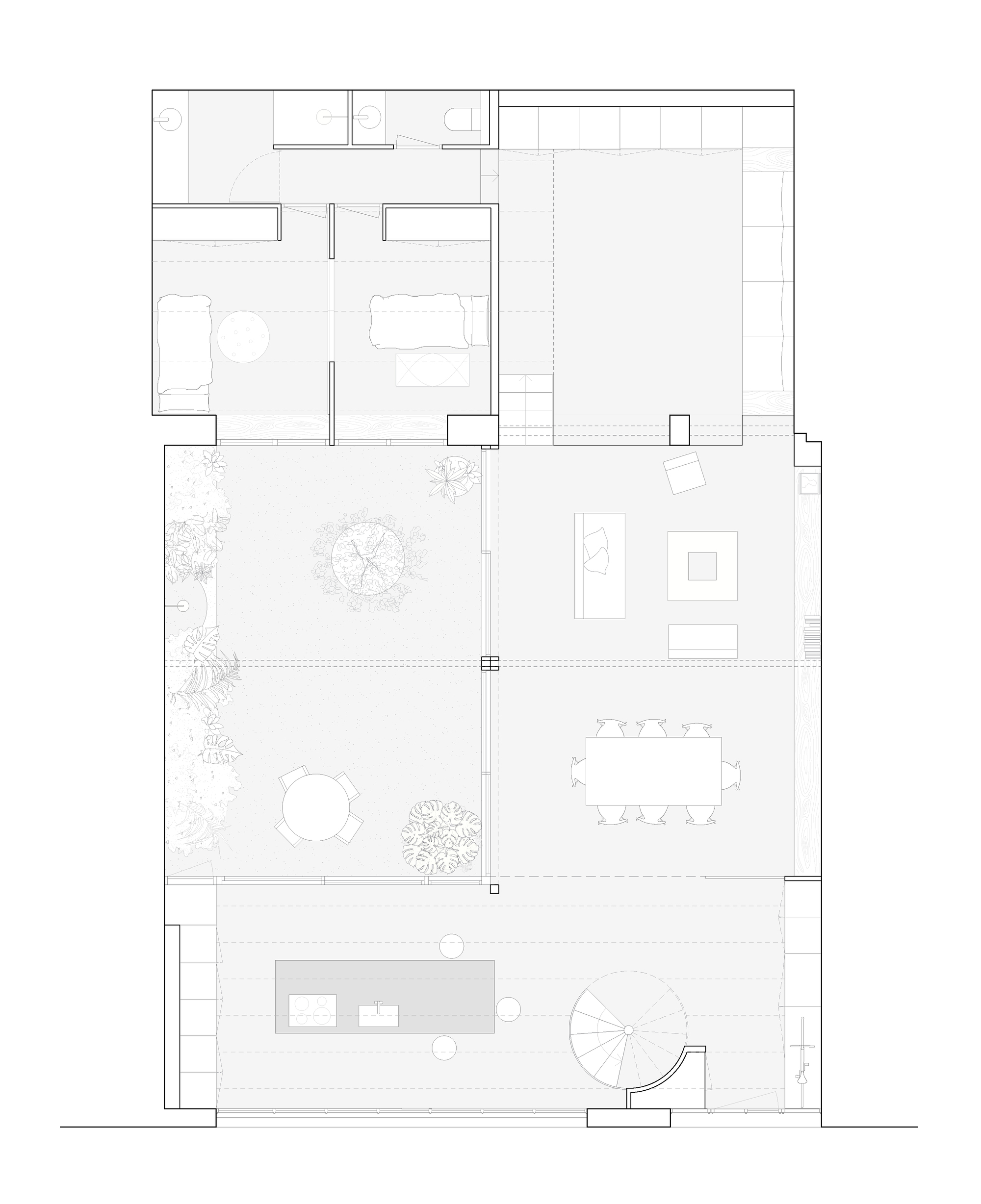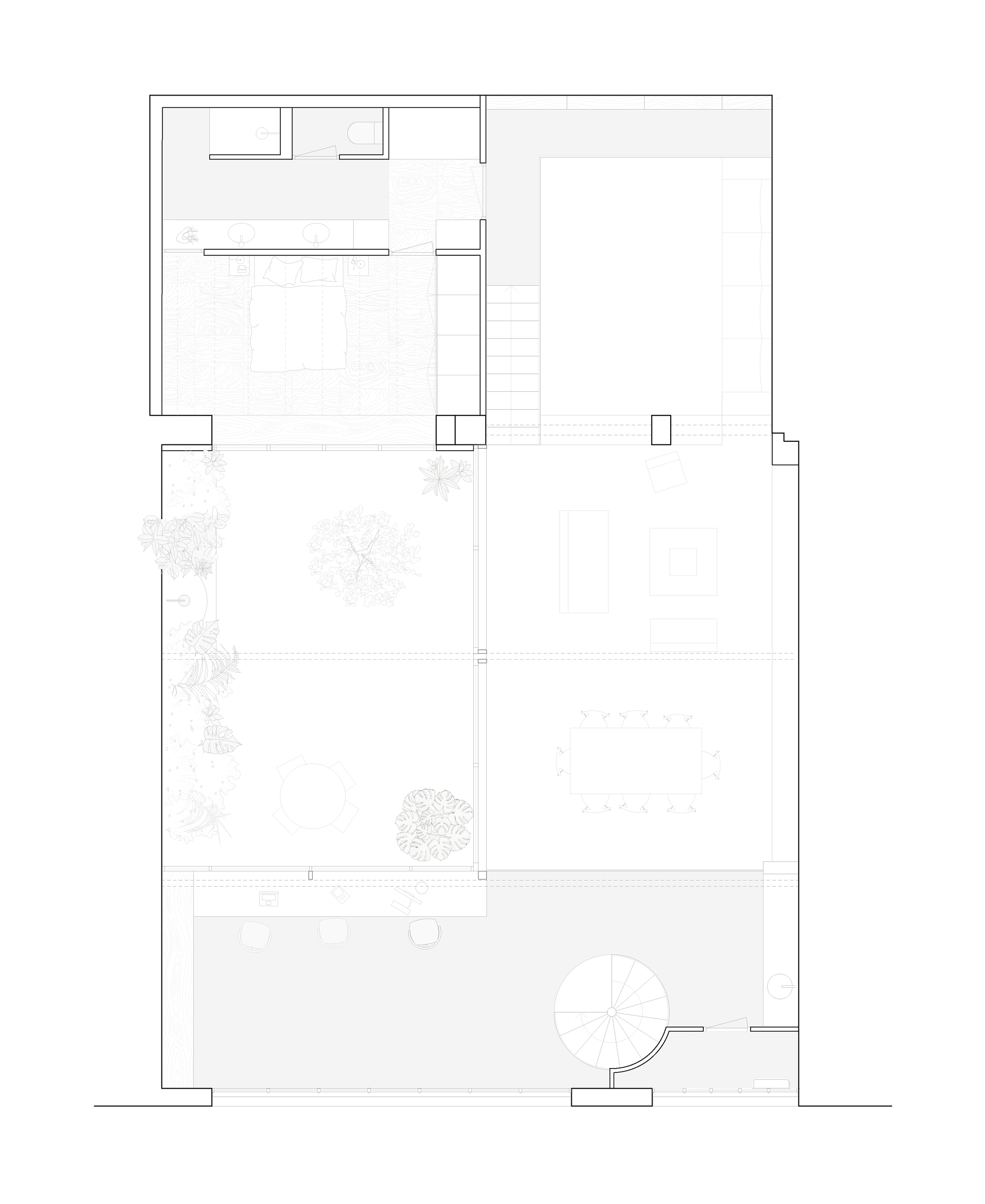 이 집은 두 가지 기본 전제를 가지고 디자인되었다. ① 기존 건물의 공간적 특성과 재료를 바탕으로, 산업시설이 많은 동네의 본질과 성격을 유지한다. ② 옥외 공간인 중정을 중심으로 공간들을 배치하는, 전형적인 지중해식 중정 주택으로 개발한다.