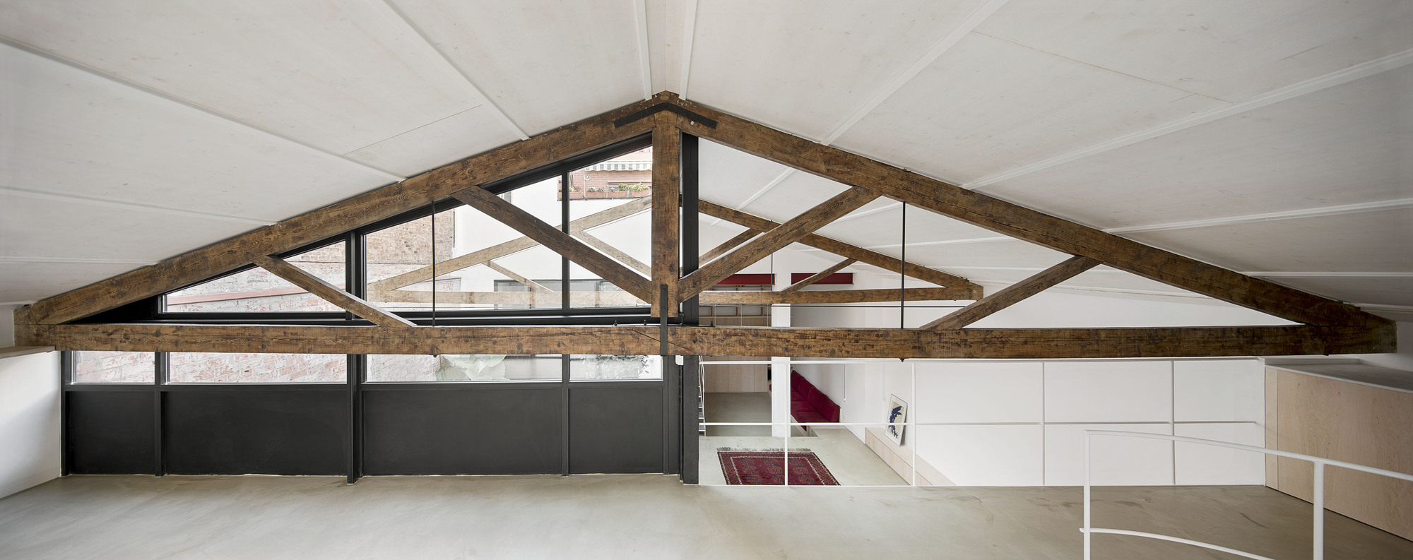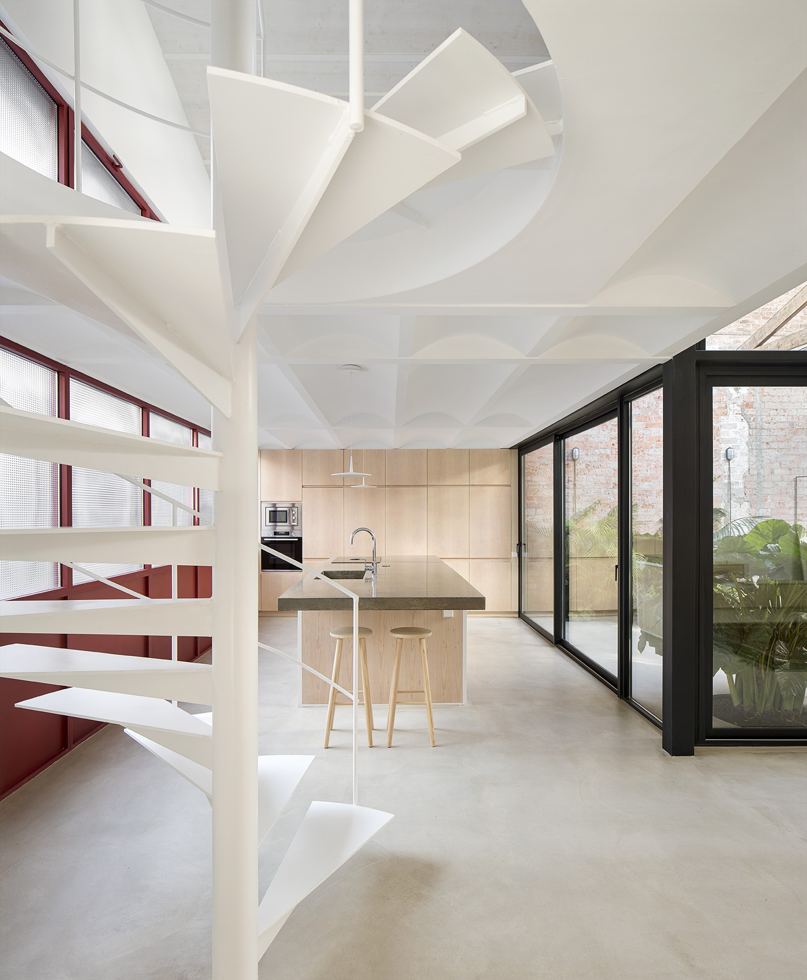 바르셀로나의 지중해안 동네인 포블레누Poblenou에 위치한 기존 공장 건물을 주거 겸 스튜디오로 탈바꿈시킨 사례이다.