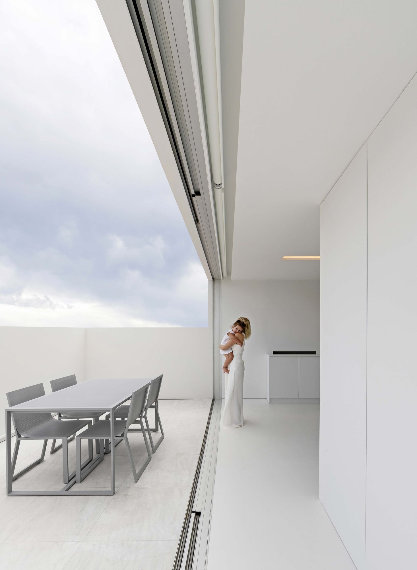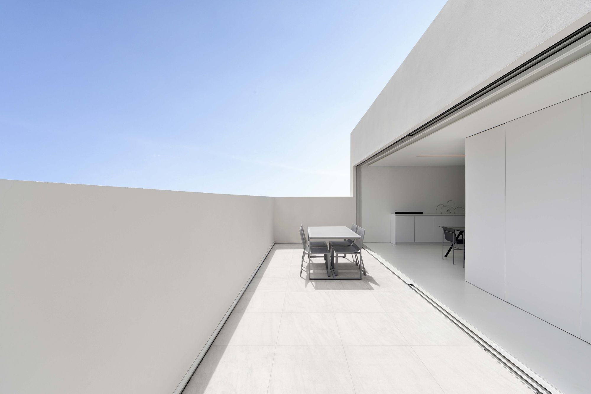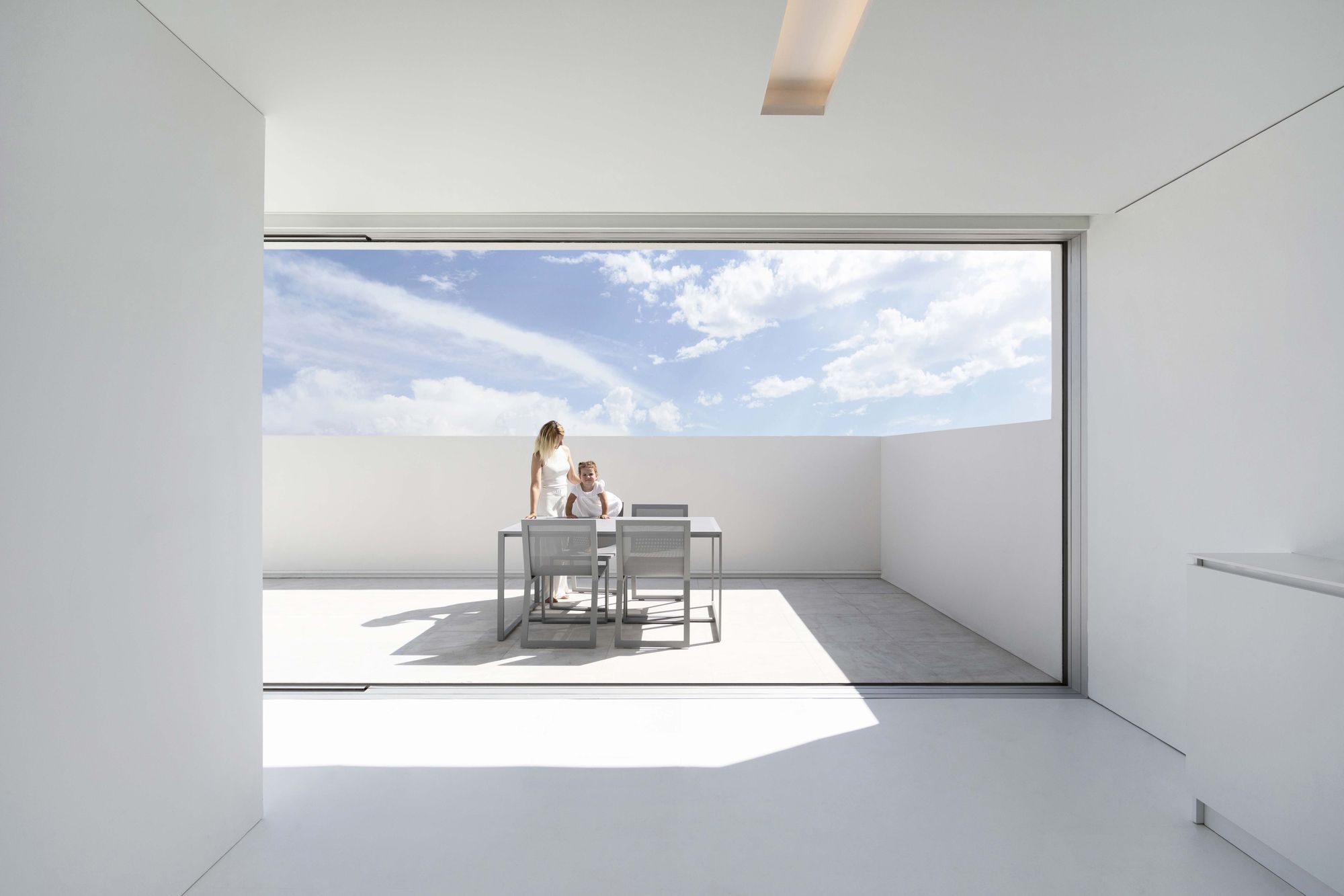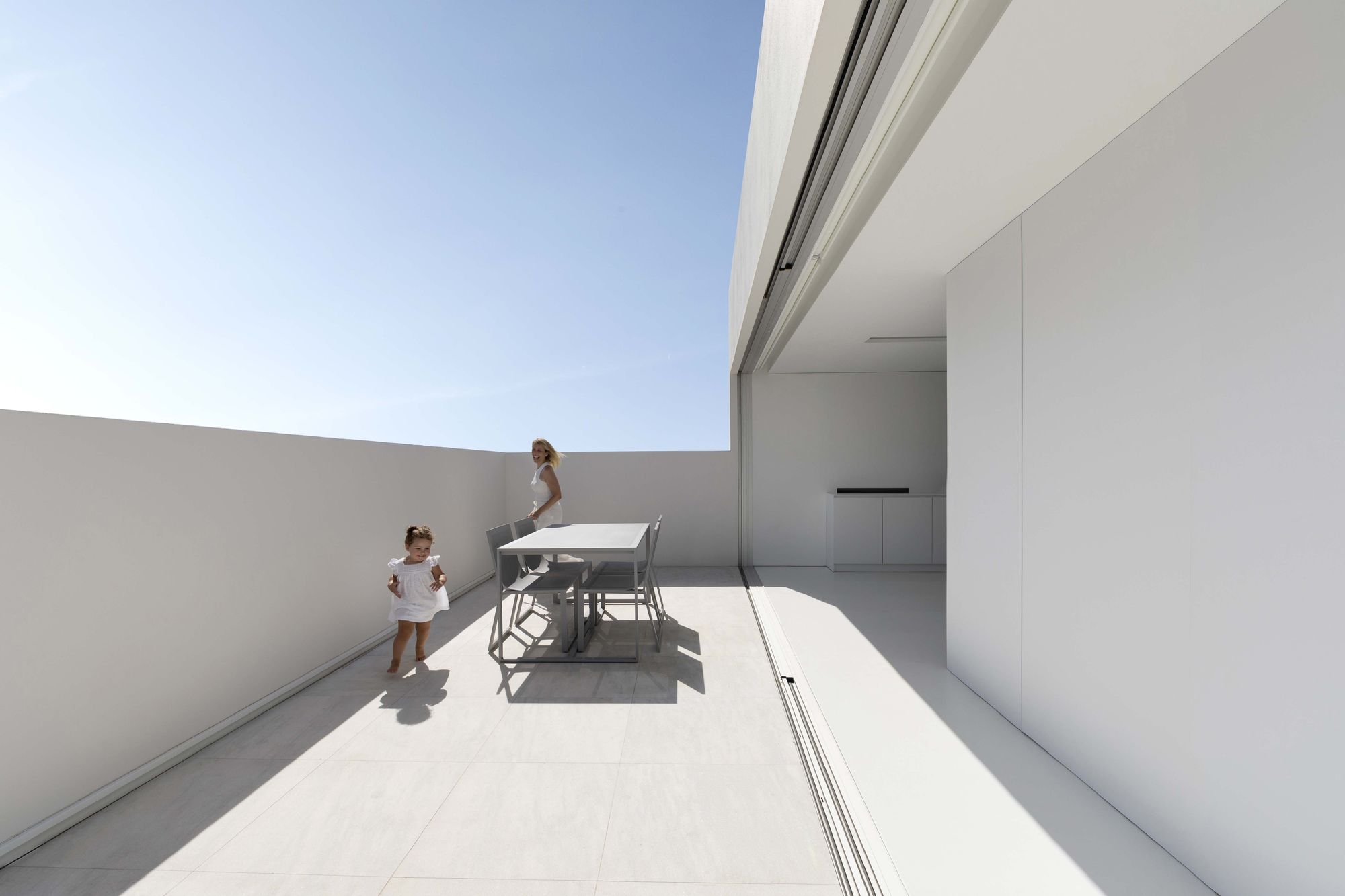 테라스는, 설 경우에만 발렌시아시를 바라볼 수 있을 정도로 파라펫을 높게 설치하여, 하늘을 향해 열린 일종의 아트리움처럼 처리되었다. 이를 통해, 도시 중심에서 작은 외딴 마을에 사는 듯한 기분을 느낄 수 있는 집이 되었다.