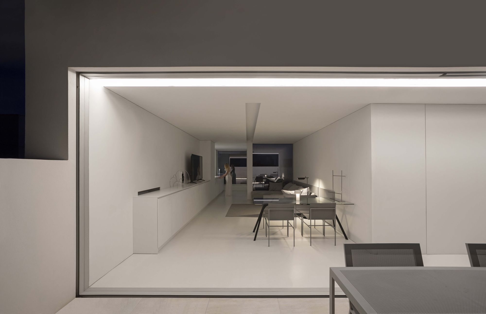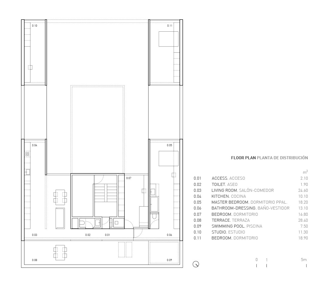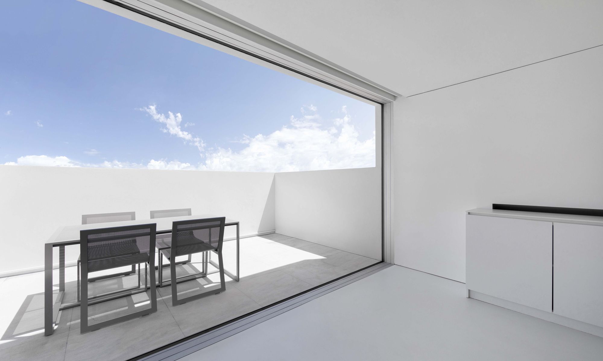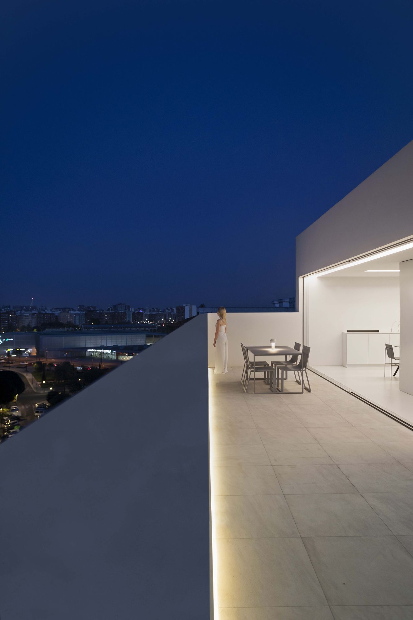 테라스는, 설 경우에만 발렌시아시를 바라볼 수 있을 정도로 파라펫을 높게 설치하여, 하늘을 향해 열린 일종의 아트리움처럼 처리되었다. 이를 통해, 도시 중심에서 작은 외딴 마을에 사는 듯한 기분을 느낄 수 있는 집이 되었다.