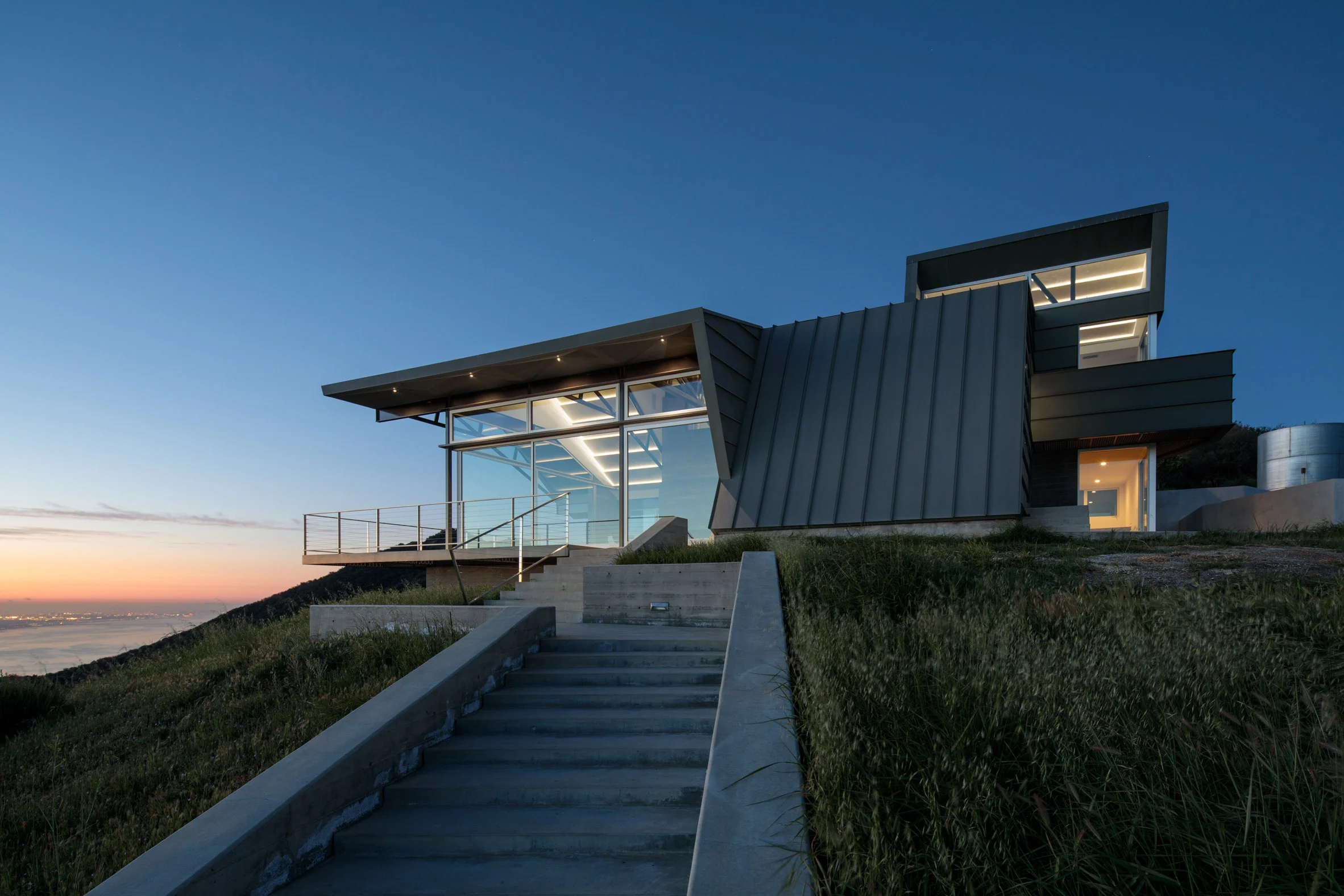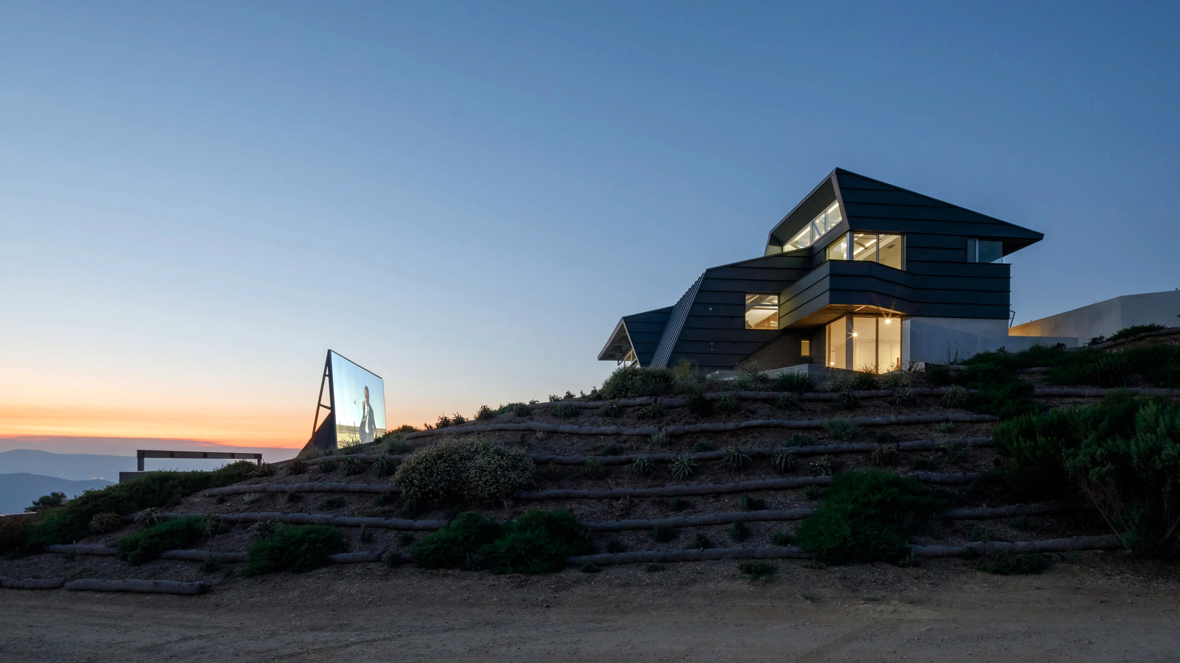 로스앤젤레스 카운티에 있는 도시 토팡가Topanga, 그중에서도 산타모니카 산맥 남동부 능선에 위치한 주말 별장이다. 이 집은, 산불에 강하면서도 아름다운 전망을 즐길 수 있게 지어졌다.