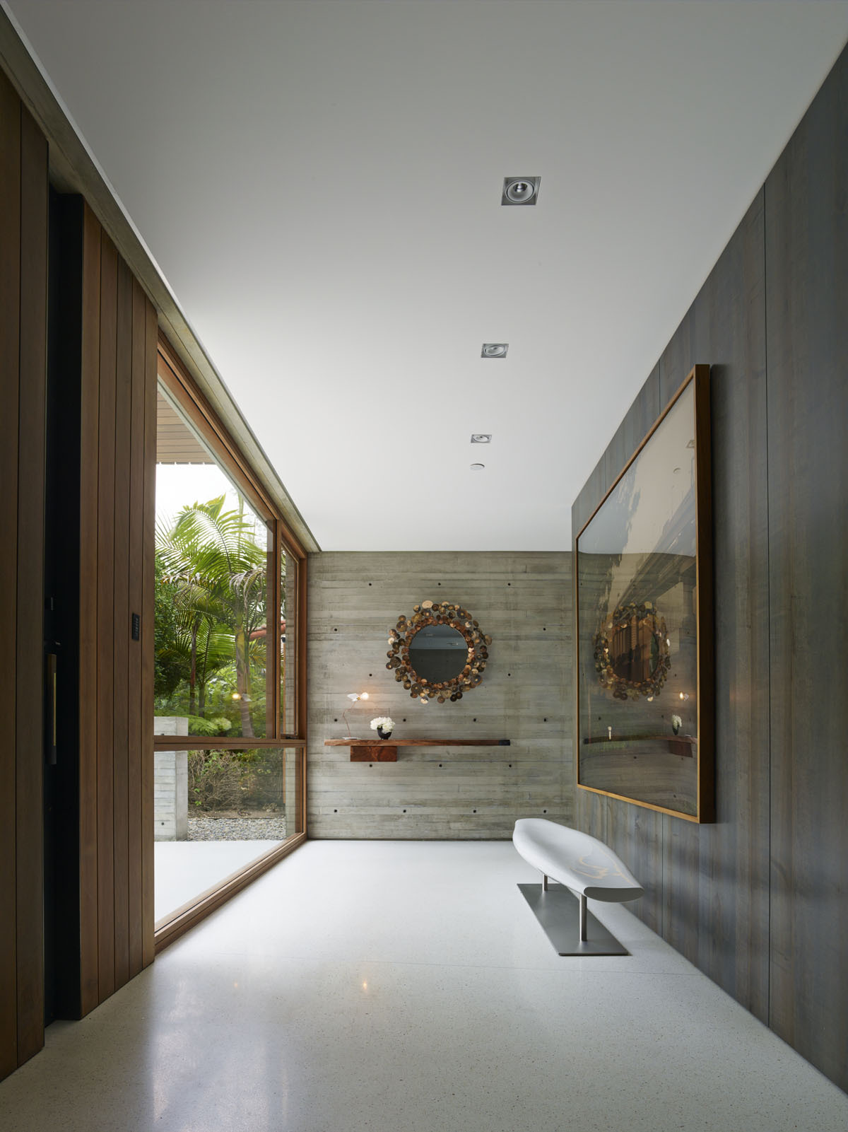 The design of this 5,600 square foot single family home in Santa Monica was rooted in a keen awareness of site and landscape and a dedication to sustainable architecture. After living in the neighborhood for over 30 years, the clients decided to build a new house that would more completely engage the landscape while seeking the highest certification offered by the U.S. Green Building Council. Designed as a linear sequence, the house unfolds as a series of spaces that are completely open to the landscape. Large expanses of glass walls pocket away allowing rooms to blur the distinction between outside and in. Fleetwood Fernandez Architects was responsible for the architecture as well as the interior design, which in addition to the sustainable finishes inherent to this type of project, features a curated selection of furnishings with many vintage pieces that extend the spirit of reuse.