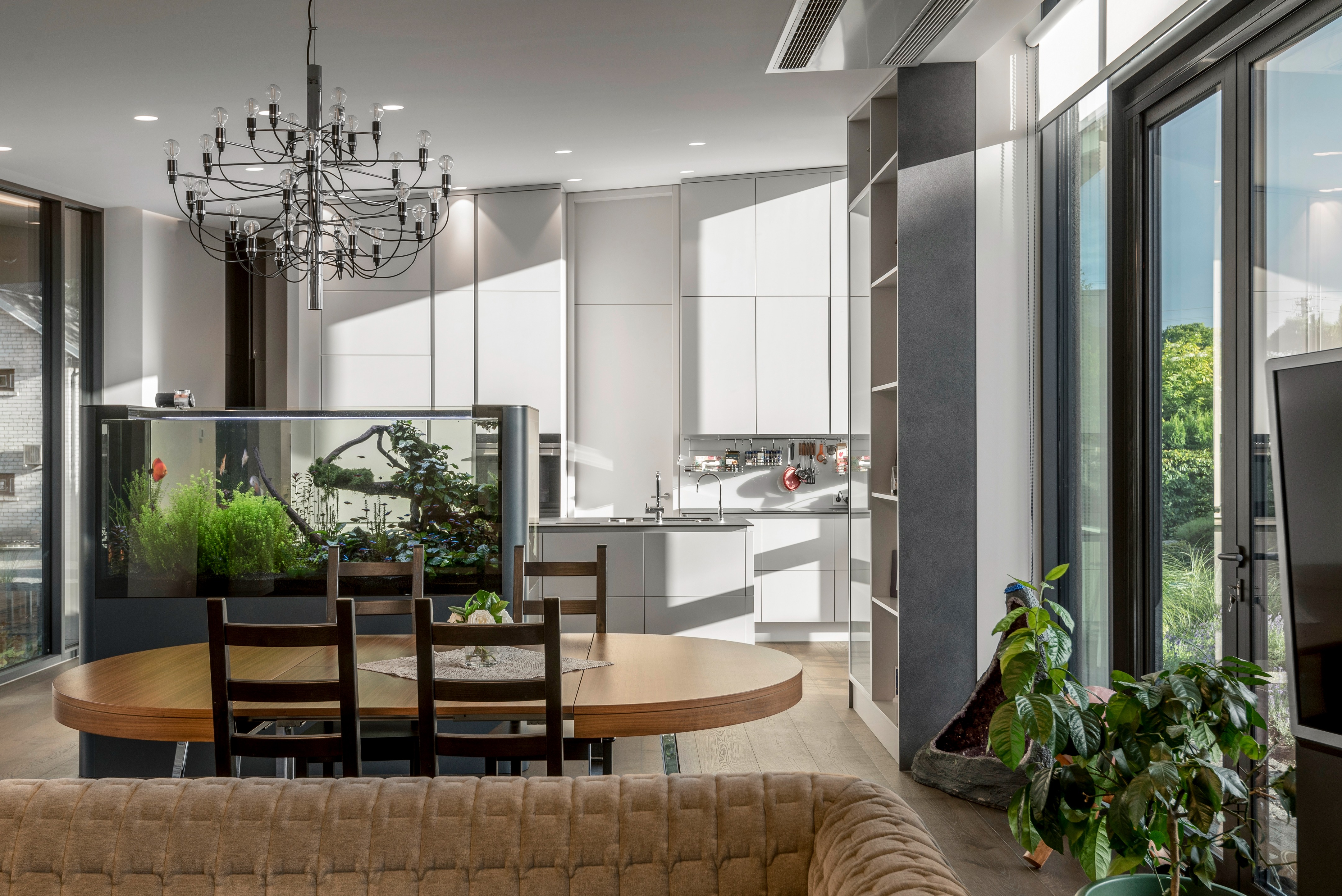 세 자녀가 방문해서 편하게 머물 공간이 있어야 했기 때문에, 집을 크게 짓게 되었다고 한다. “건축주 가족이 서로 사랑한 만큼 계속해서 그 유대가 유지되기를 바랐고, 손자들을 데리고 온 자녀들이 호텔 신세를 지지 않고 떠날 때까지 집에 머물다가 가기를 원했습니다.” 설계팀의 설명이다.