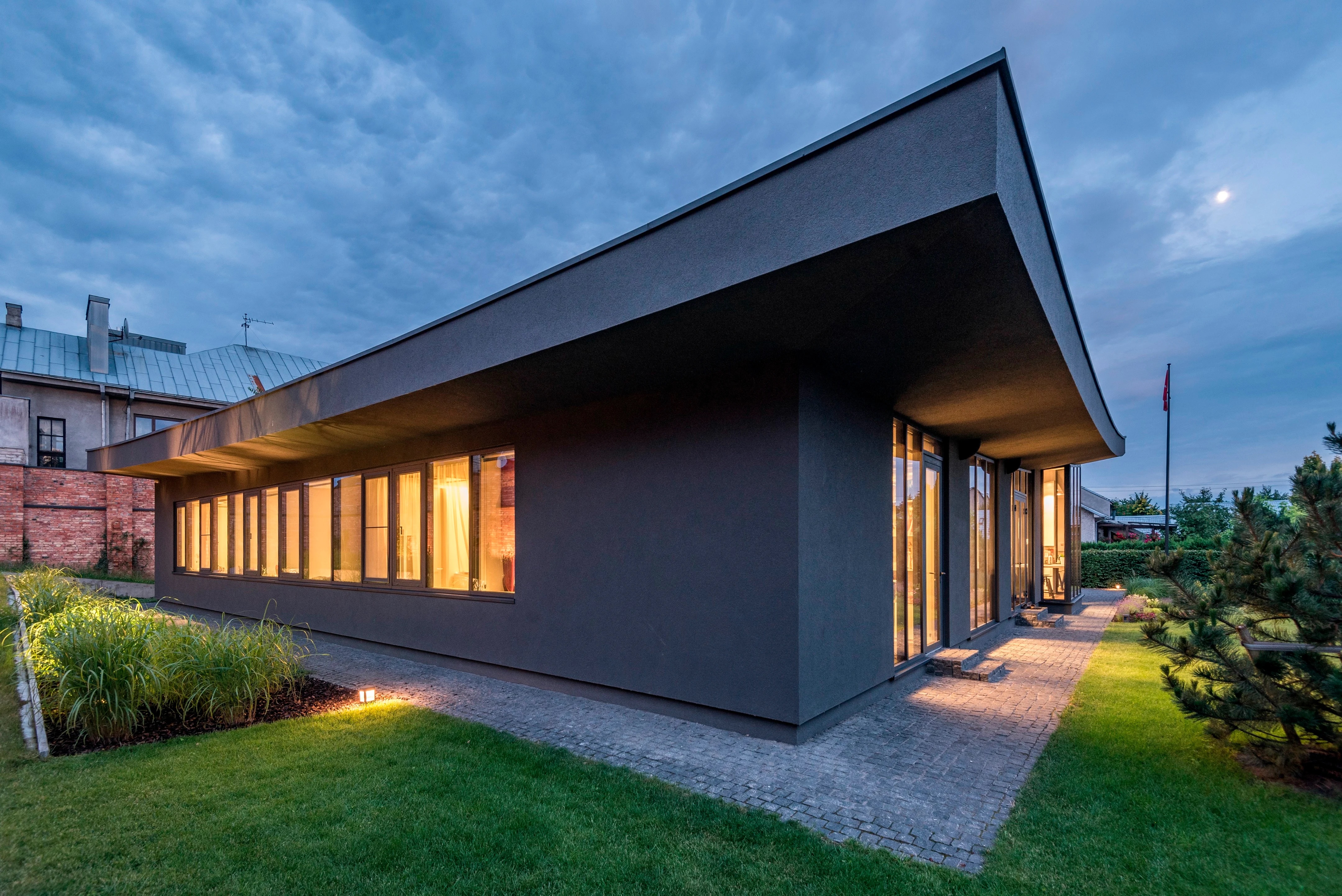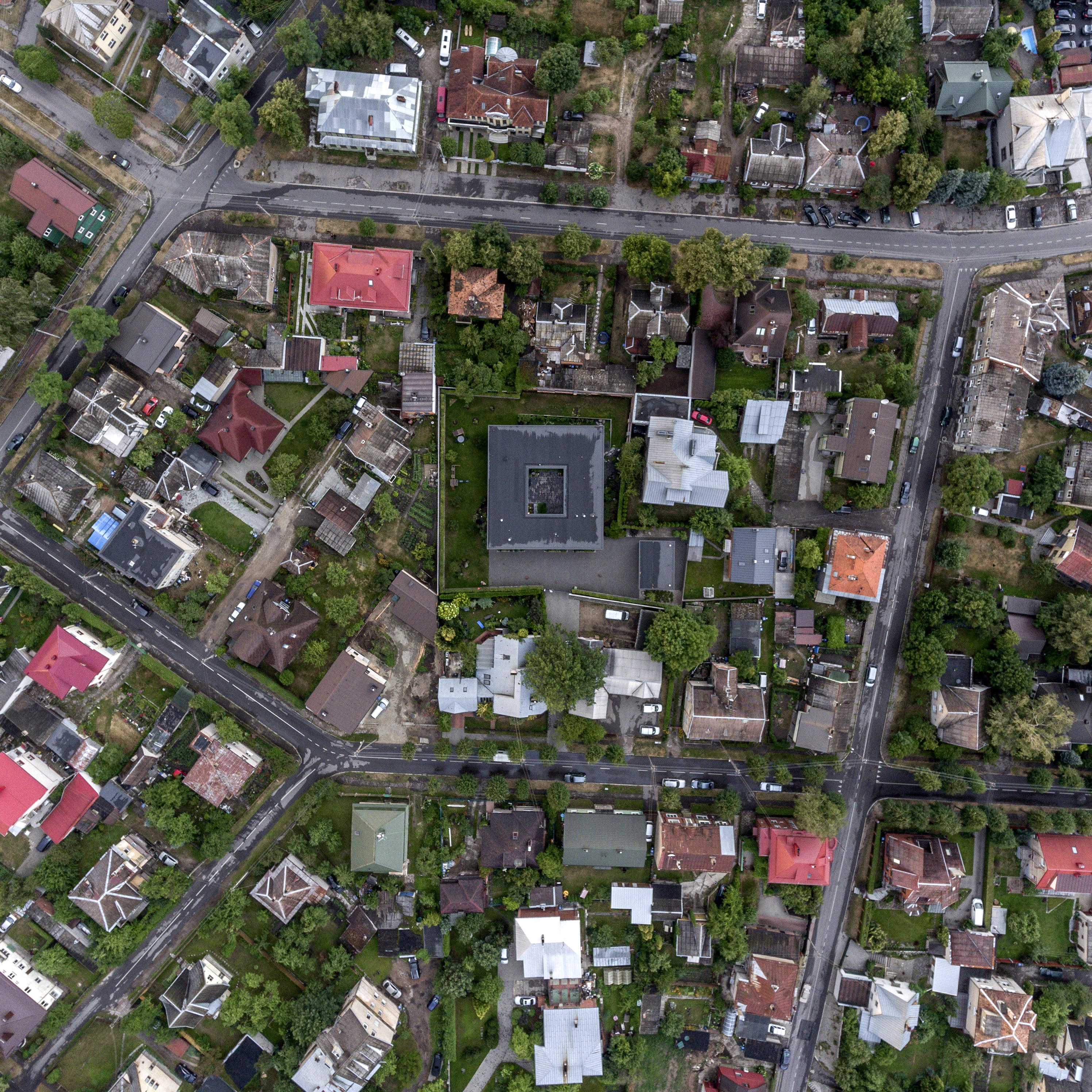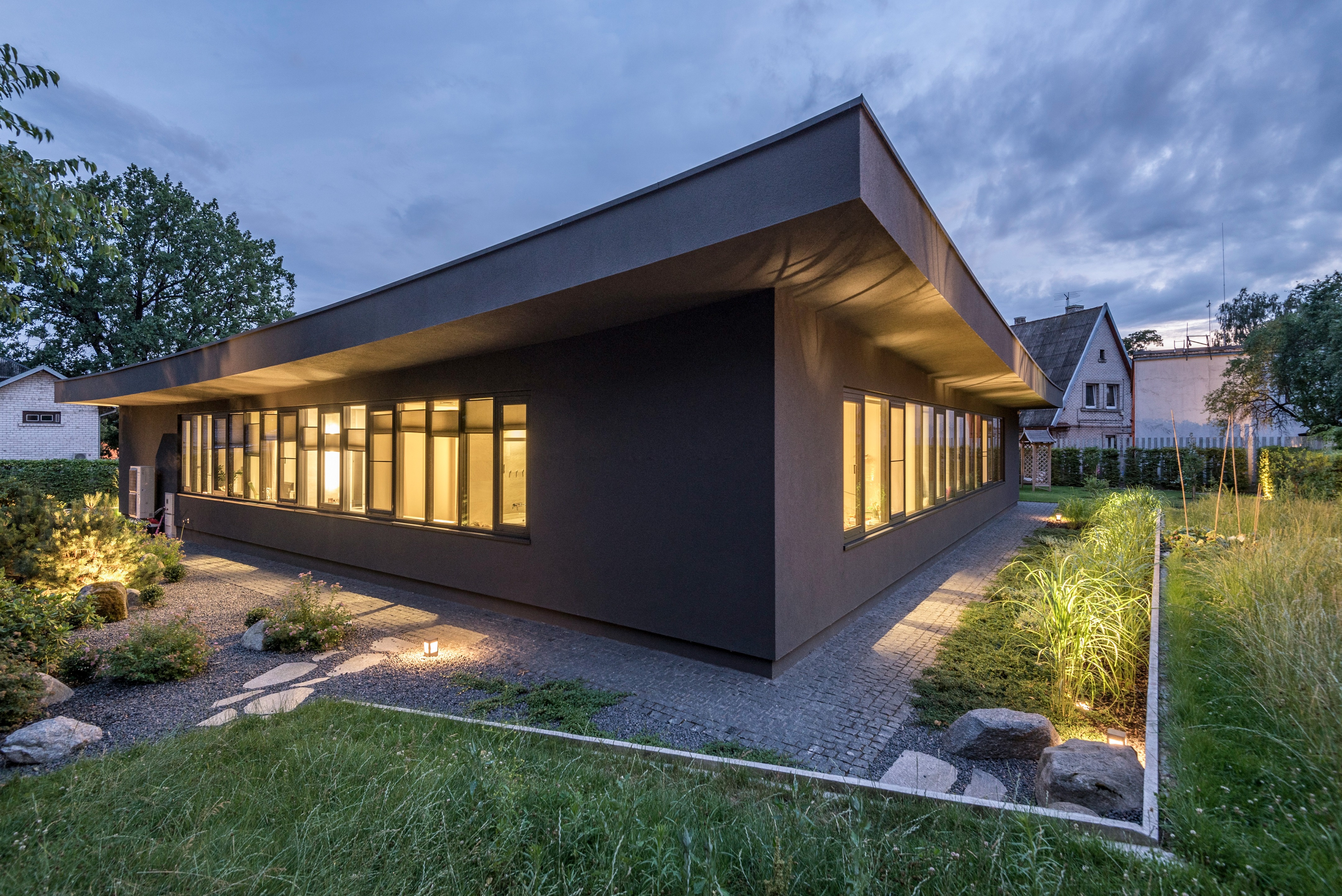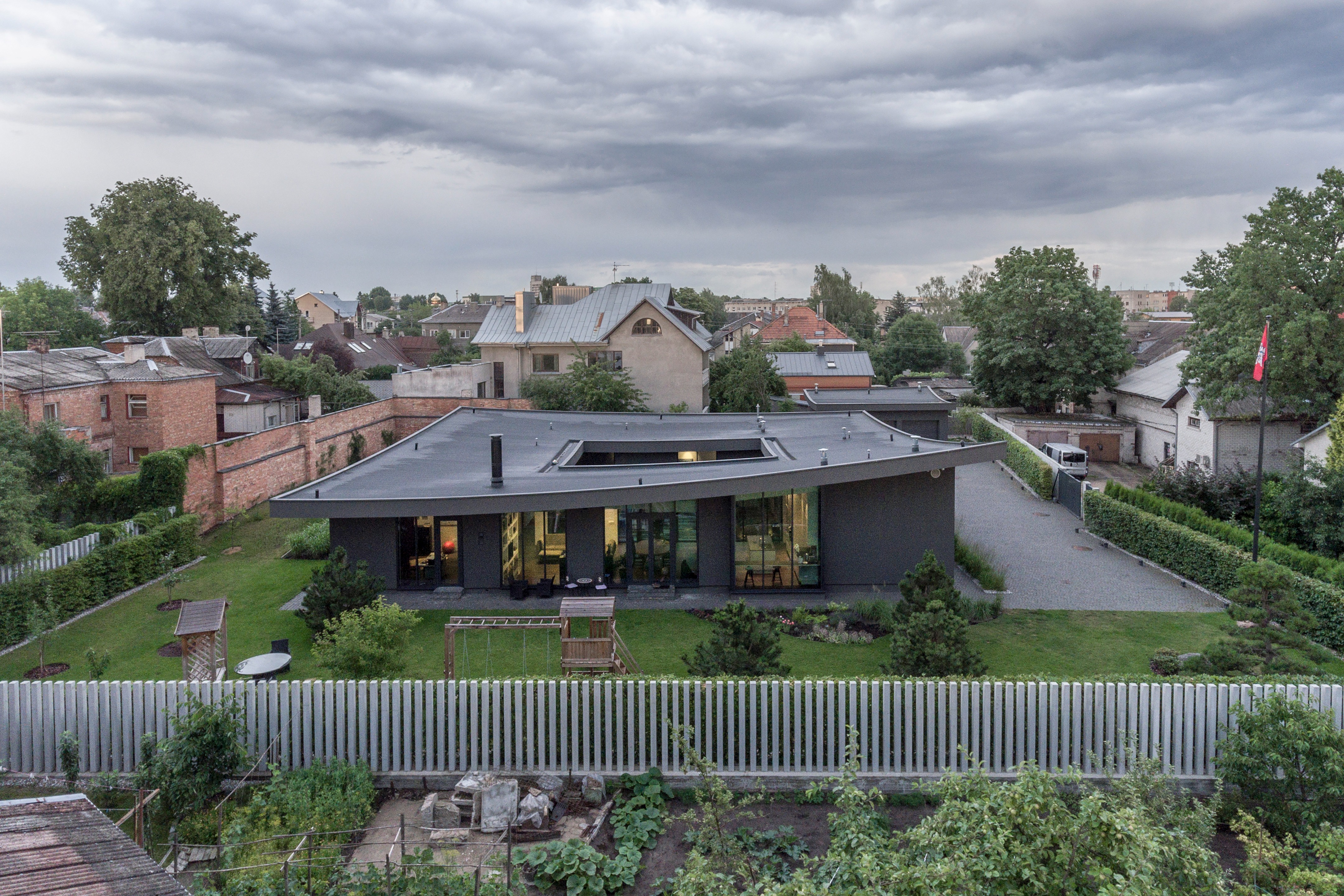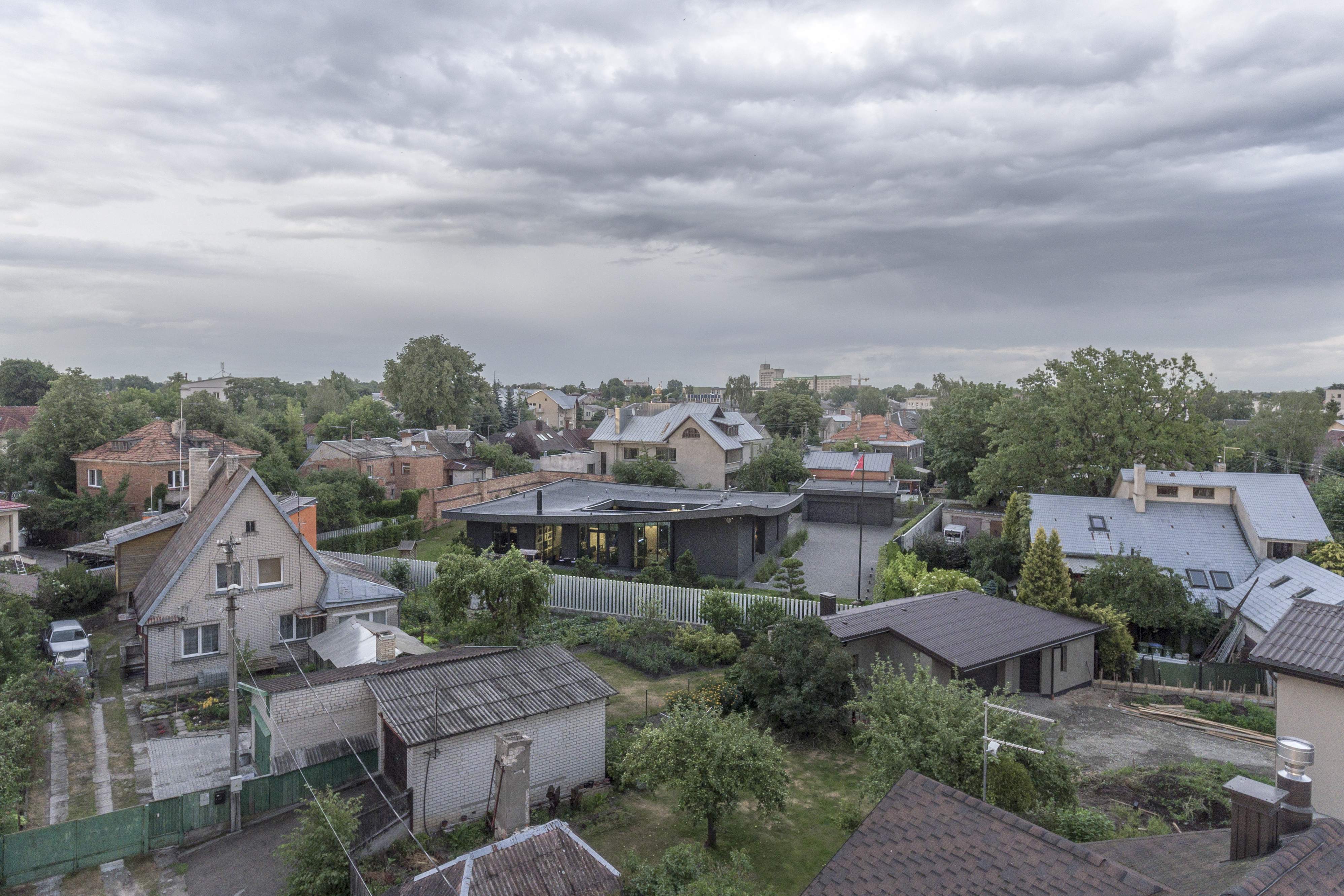 리투아니아 제2의 도시 커우너스Kaunas, 그중에서도 잘리아칼니스Žaliakalnis 지구에 위치한 현대식 주택이다. 이 지역은, 네만강과 빌리야강이 합류하는 지점(두물머리)의 언덕 위에 위치하여 매력적인 풍광을 자랑하는 곳이다.
