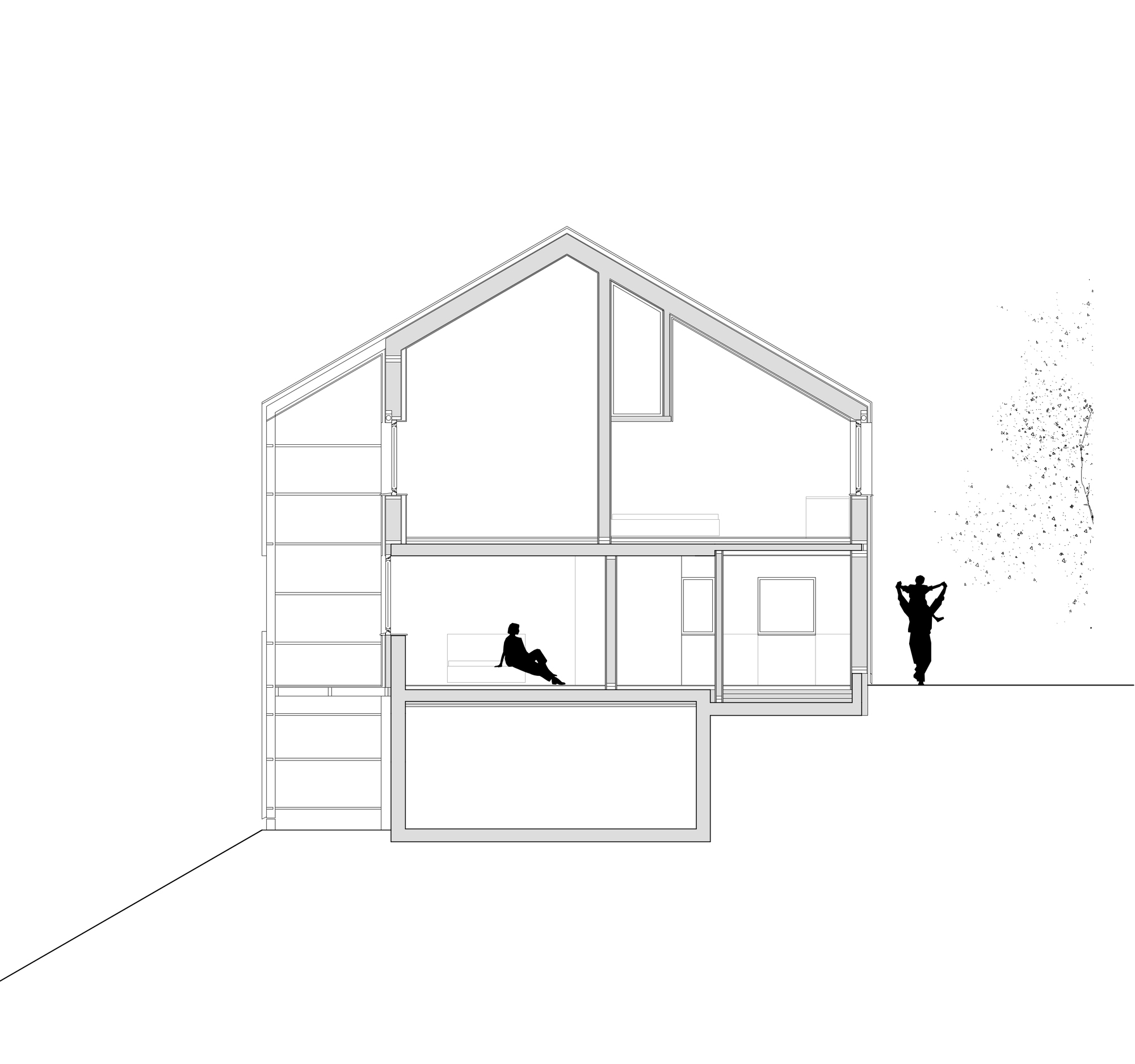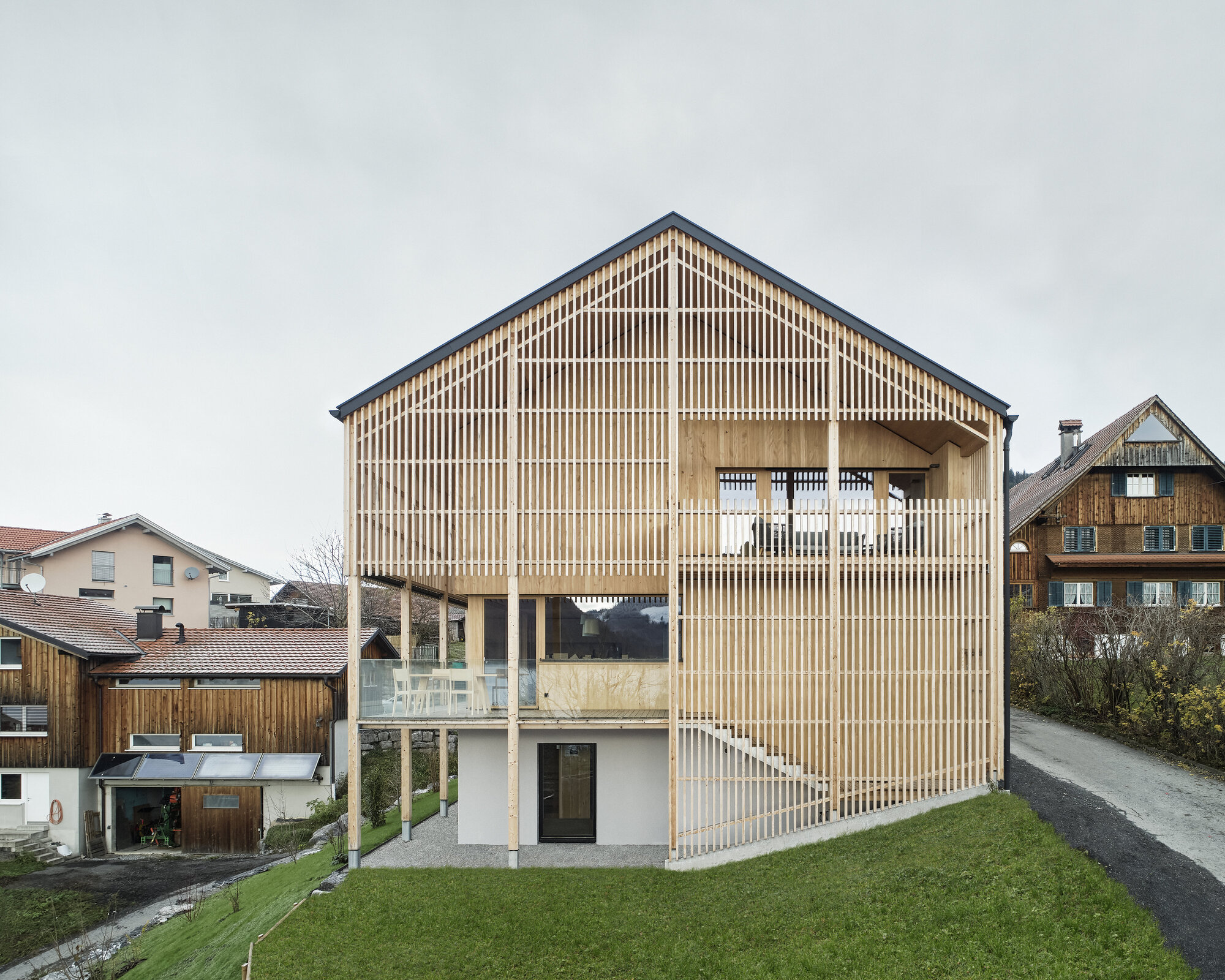 보덴호에서 알프스까지가 보이는 라인강 계곡의 언덕에 있는 마을에 위치한 단독 주택의 증·개축 사례이다. 원래 80년대에 지어진 이 집은, 이후 여러 차례 재구조화 및 개조를 거쳐 누더기 건물이 되어 있었다고 한다. 필요할 때마다 부분적으로 수리했던 일을 더 이상 반복하지 않기 위해 전면적으로 수리를 했다.