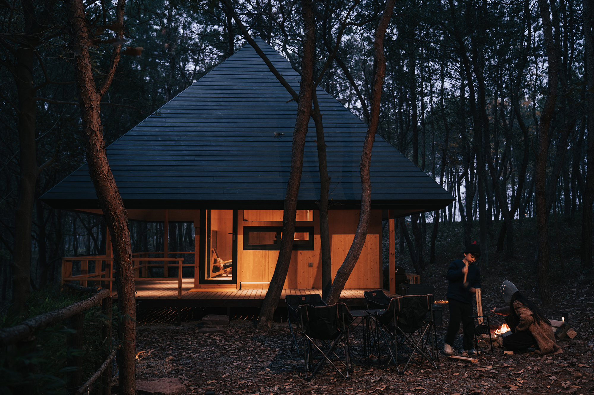 전체적인 형태는 까만 피라미드와 유사하며, 몸체에 비해 큰 지붕은 자연 속에서 사용자에게 안정감을 제공하기 위한 장치이다. 내부에는, 로프트 구조의 침실과 함께 1층에는 거실과 욕실 그리고 나머지 절반은 야외 테라스로 이루어졌다.