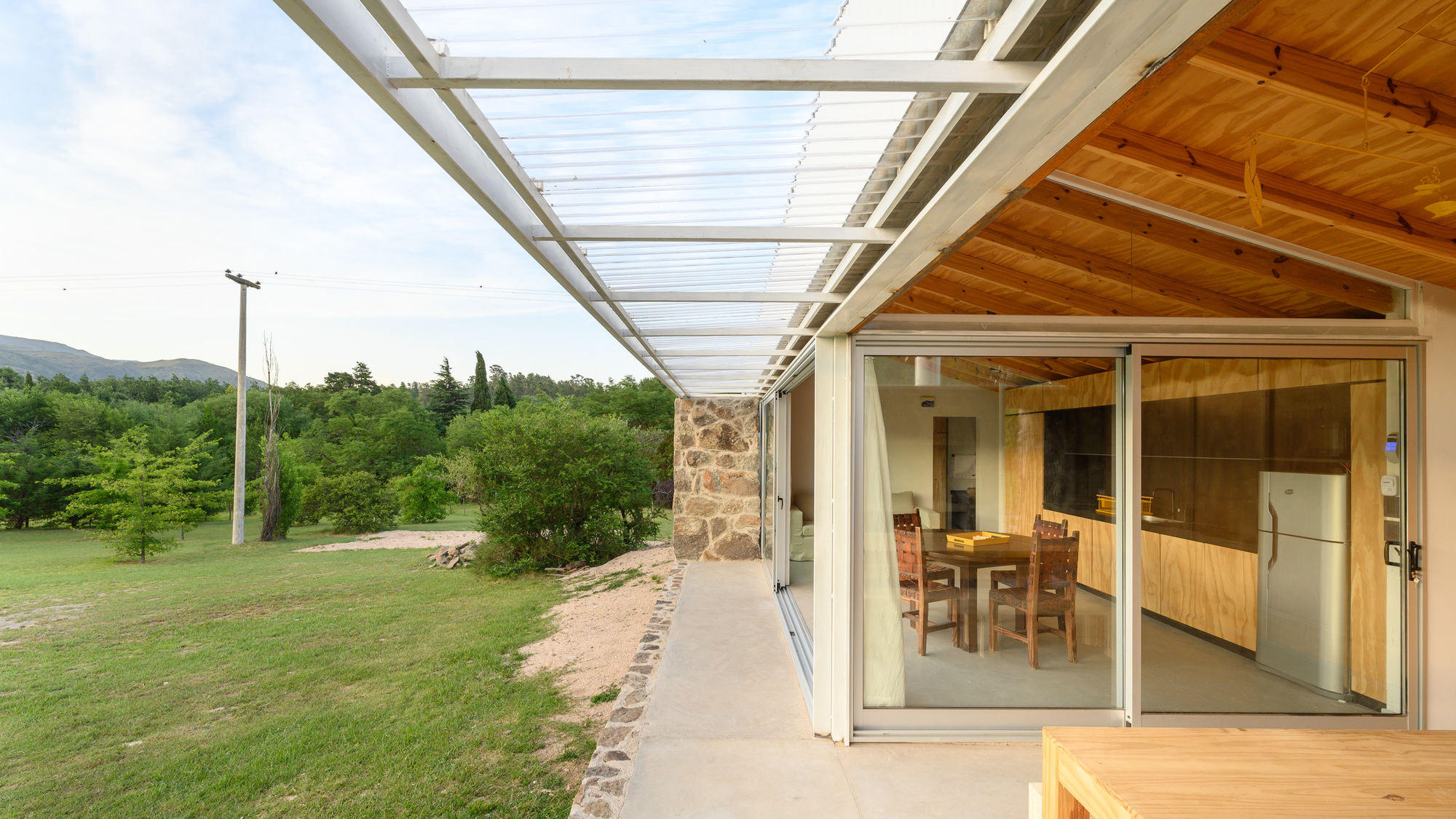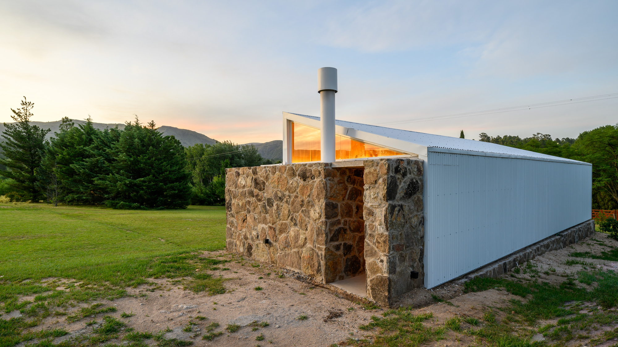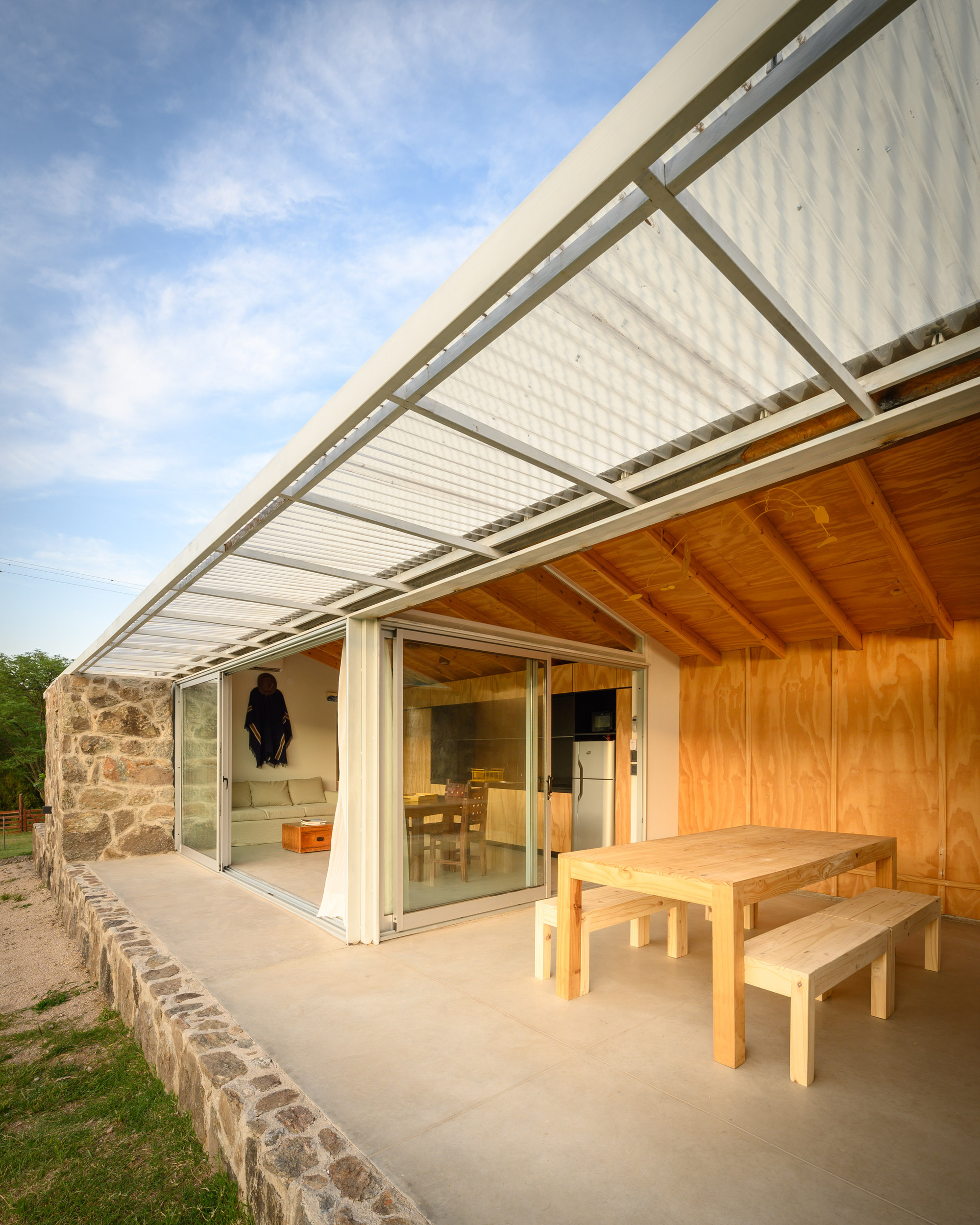 아르헨티나 로스 히간테스Los Gigantes 산맥 기슭에 있는, 완만하게 경사진 오지 땅에 지은 모듈 주택이다. 40평방미터(약 12평) 규모의 이 집에는 산을 향한 전망을 제대로 즐길 수 있는 22평방미터(약 6.7평) 면적의 반 외부 공간이 딸려 있다.