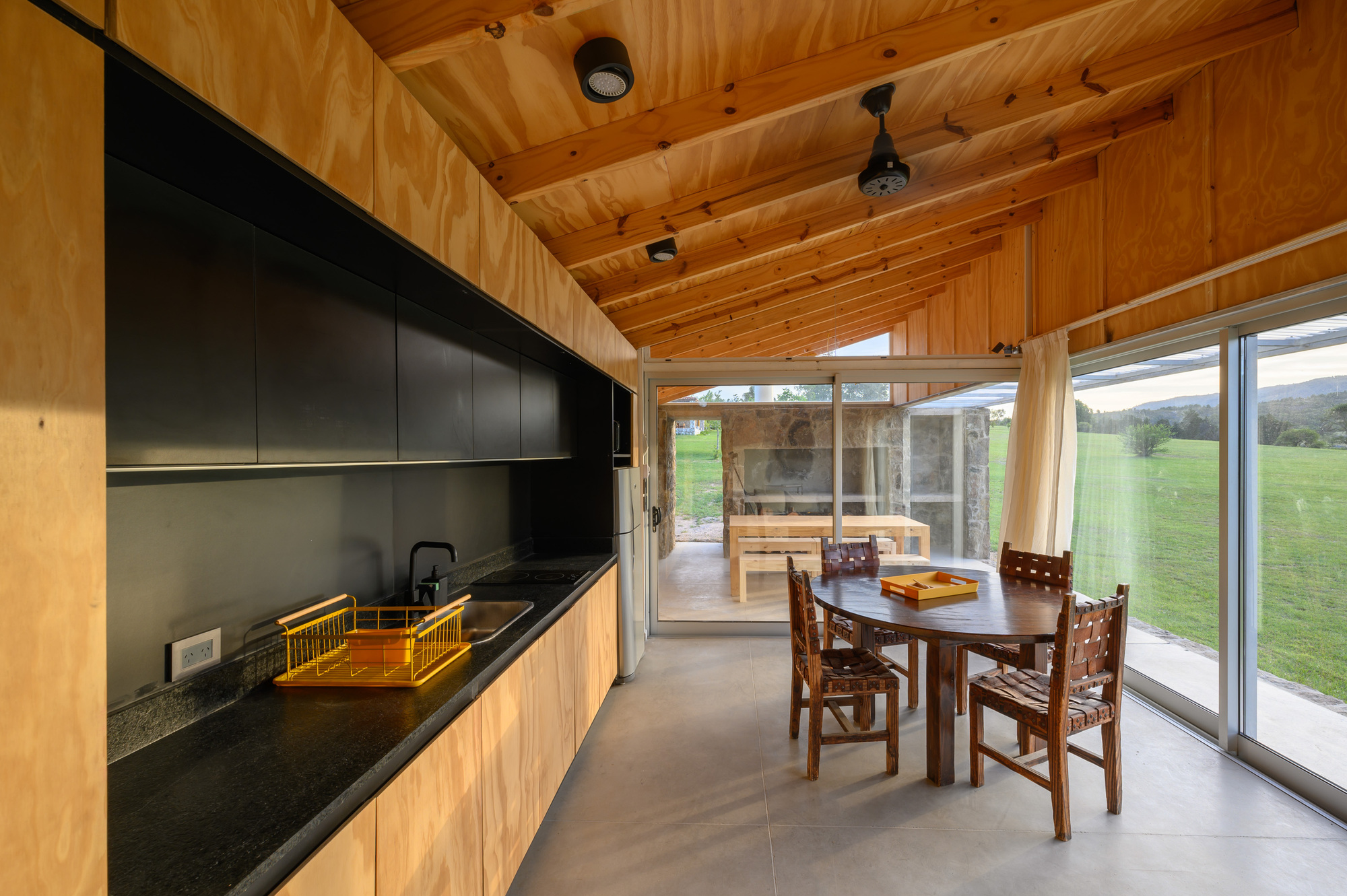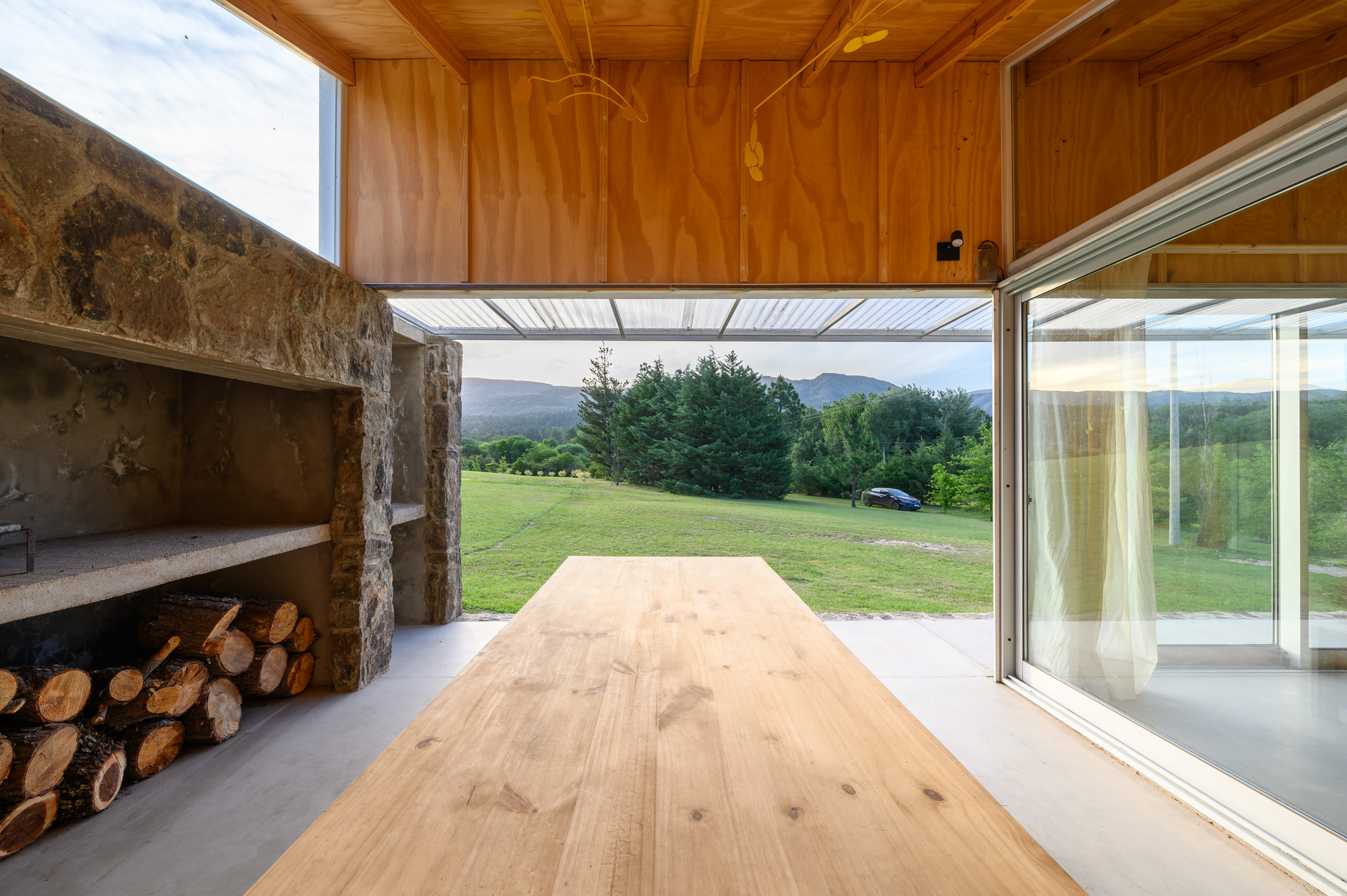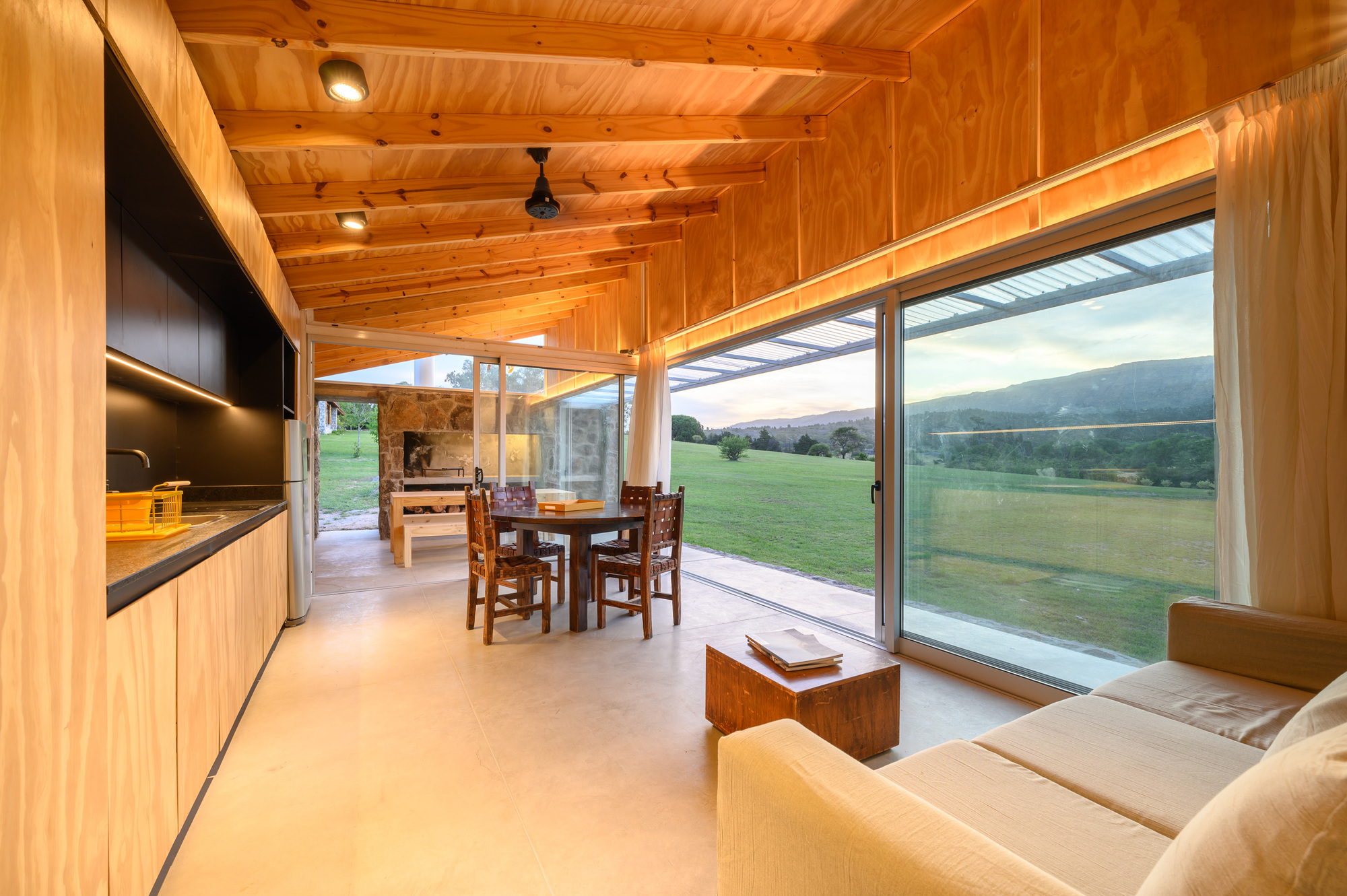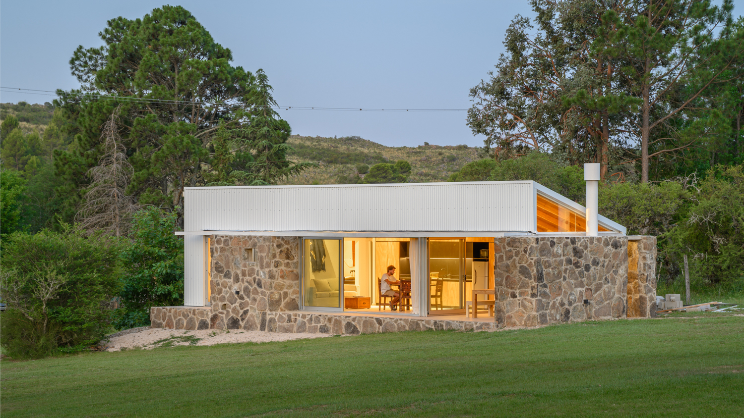 아르헨티나 로스 히간테스Los Gigantes 산맥 기슭에 있는, 완만하게 경사진 오지 땅에 지은 모듈 주택이다. 40평방미터(약 12평) 규모의 이 집에는 산을 향한 전망을 제대로 즐길 수 있는 22평방미터(약 6.7평) 면적의 반 외부 공간이 딸려 있다.