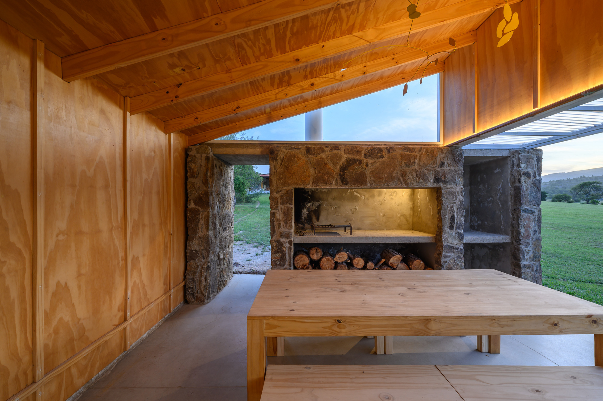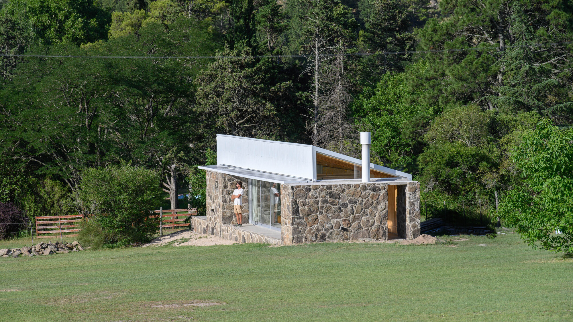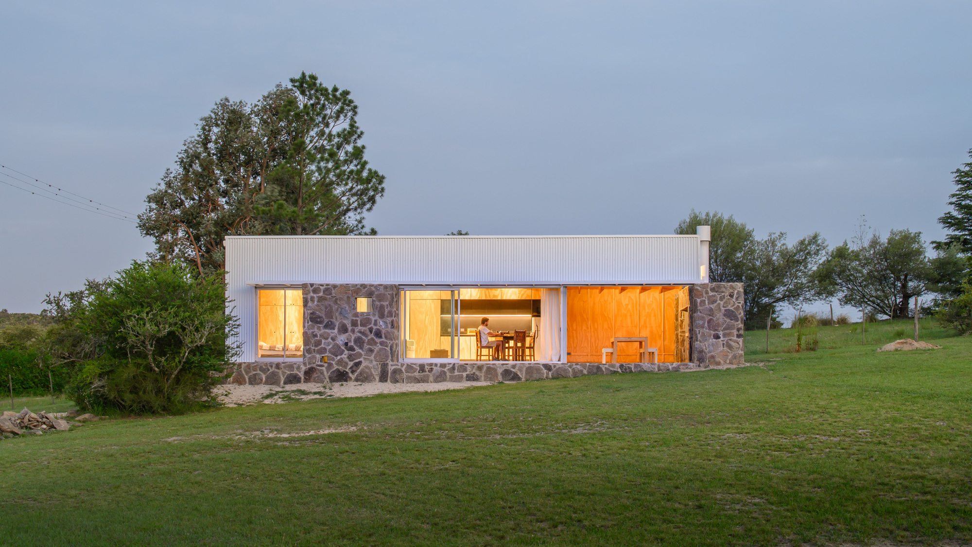 공간 효율적으로 계획된 이 집은, SIP 샌드위치 패널, 석재, 징크 패널, 소나무 목재 등을 사용하여 시골 풍경과 어울리는 따뜻하고 단순한 형태로 지어졌다.