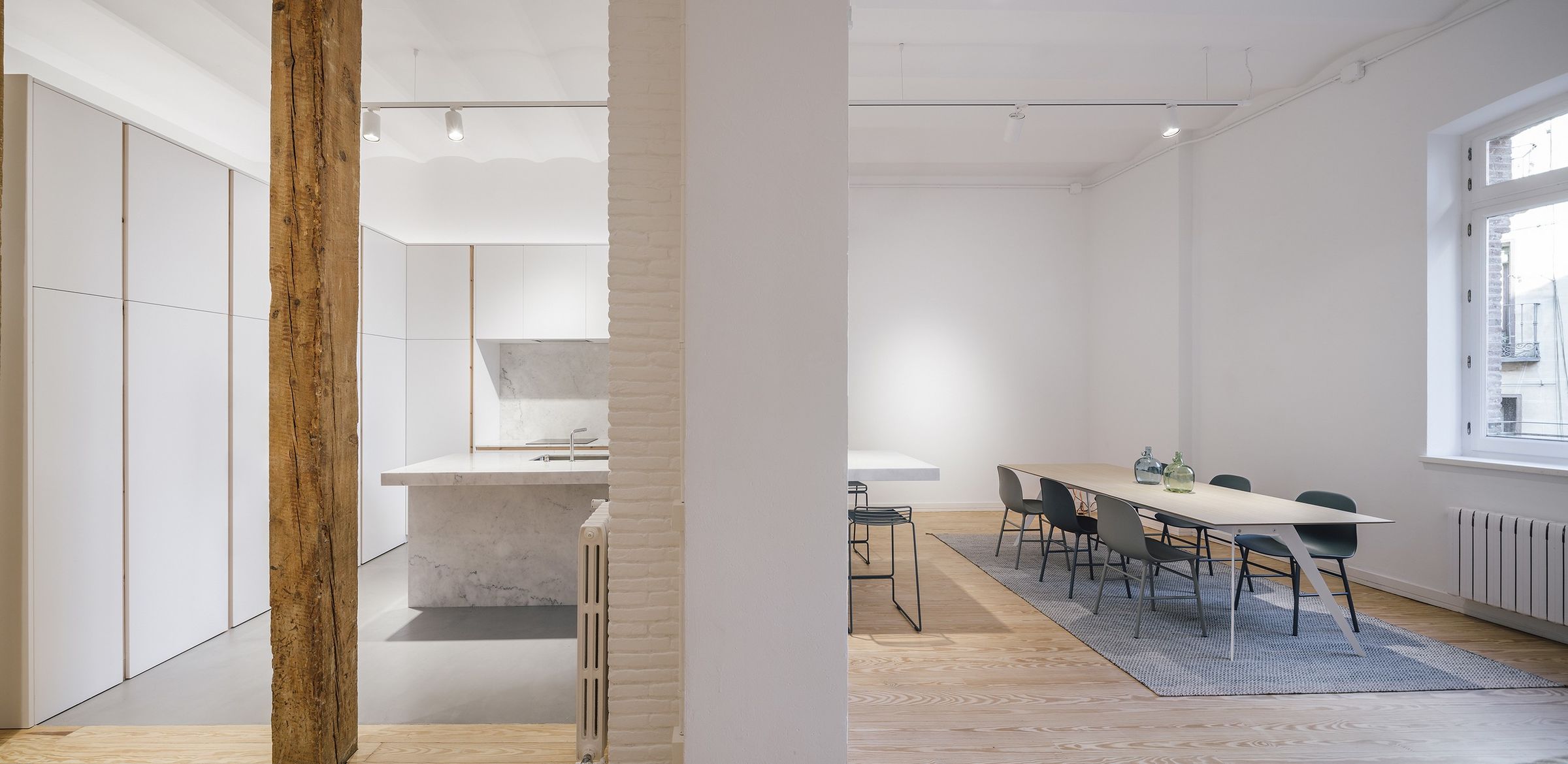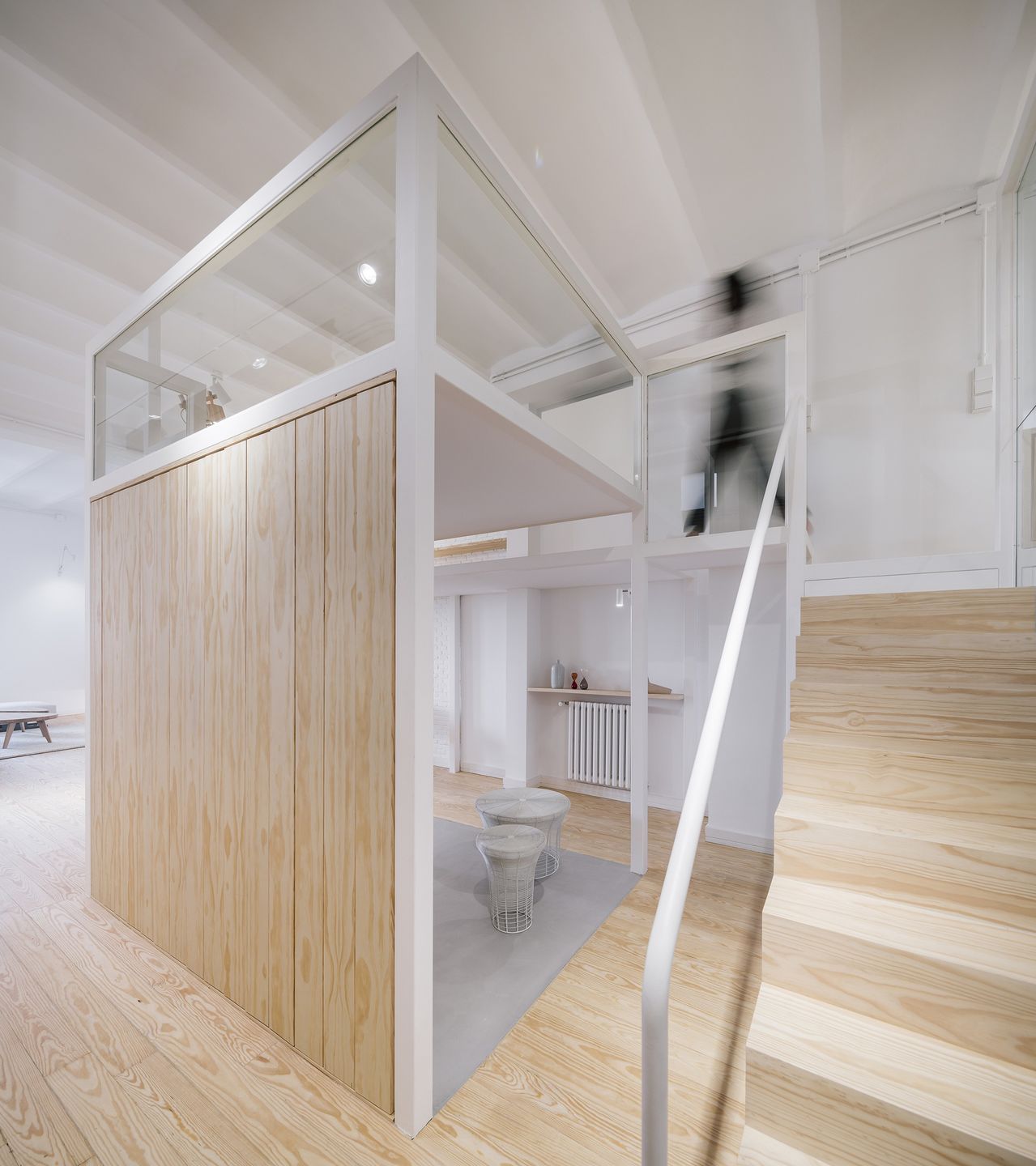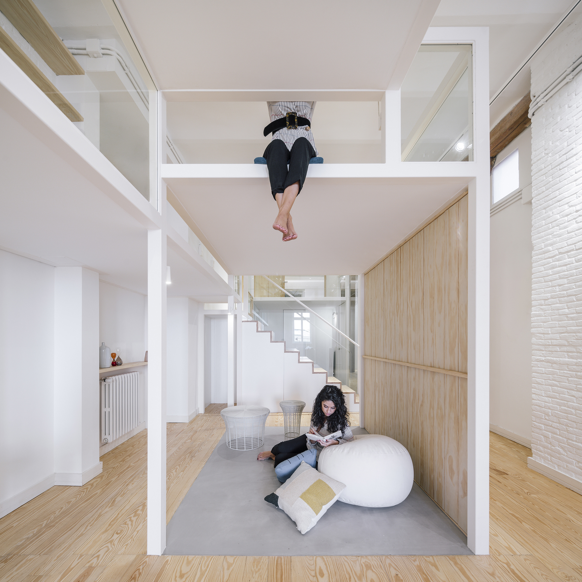 “집 안에 집을 짓는 개념의 프로젝트로, 내부 개조라기보다는 단독주택을 짓는 과정과 비슷했습니다.” 디자인팀의 설명이다. “20세기 후반에 마드리드 중심부에 지어진 개방형 로프트입니다.”