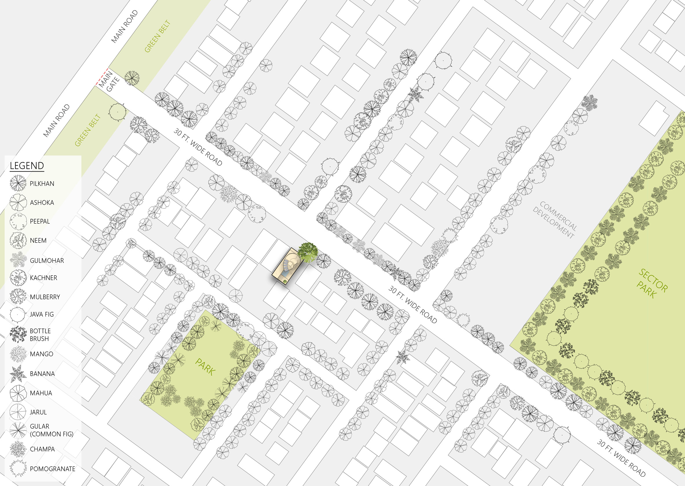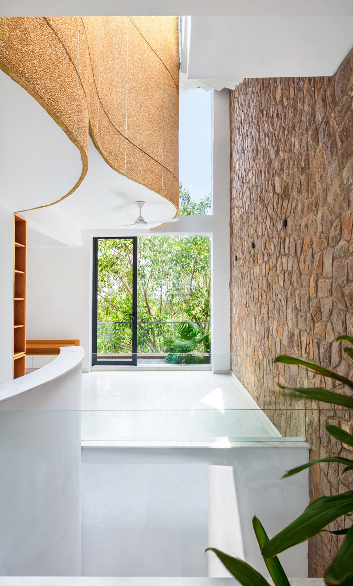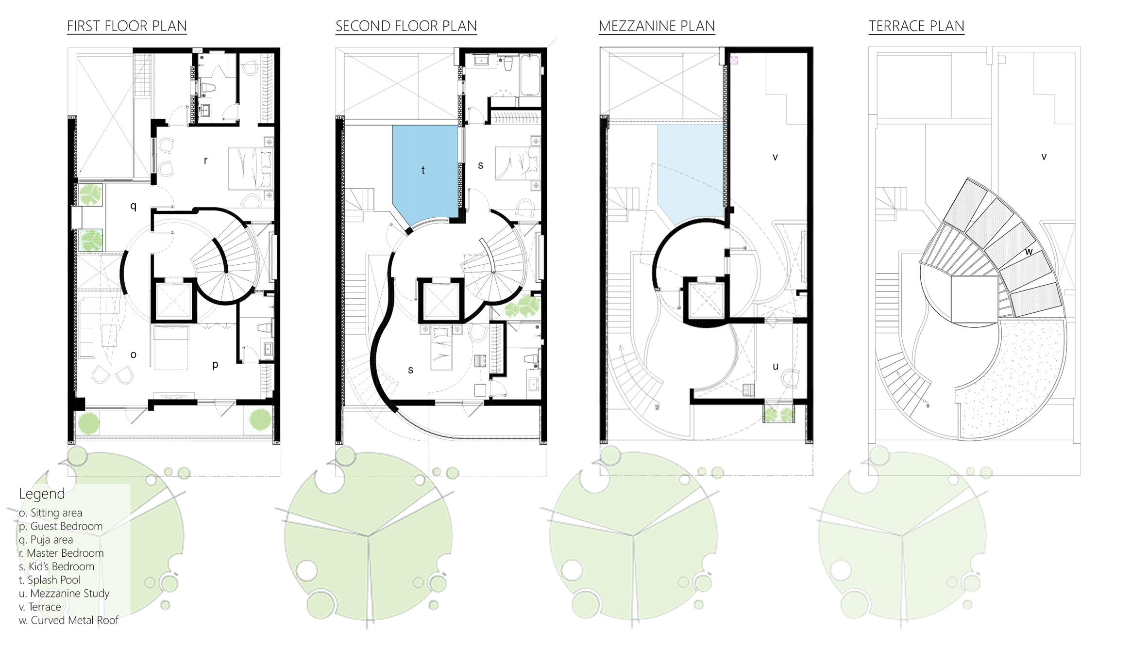 빗물 집수·저장 시설과 옥상 수영장을 갖춘 인도 노이다Noida의 상가 주택이다. 의료 사업가의 이 집의 지하와 1층에는 클리닉 공간이 들어 있다. 지하 1층, 지상 5층 규모의 건물 전체 층을 연결하는 엘리베이터와 나선형 계단이 포함된, 원형 코어를 중심으로 공간들이 배치되었다.