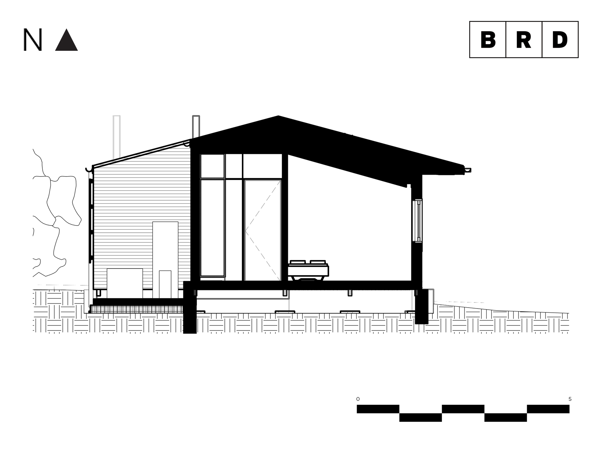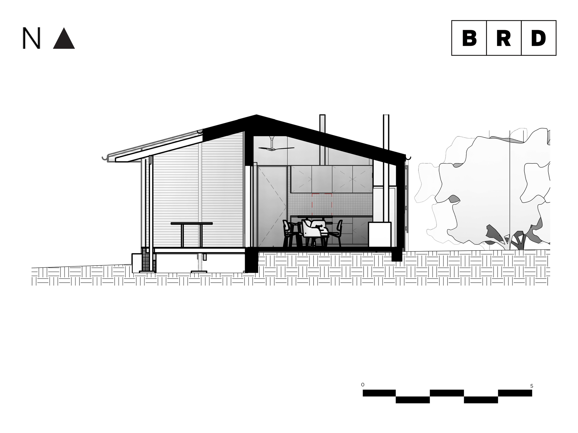 대지 및 주변 환경과 연결성을 가지고 살 수 있게 하려는 것이 설계의 주된 목표였다고 한다. 이는, 박공 구조의 일부를 절개하여 두 군데에 집과 주변 환경 사이를 완충, 전이, 매개하는 옥외 공간을 배치하는 형식적인 구성을 통해 달성되었다.