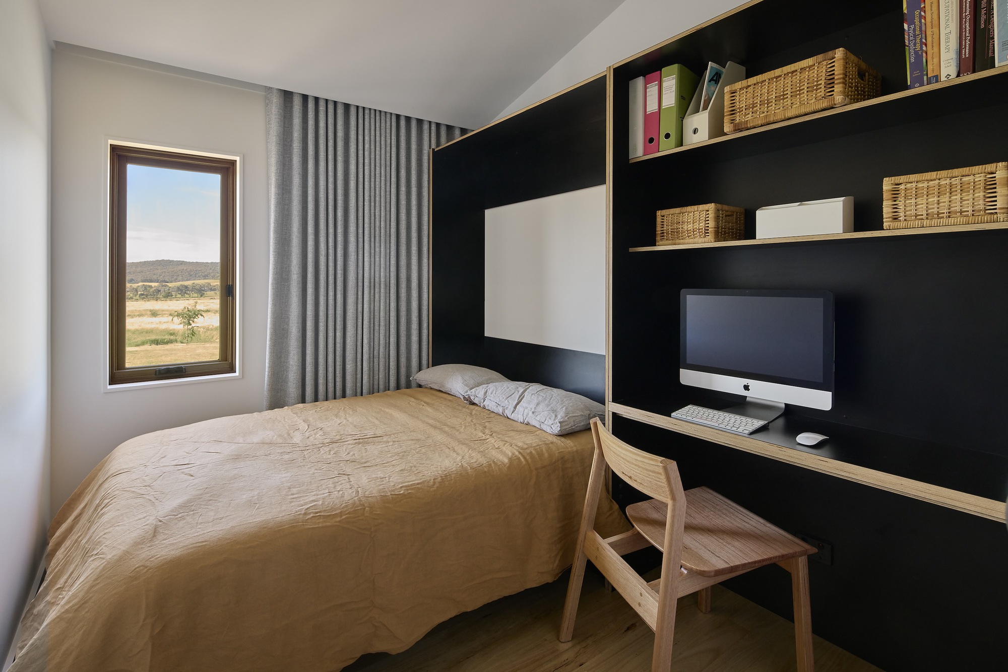 충분한 수납공간과 자연광으로 가득한 침실은, 느긋한 휴식을 위한 평화로운 안식처 역할을 한다. 축열체 역할을 하는 침실의 벽돌 벽이 실내 온도를 조절하여, 쾌적한 생활환경을 조성한다.