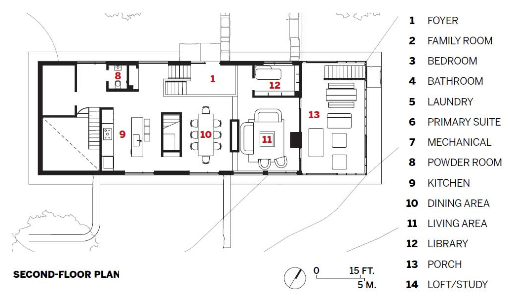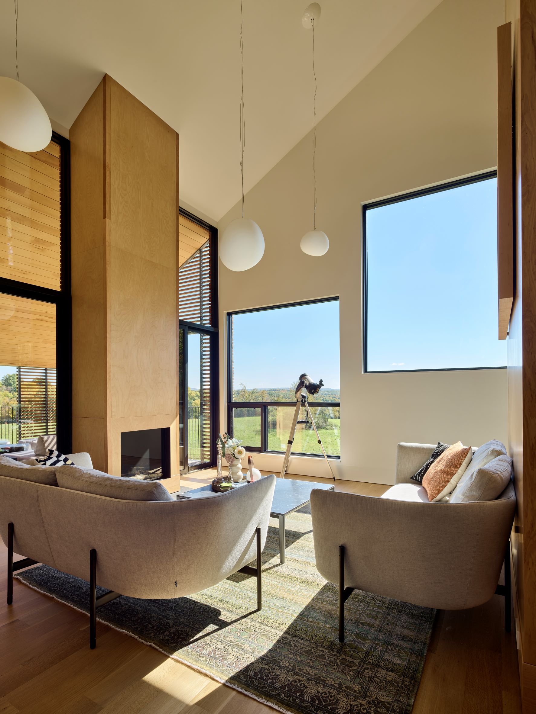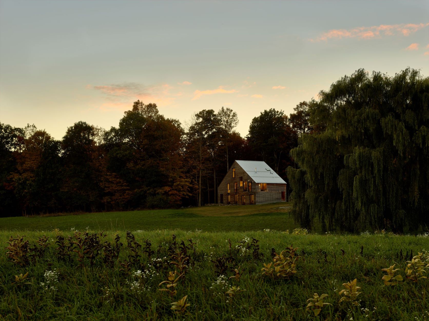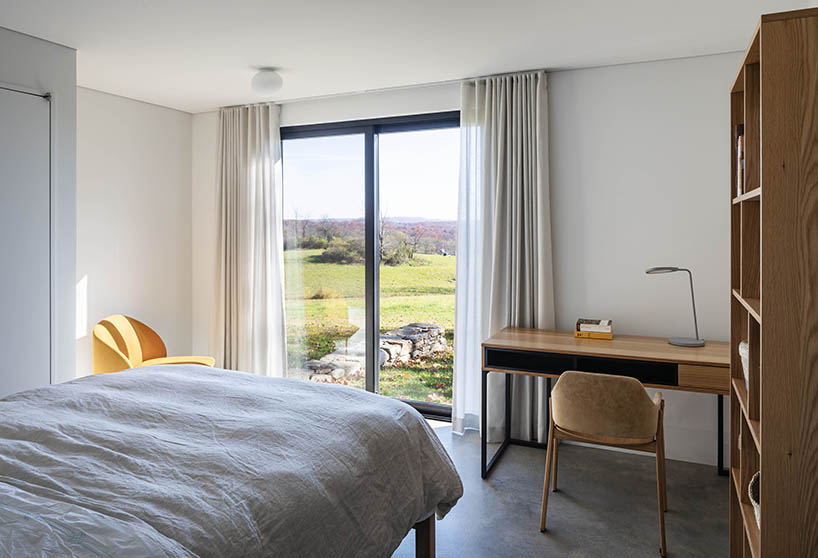 “집의 형태와 재료에 지역 건축 요소를 반영하여, 뉴욕 북부의 농업용 건축물을 재해석하였습니다.” 디자인팀의 설명이다. “그리고 내부의 볼륨, 디테일, 비율 등을 추상화하여 집을 둘러싼 숲이나 들판과 조화를 이루었습니다.”