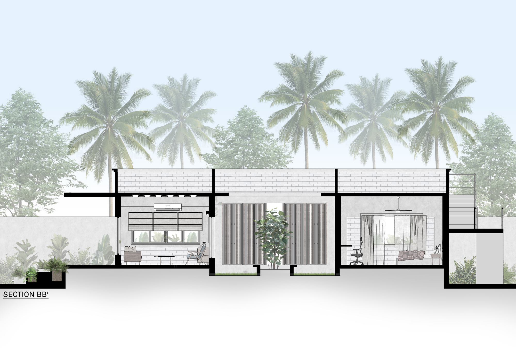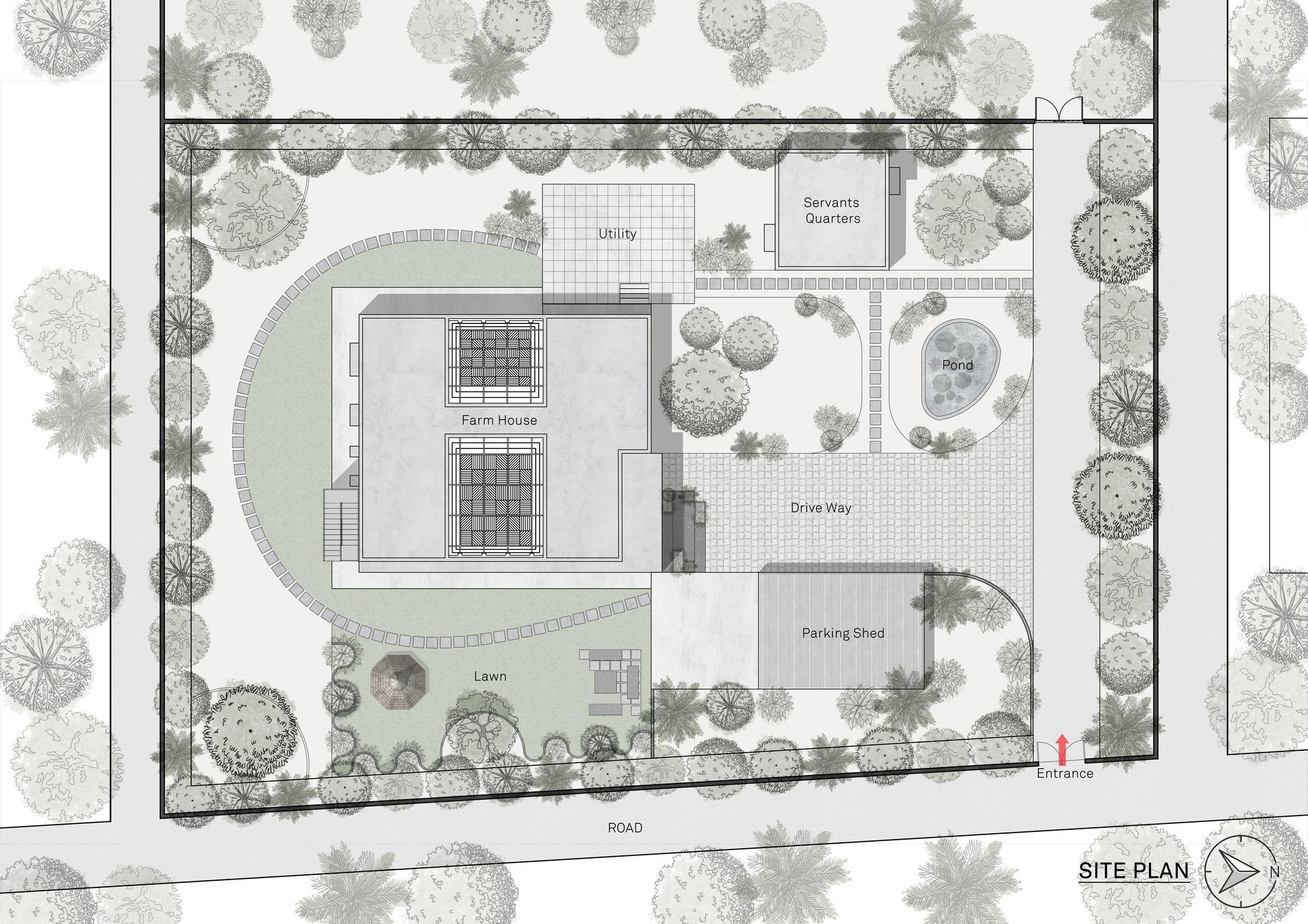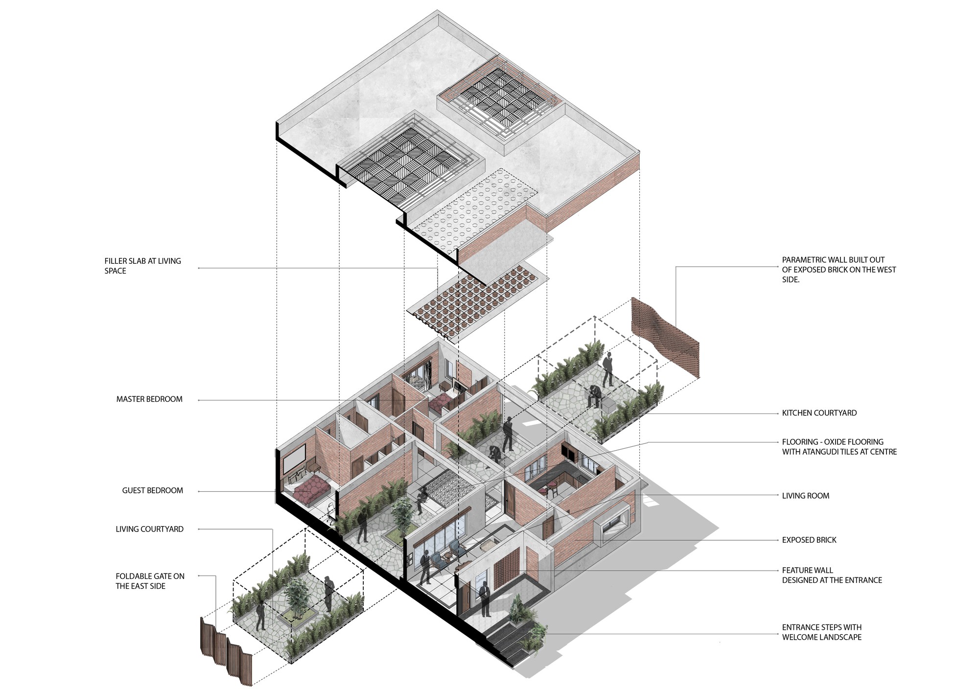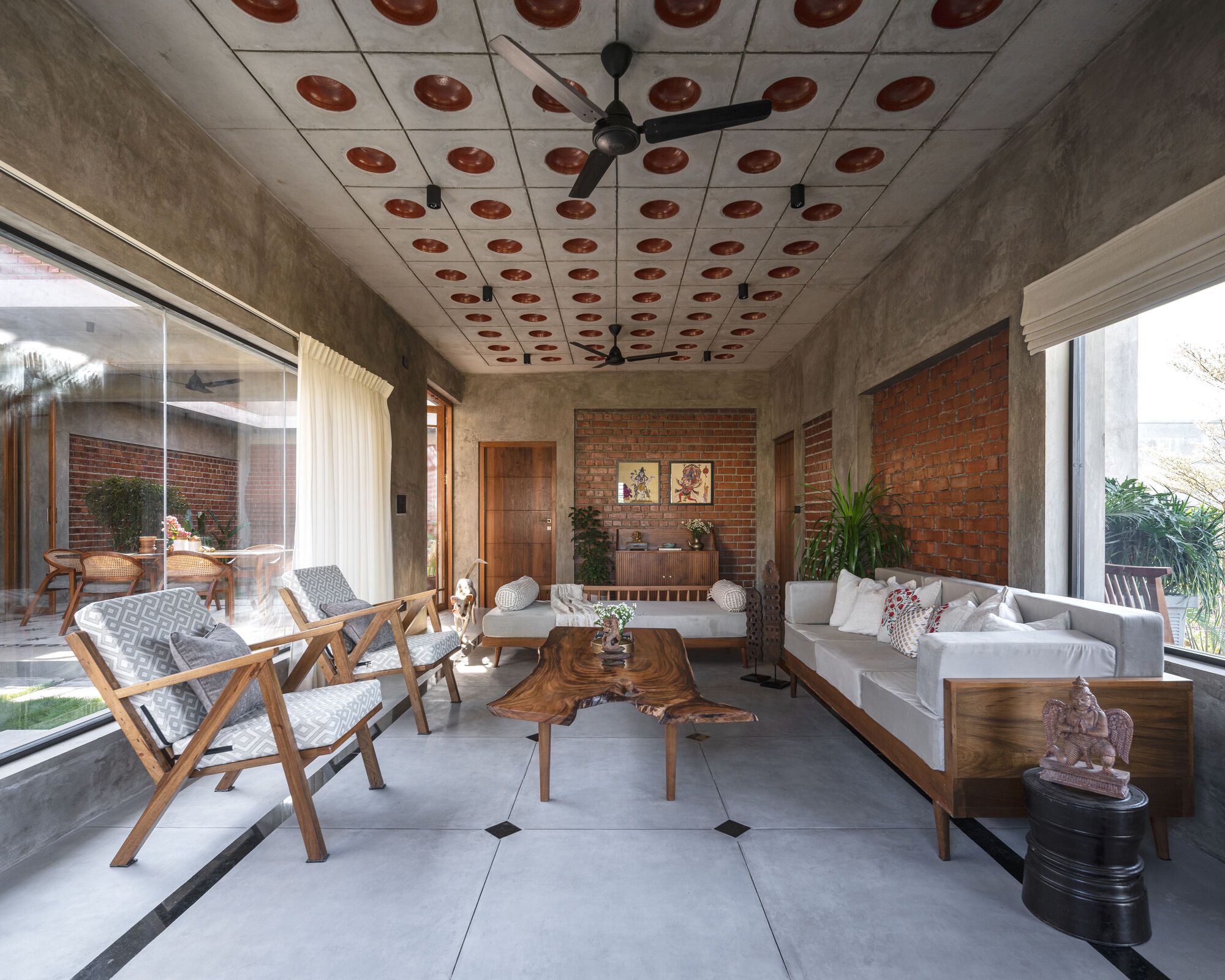 혼잡한 첸나이 시를 떠나 살고 싶은 부부가 교외에 있는 2에이커(약 2,450평) 면적의 땅을 샀다. 그런 다음 지역 특유의 건축 요소가 통합된 침실 2개짜리 집을 지어달라면서 설계를 의뢰했다. 설계팀은, 향수를 불러일으키는 동시에 현대적이고 시대를 초월한 디자인의 집을 목표로 설계를 했다고 한다.