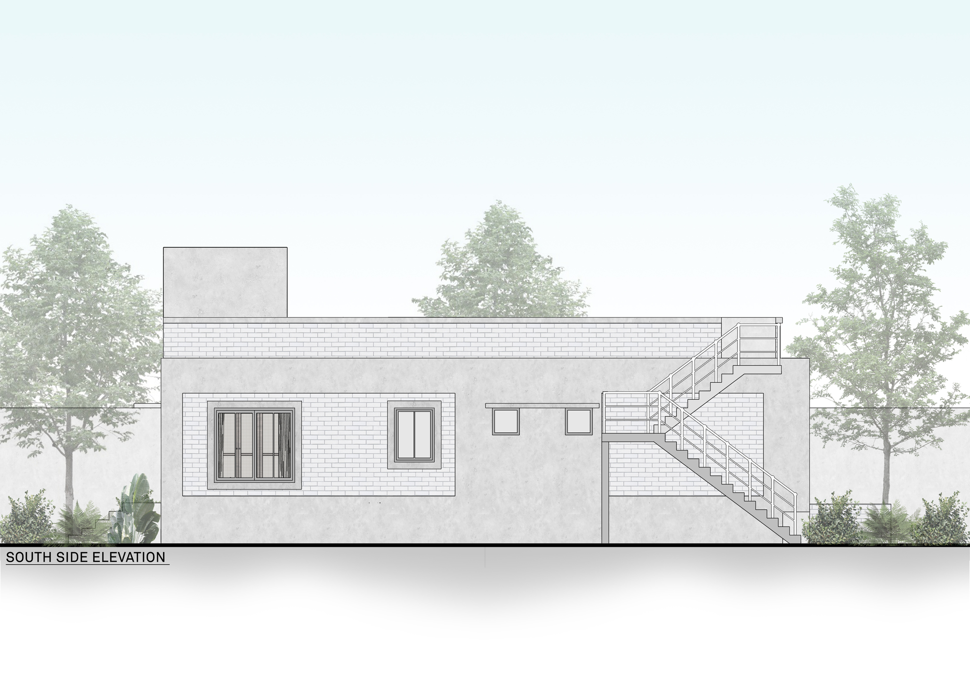 건축주의 어린 시절 시골 마을 향수를 느낄 수 있도록, 집 전체에 노출된 벽돌과 시멘트 회반죽이 사용되었다. 슬래브를 돌출시켜서 처마를 이룸으로써, 태양과 비바람의 영향을 적게 받으면서도 통풍은 잘 이루어지게 했다.