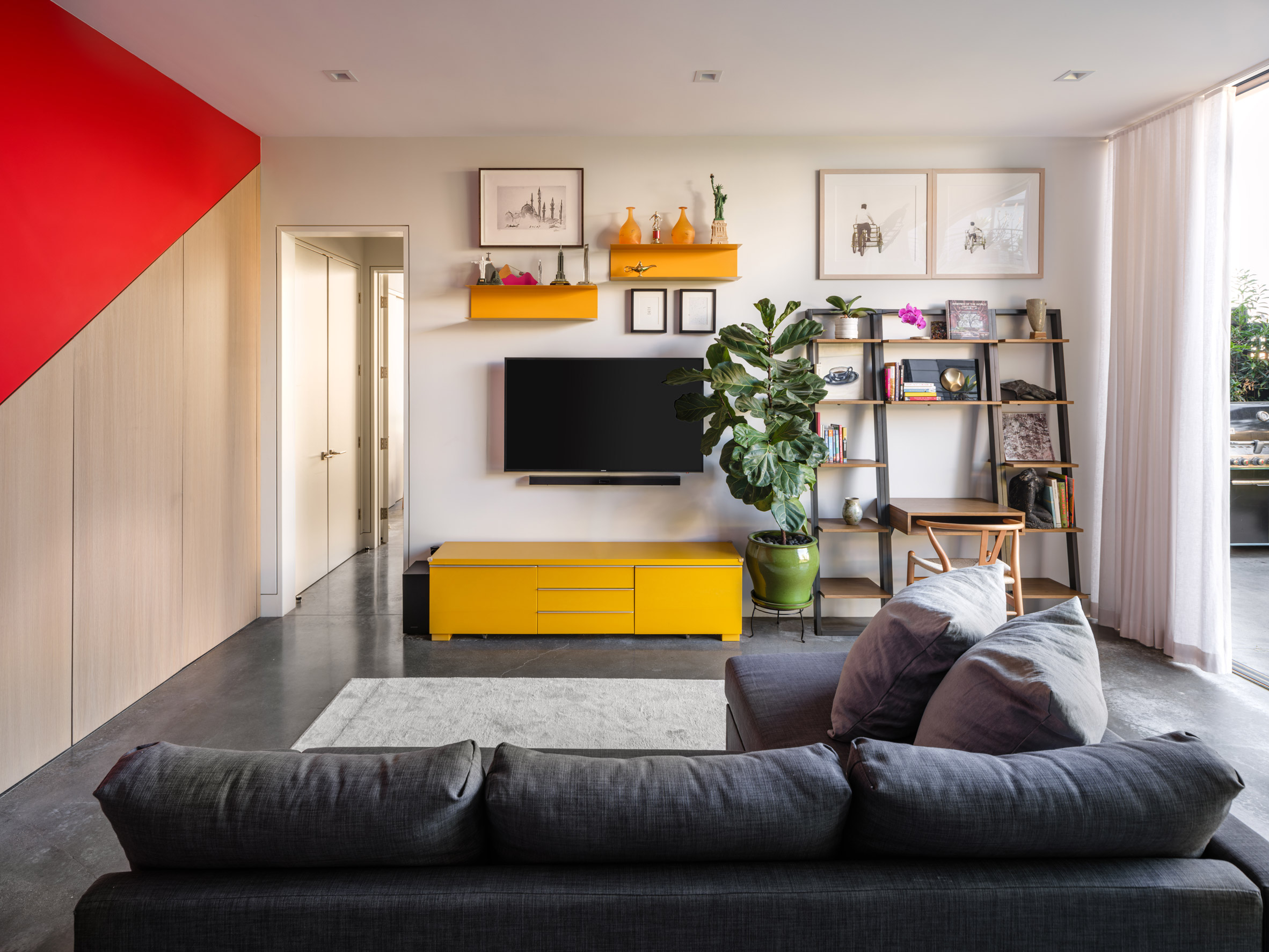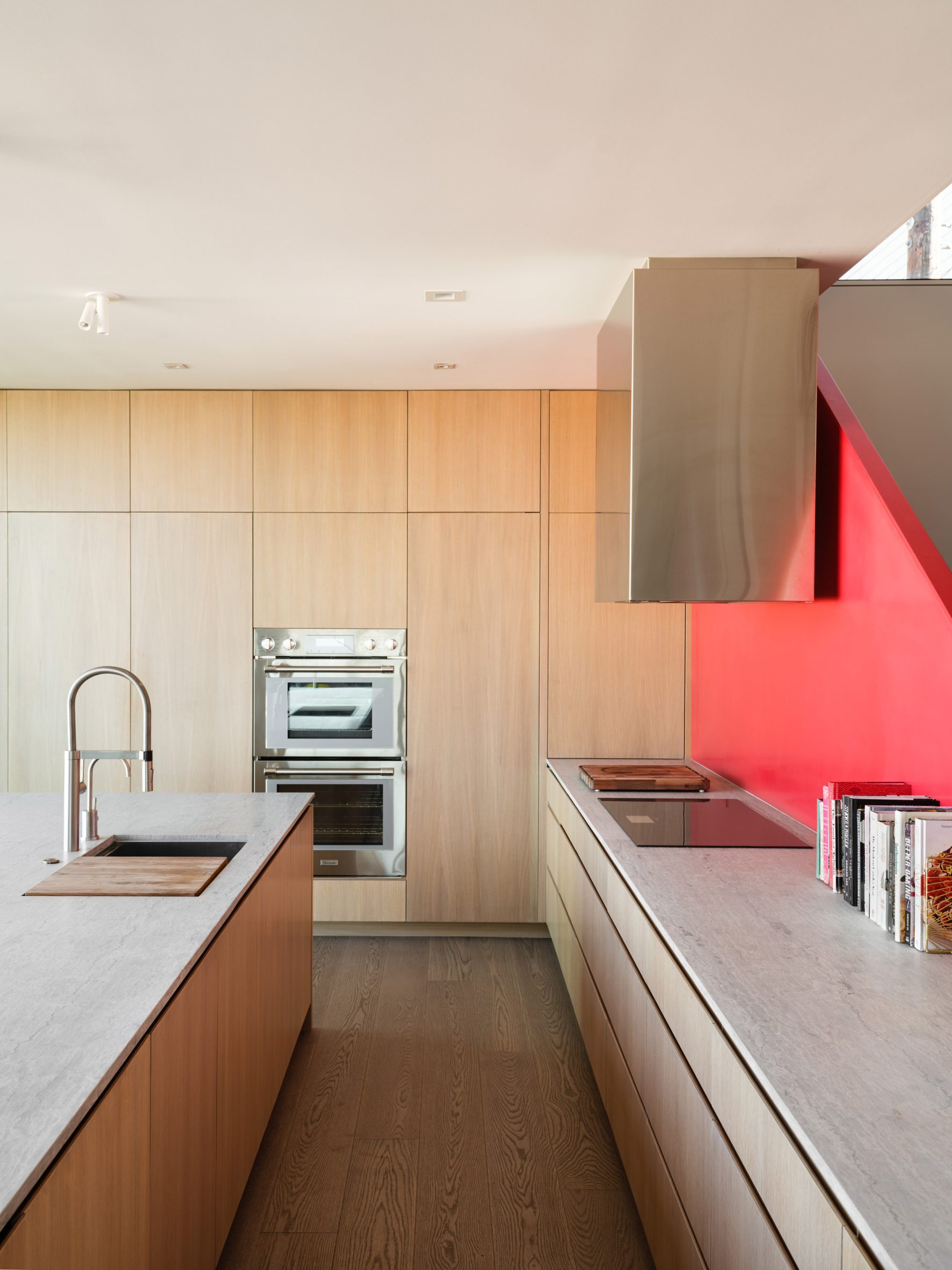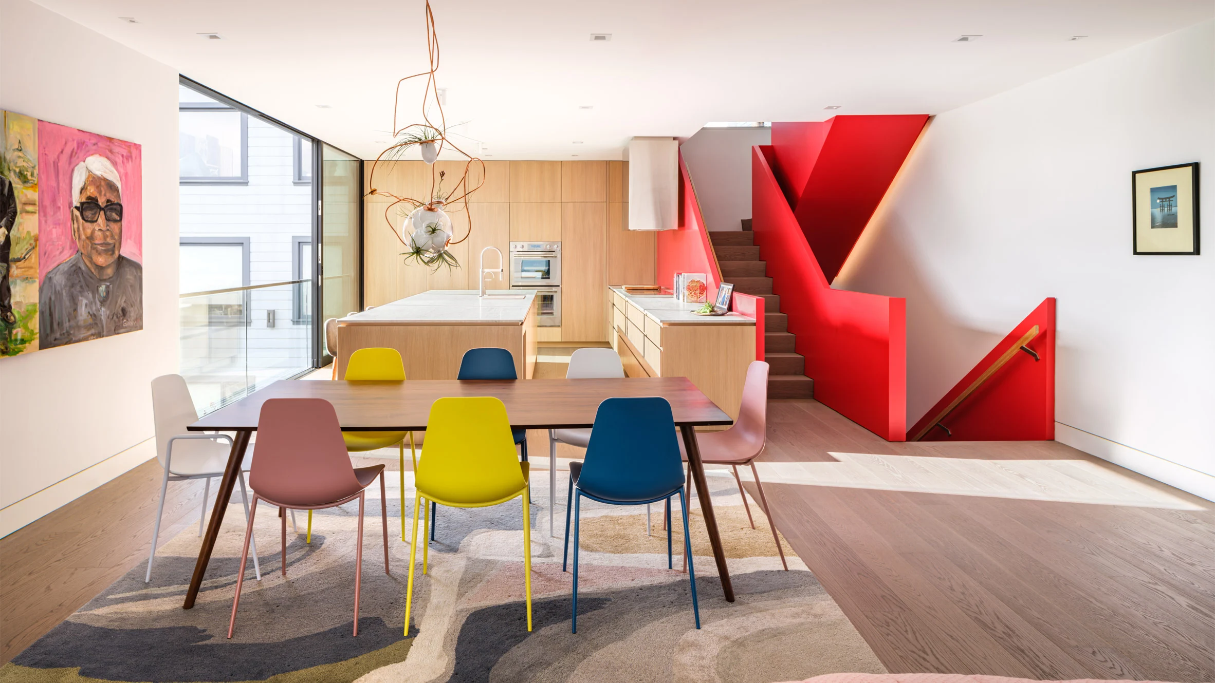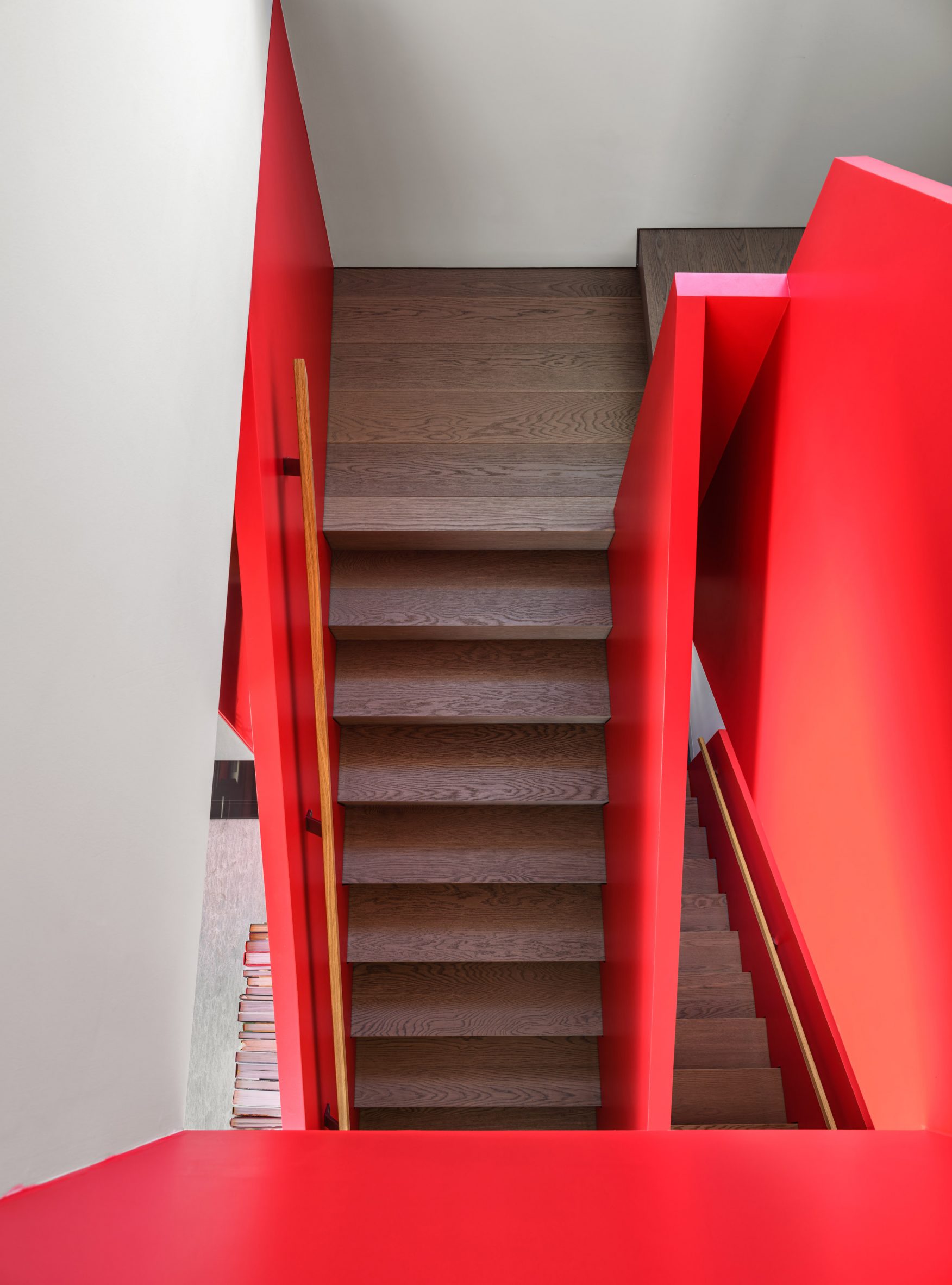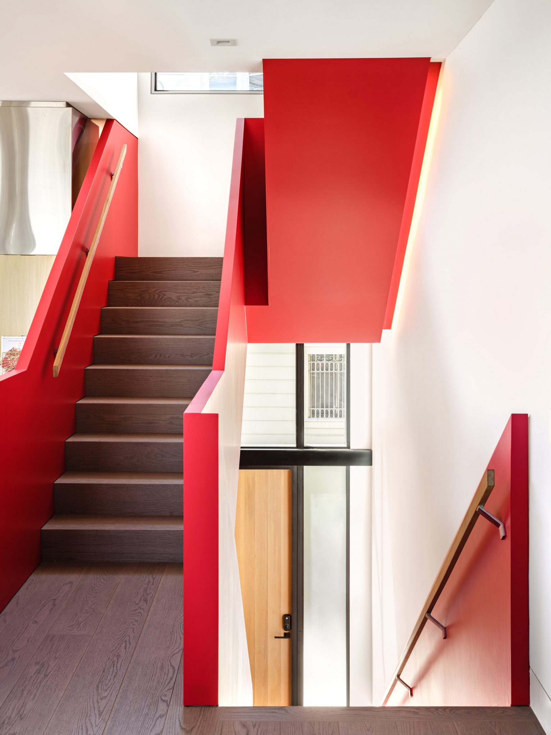 조형미 만점의 빨간 계단이 있는 듀플렉스 하우스