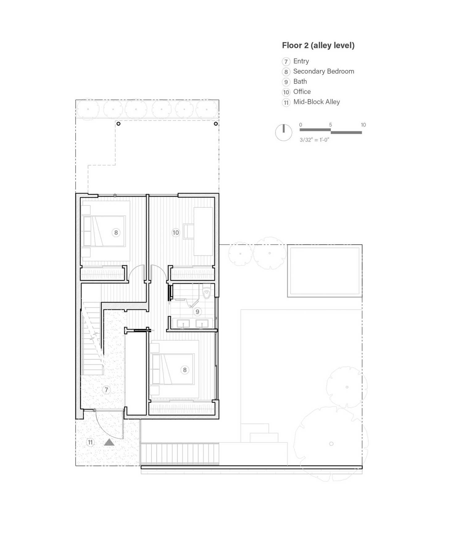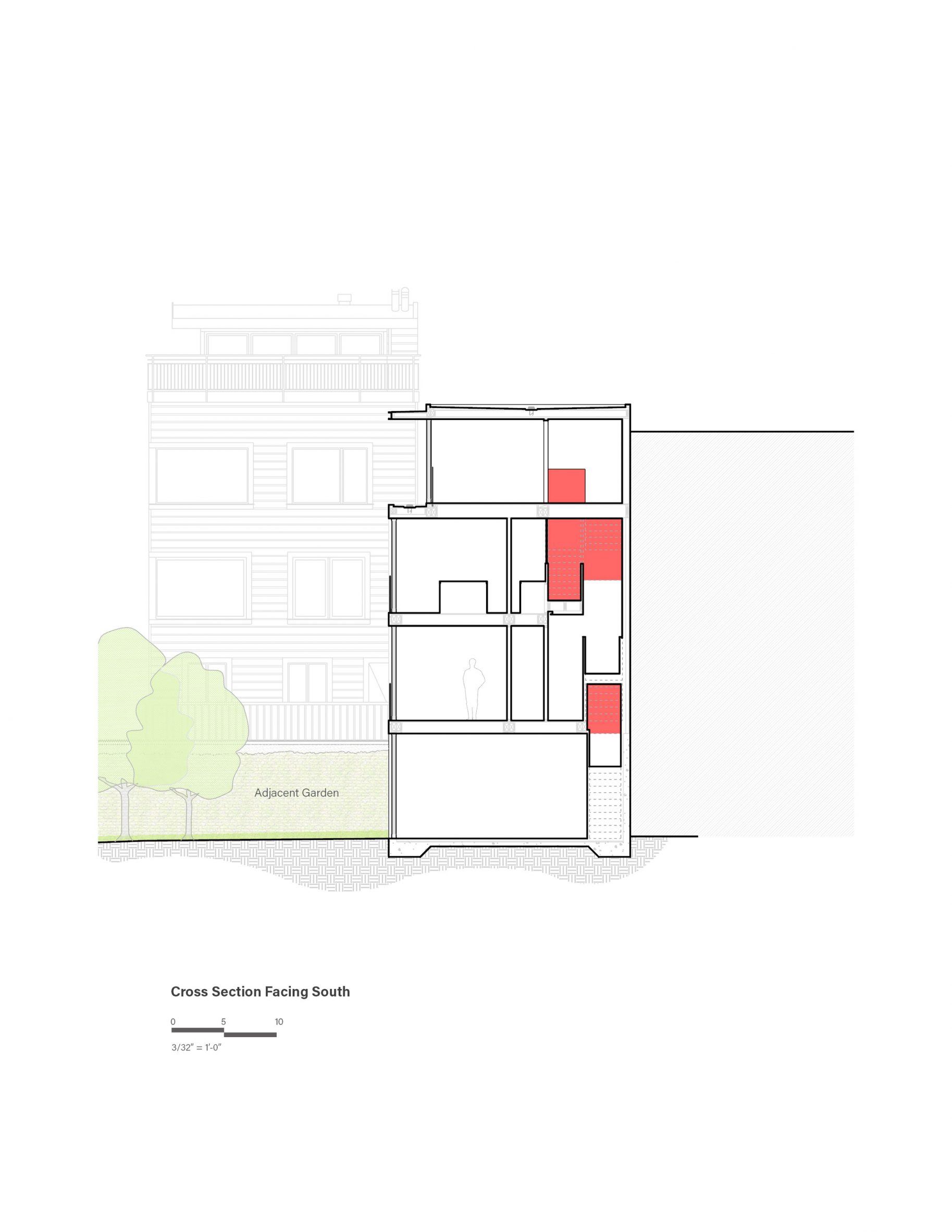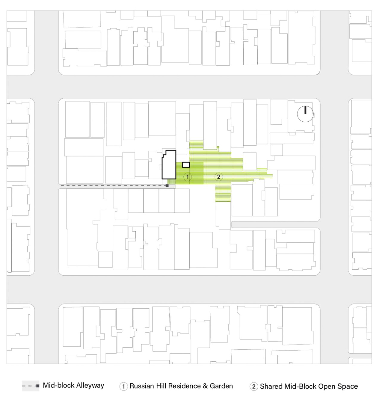 샌프란시스코의 러시안 힐Russian Hill, 그중에서도 자동차 진입이 안 되는 밀집 지역의 골목 끝에 위치한 1900년대 초의 기존 두 가구 주택을, 4층, 3,300제곱피트(약 93평) 규모로 개조한 듀플렉스 하우스이다.