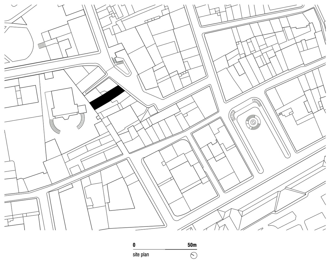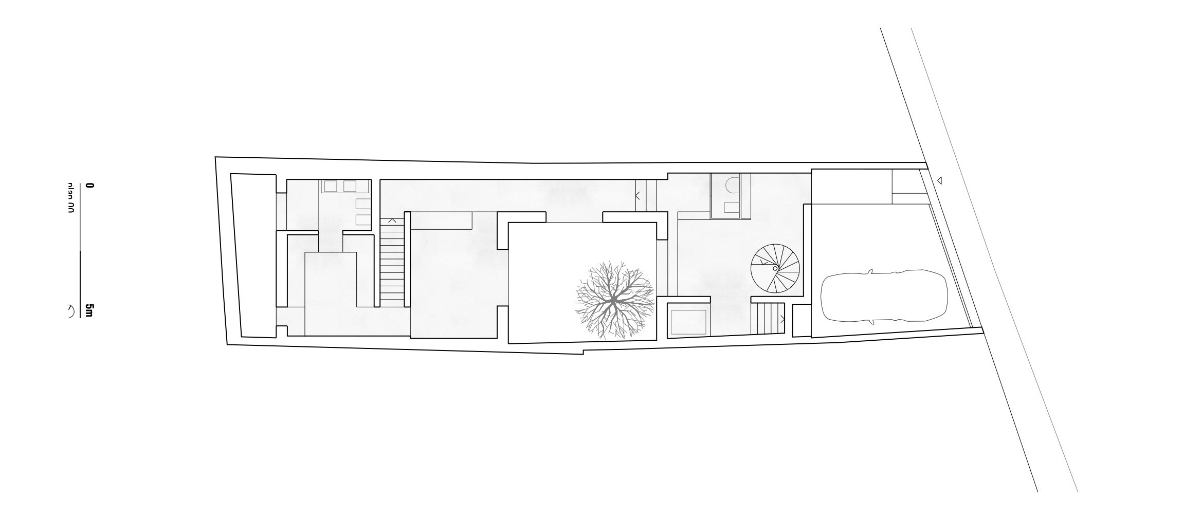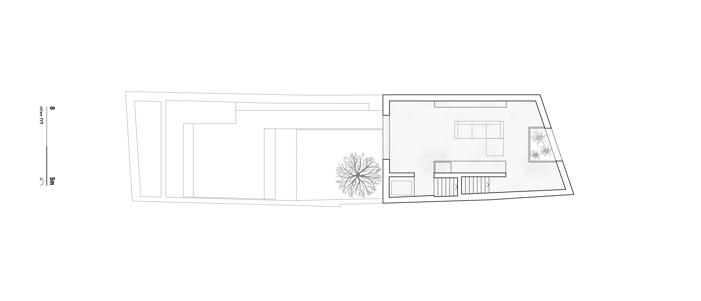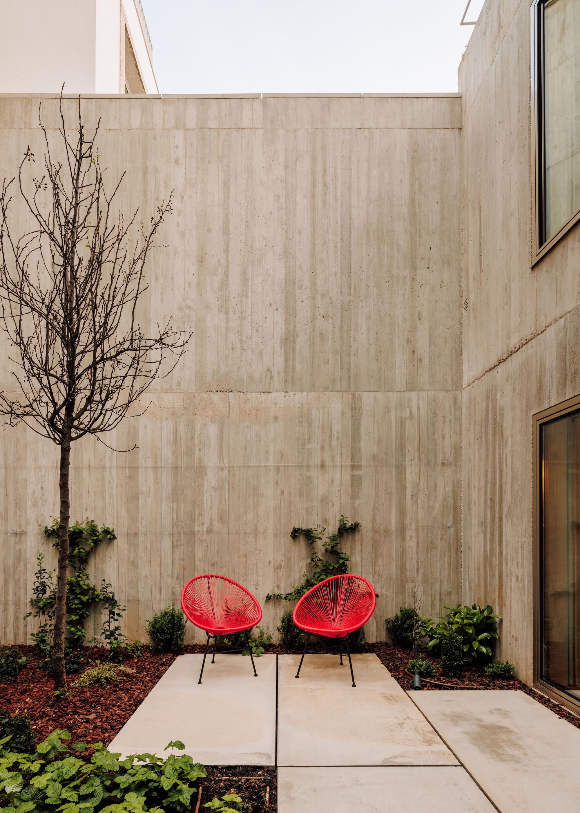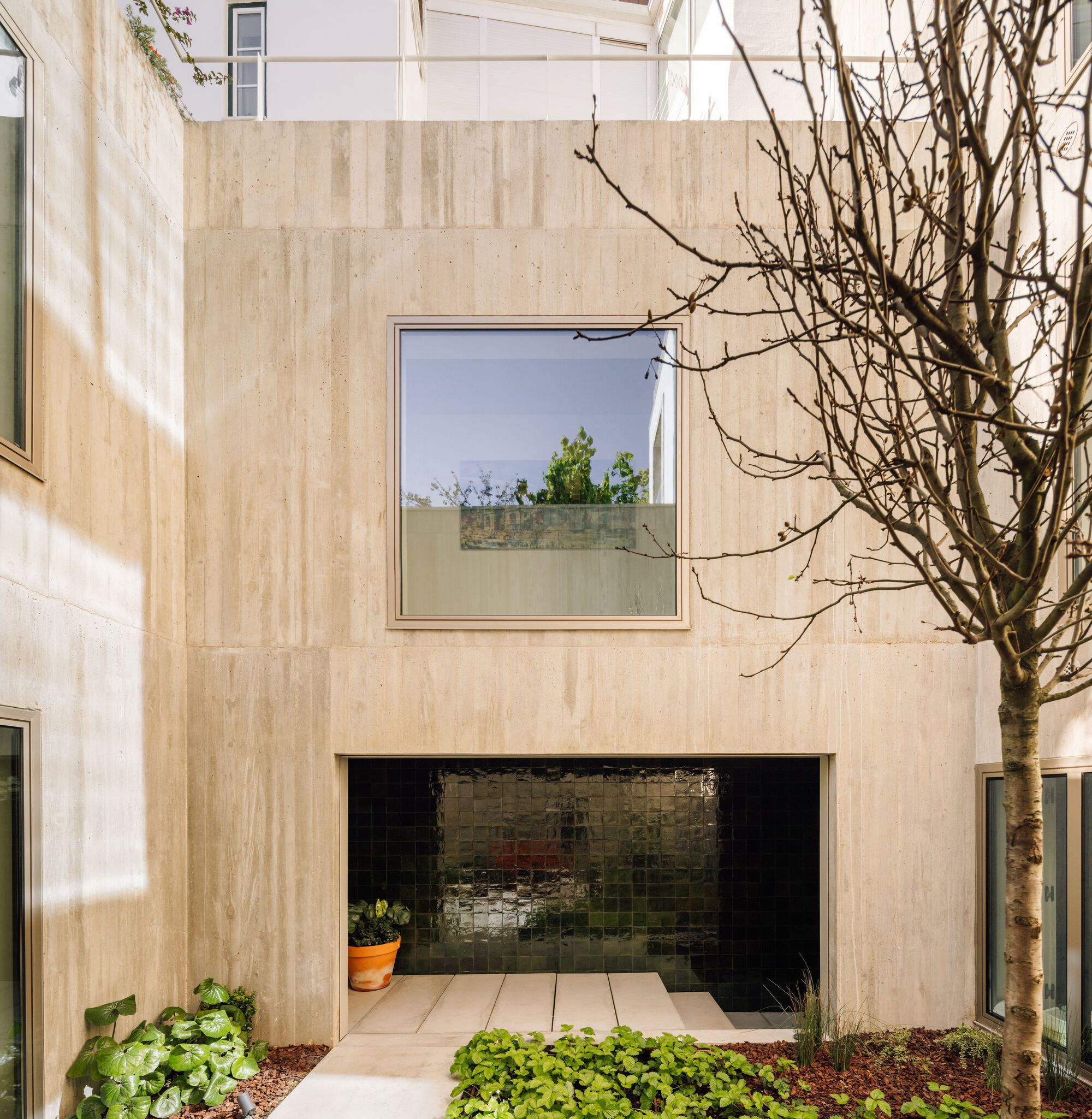 리스본 소재 국립고미술관Museu Nacional de Arte Antiga의 인접 동네인 Lapa에 위치한, 약 7m x 26m 크기의 좁고 긴 부지에 들어선 테라스트 하우스이다. 이 집은, 중정을 공유하는 두 개의 볼륨(2층 규모의 침실 볼륨, 오피스를 포함한 4층 규모의 공용 볼륨)으로 이루어졌다.
