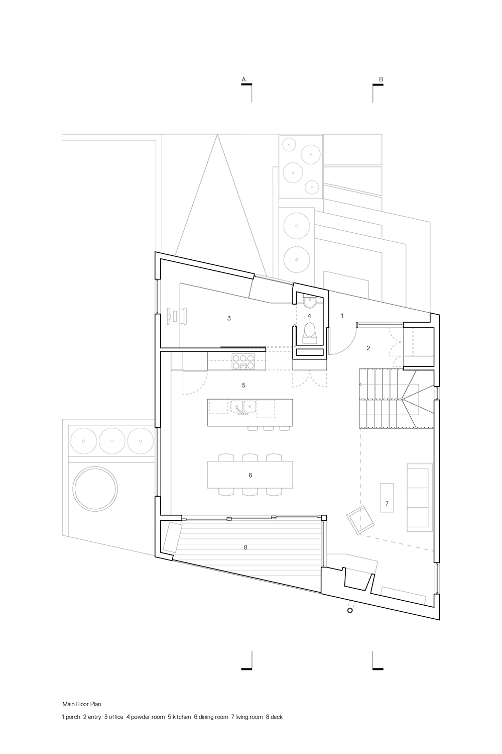 건축주는, 6세 아들과 12세 딸을 둔 여성 커플이다. 그들은 원래, 증·개축할 생각으로 기존 가옥을 구입했었다고 한다. “그래서 1918년에 지어져서 기초가 무너져가고 있던 기존 건물을 수리할 방안을 찾기 위해 1년이 넘도록 고심을 했습니다.”설계팀의 설명이다. “하지만, 기초를 완전히 새로 구축해야 할 만큼 기존 건물이 낡았다는 판단을 하고, 더 작더라도 건축주의 예산 범위 내에서 새로 현대식 주택을 짓기로 하고, 설계를 진행했습니다.”