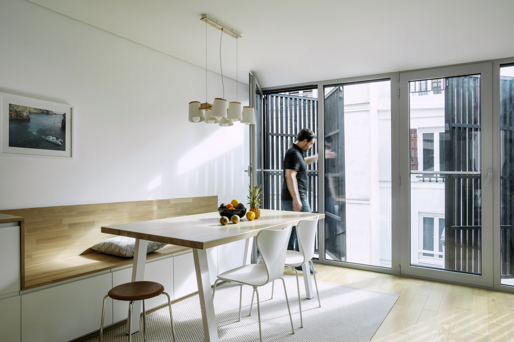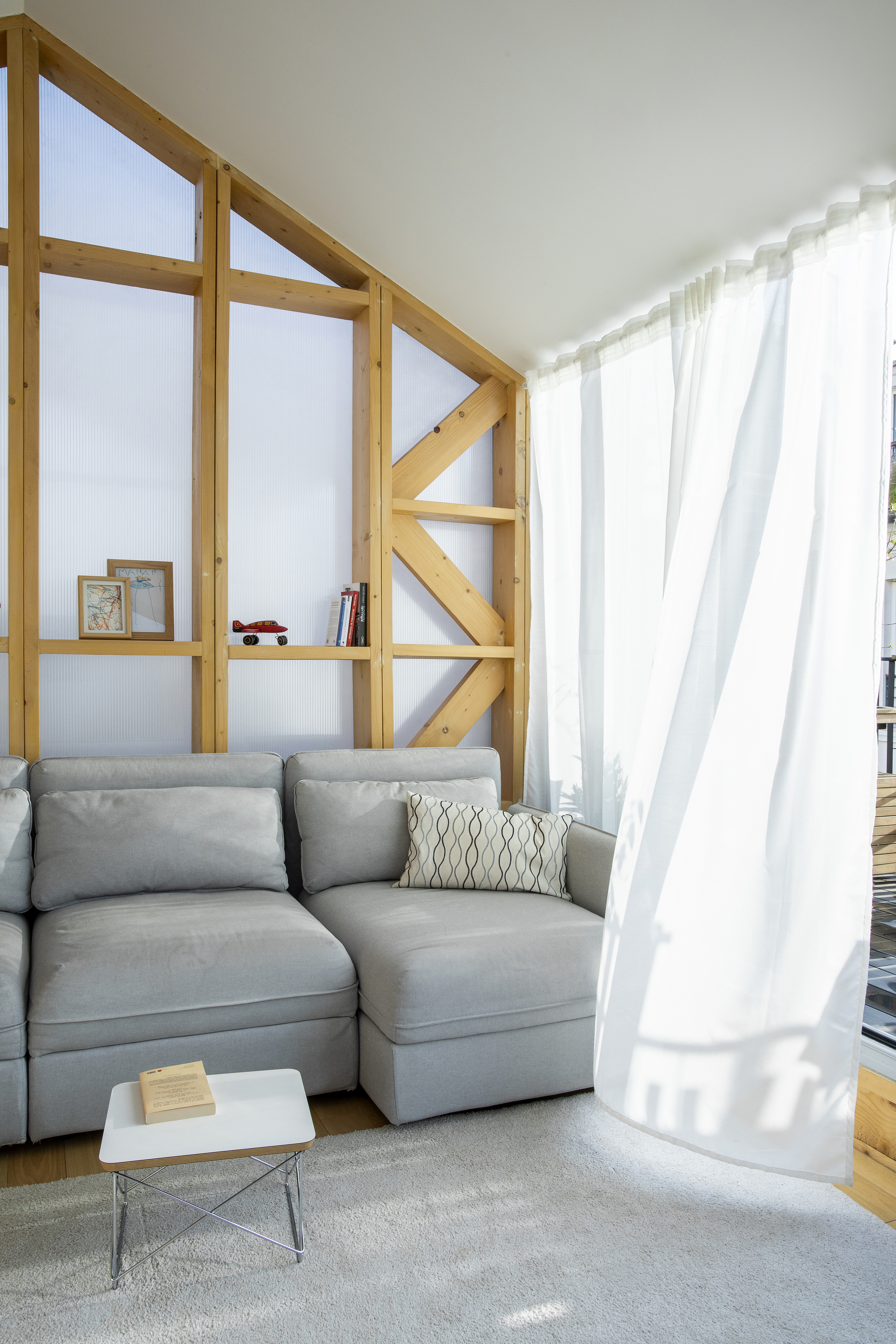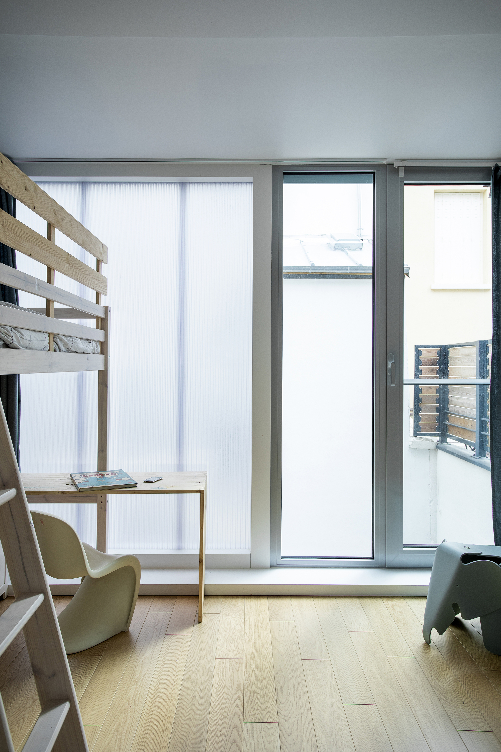 Staying in Paris. 일견 미친 도박처럼 보일 수도 있겠지만, 집값이 천정부지로 치솟고 있는 파리 같은 도시에 중산층 가족이 집을 가질 수 있는 방법을 찾기 위한 좋은 실험이었다고 생각합니다. 기존 건물의 구조를 재사용함으로써, 건축 자재, 에너지, 토지, 예산 등을 많이 절약할 수 있었습니다. 미친 짓처럼 보였지만, 마침내 건축주는 혼잡하고 비싼 도시 한가운데에 에너지 효율적인 현대식 주택을 갖게 되었습니다.”