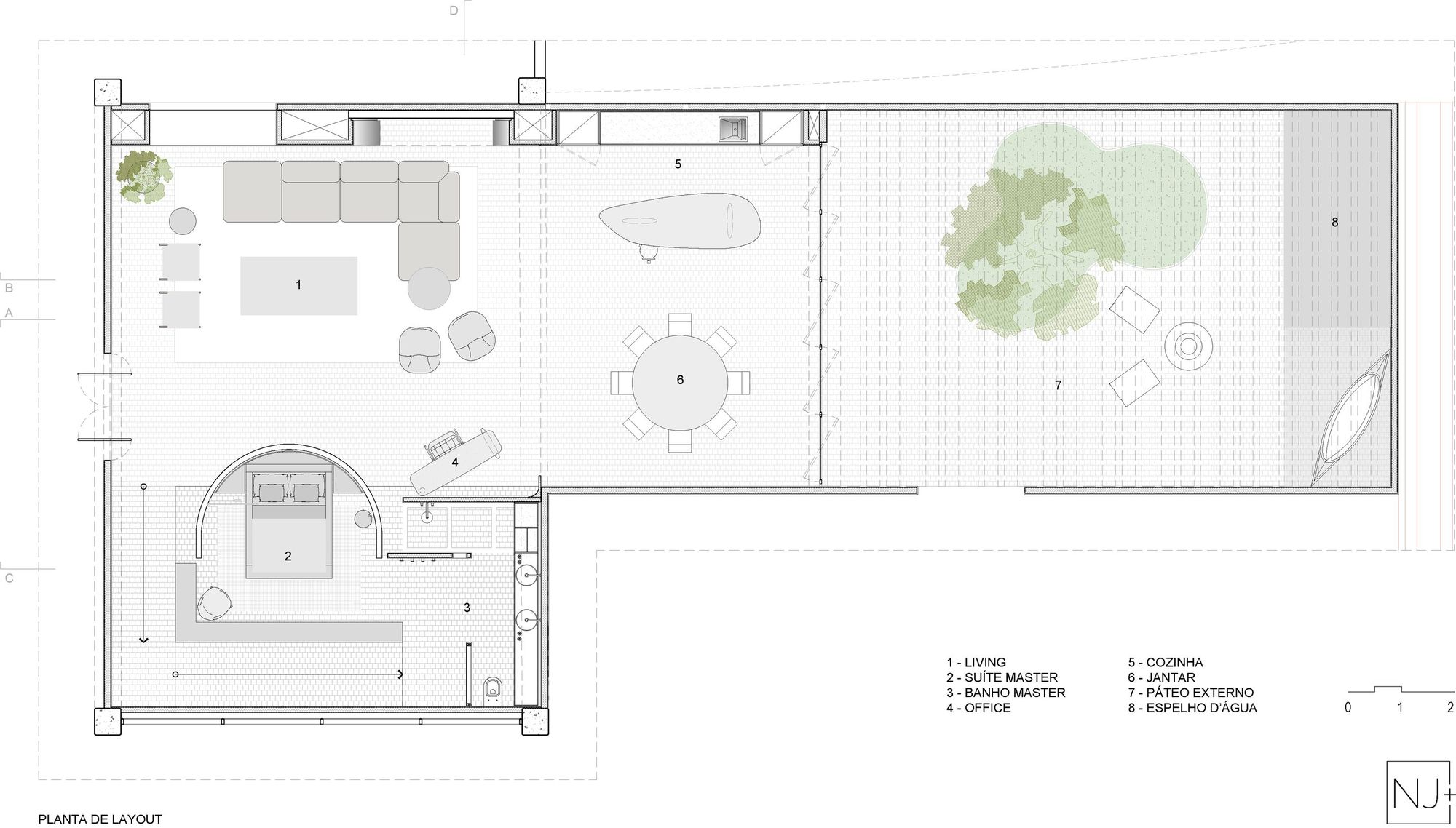 남북 아메리카를 통틀어 가장 큰 건축, 인테리어 디자인 및 조경 전시회 중 하나라는 까자꼬르CASACOR에 올해로 네 번째 참가하고 있는 NJ+가 브라질의 고대 도자기와 건축 관련 수공예품이 돋보이도록 디자인하여 재현한, 200m²(집 125m² + 정원 75m²) 규모의 주거공간이다. 상파울루에 있는 알리안츠 파르키Allianz Parque의 별관인 파르키 미란테Parque Mirante에서 9월 21일부터 11월 15일까지 열리는 이번 행사의 주제는 ‘The Original House’이다.