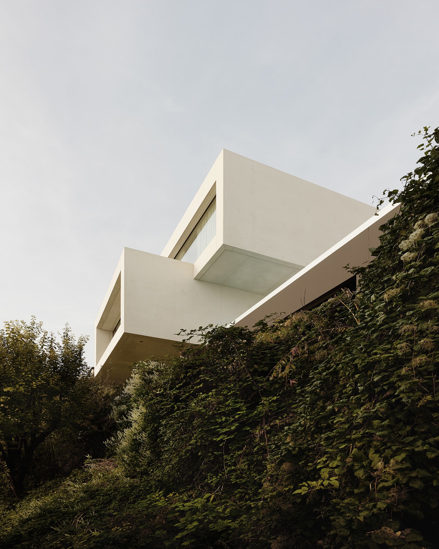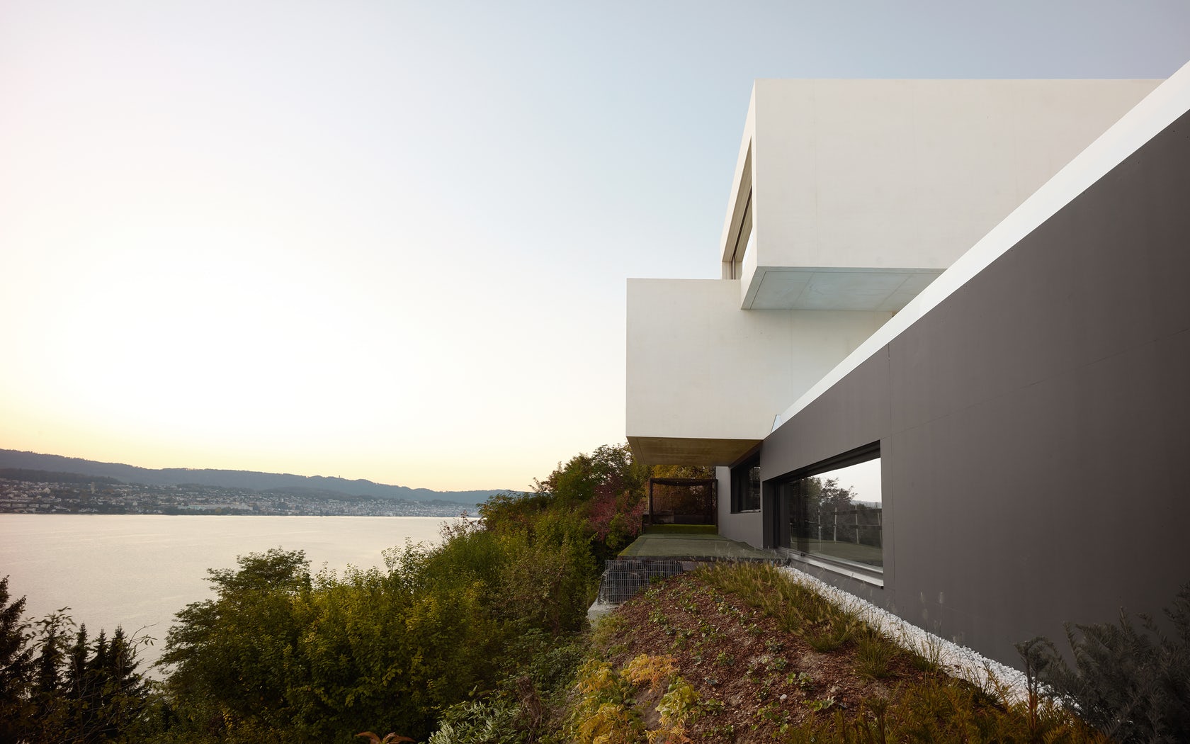 툭 트인 곳에 독특한 구조로 지어져서 쉽게 눈에 띄는 이 주거용 건물은 지도상에서 취리히 호수 오른쪽에 위치한다. 서로 어긋나 있는 동시에 하나로 합쳐진 두 개의 볼륨이 가파르게 경사진 땅의 가장자리 위로 솟아 있다. 명확한 선과 형태로 이루어져 있어서 목가적인 환경과 강한 대조를 이룬 집이다.