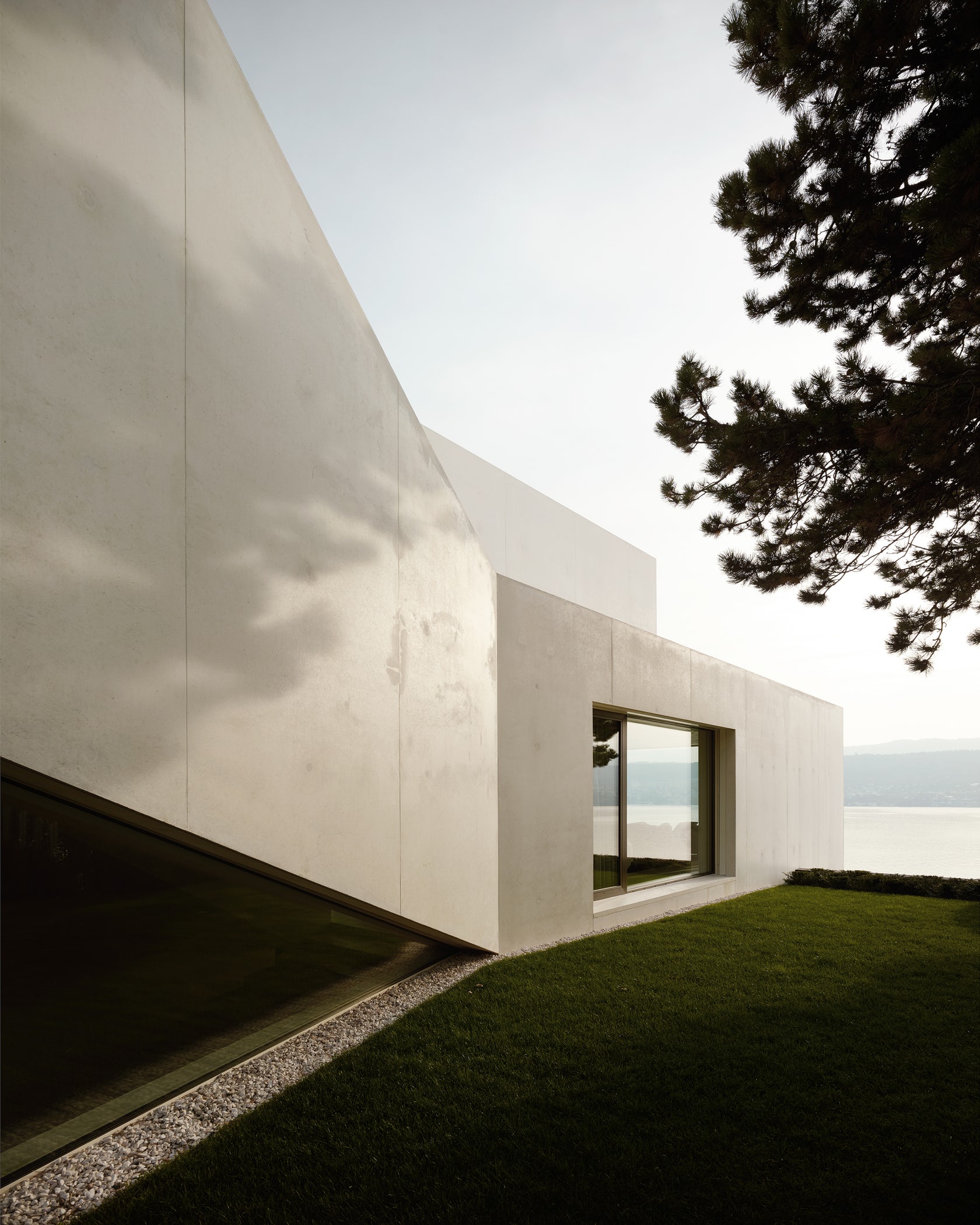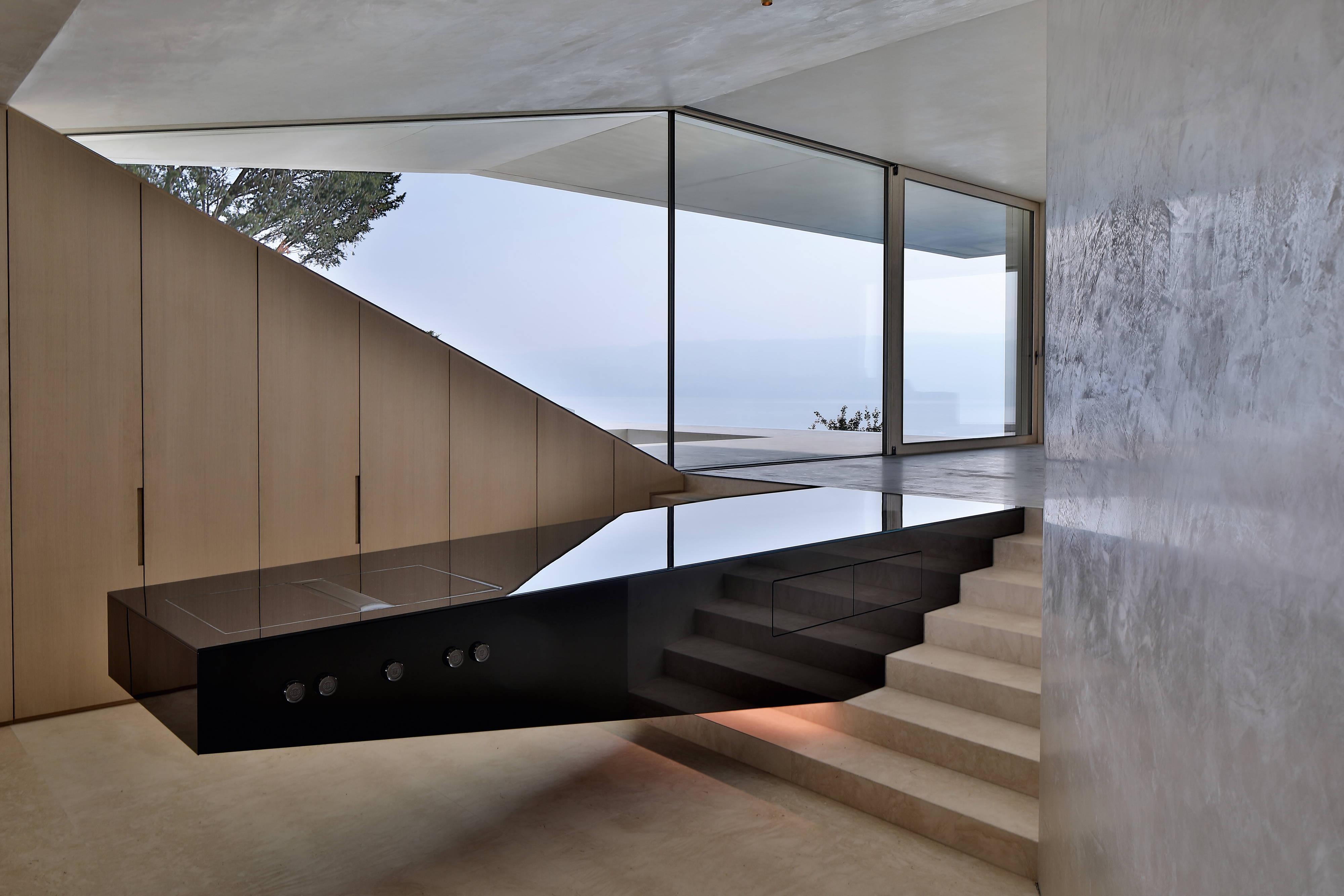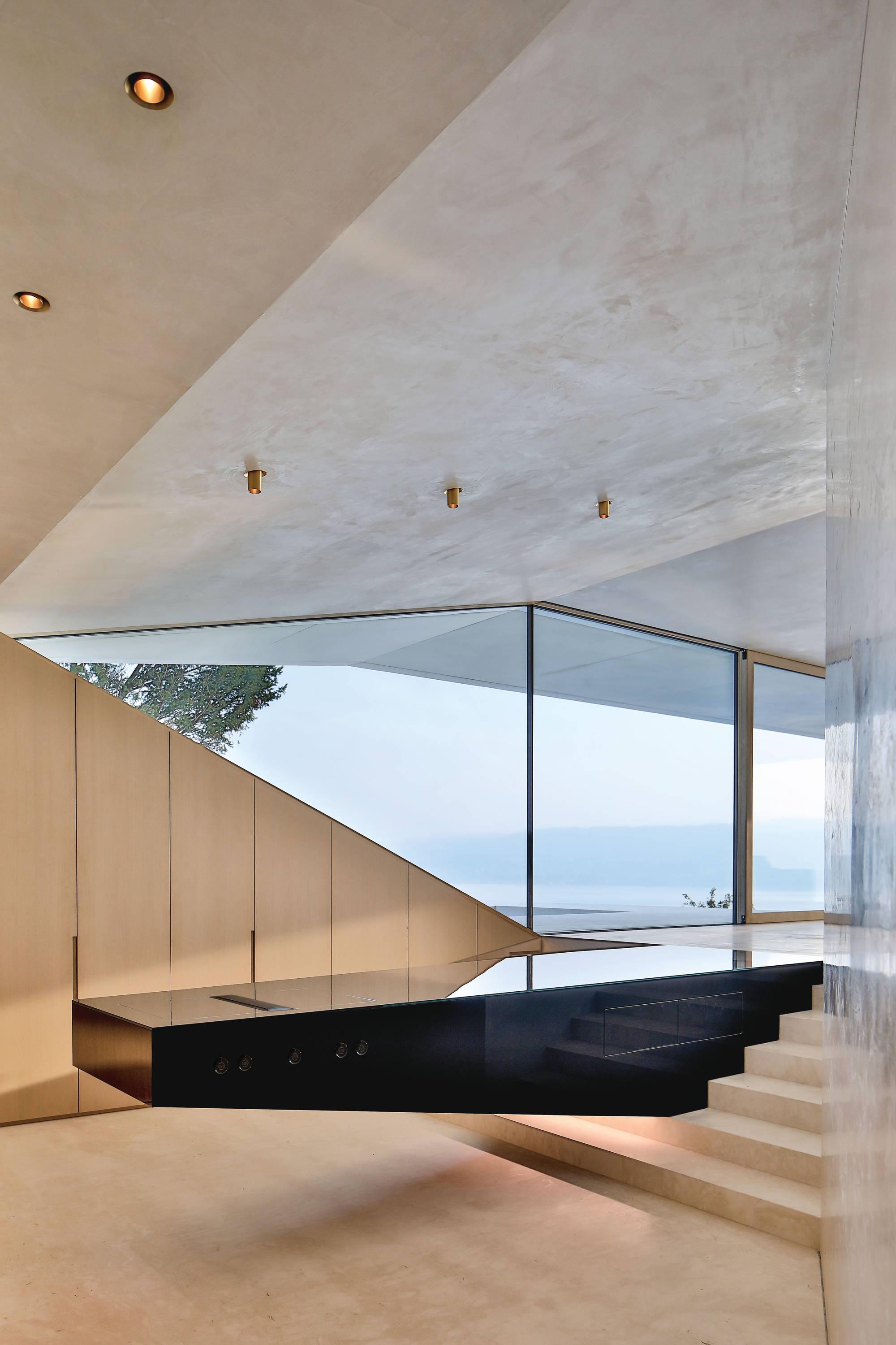 내부는, 널찍널찍한 공간들 사이가 넉넉한 크기의 계단으로 연결되었다. 환경적으로 프라이버시가 최대한 확보된 이 집은, 호수와 호수 건너 멀리 있는 그림 같은 알프스 풍경을 각기 다른 관점으로 즐길 수 있게 계획되었다. 수면이 호수의 수면과 이어져 있는 것처럼 보이도록 비탈 가장자리를 따라 설치한 야외 수영장도 인상적이다.
