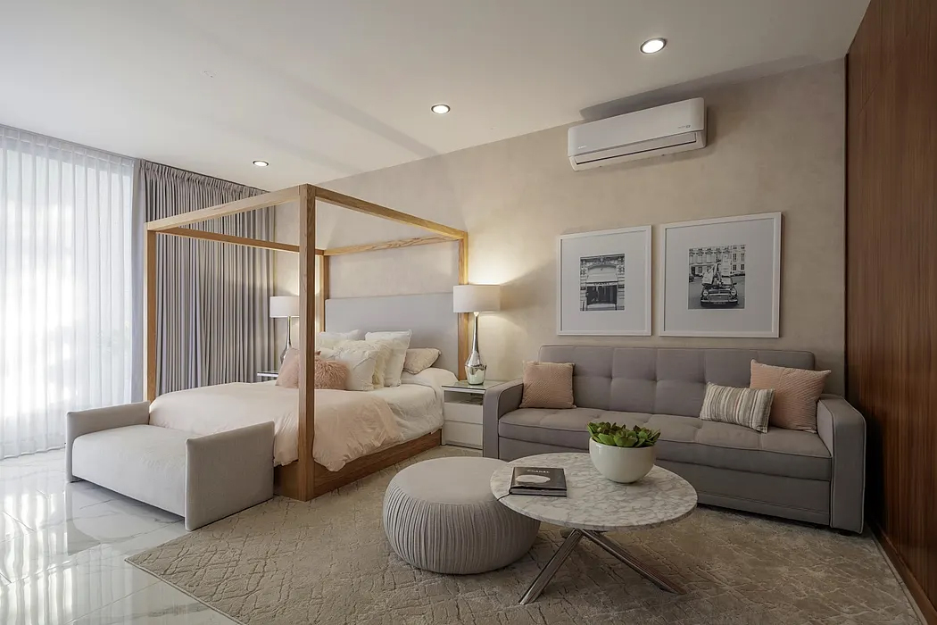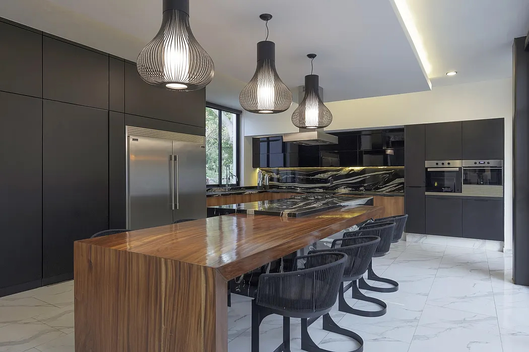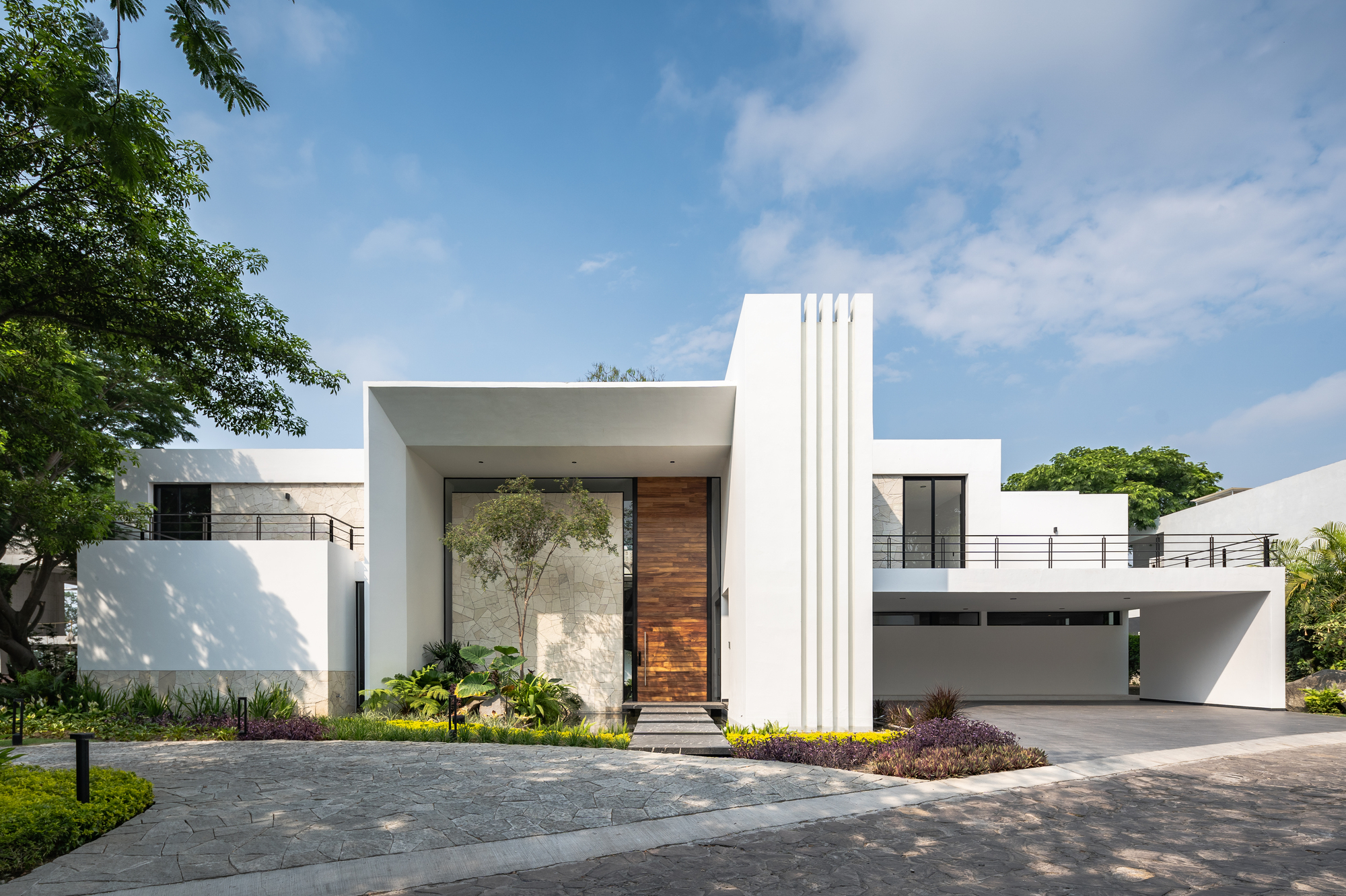 Awakening the feeling of warmth was the material’s task. The parota, Blanco Galarza stone and the white floors; overlay the spaces evoking the emotion of tropical climate. Other elements such as screen lattices, protect the user from the orientation and the sun, generating lights and shadows that venture with rhythm at certain hours on the surfaces of the house.