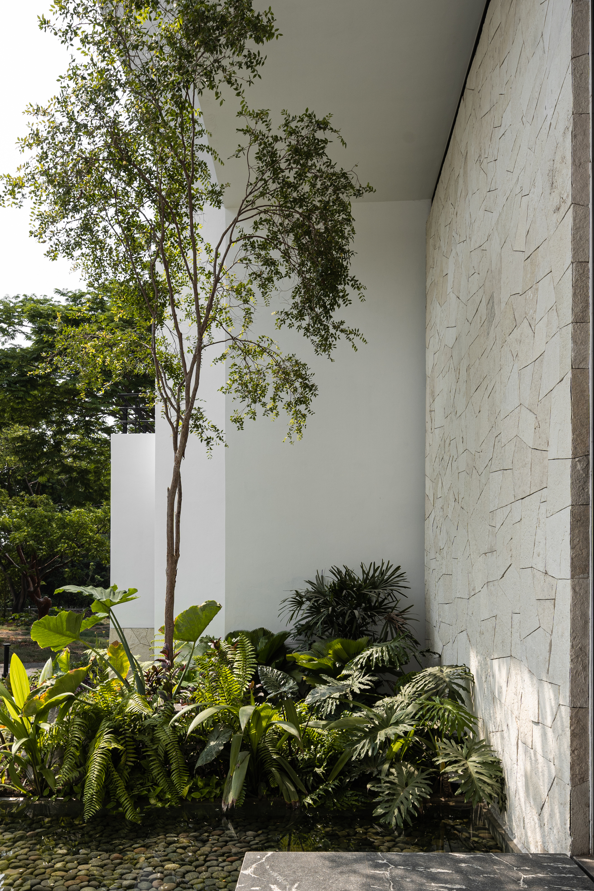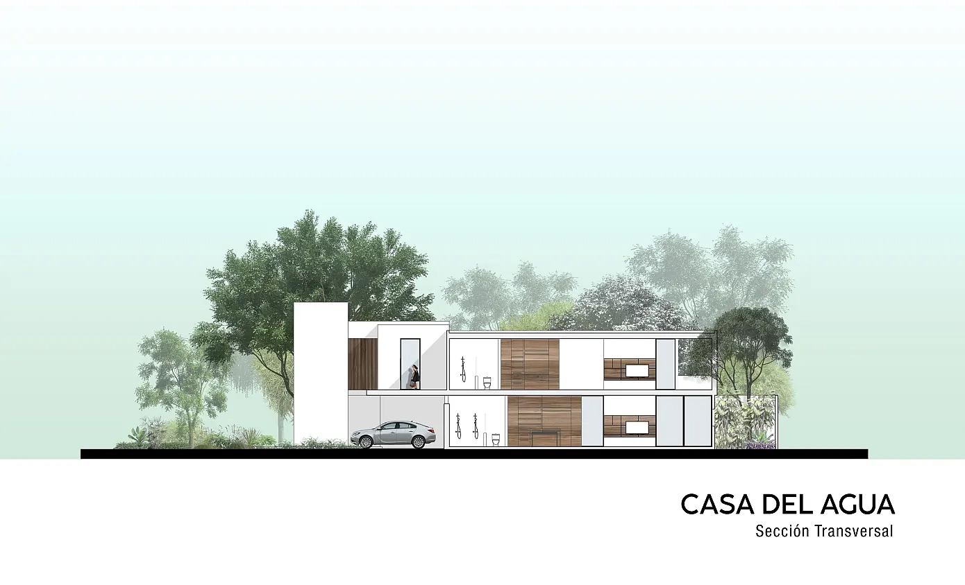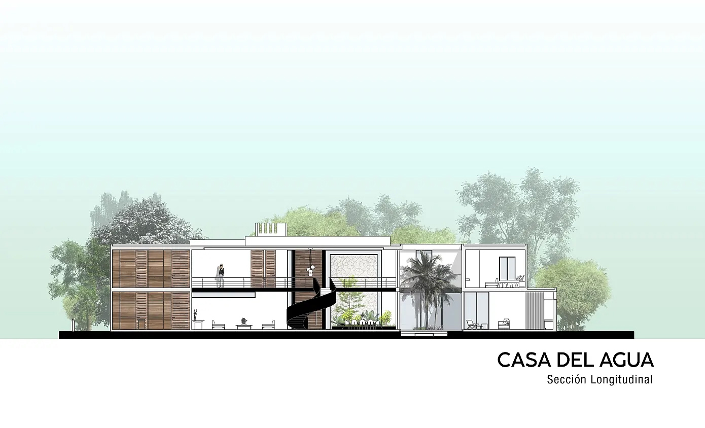 ‘La Casa del Agua(Water House)’라는 이름에는, 늘 물과 식물로 둘러싸인 집에 살기를 바랐던 건축주의 욕망이 반영되었다. 이 집의 랜드마크이자 주인공인 수영장은, 시선의 구심점일 뿐만 아니라 햇볕을 가장 잘 받는 곳에 위치하여 때론 관조(혹은 물멍)의 대상이 될 수도 때론 분비는 주체가 될 수도 있을 것이다.