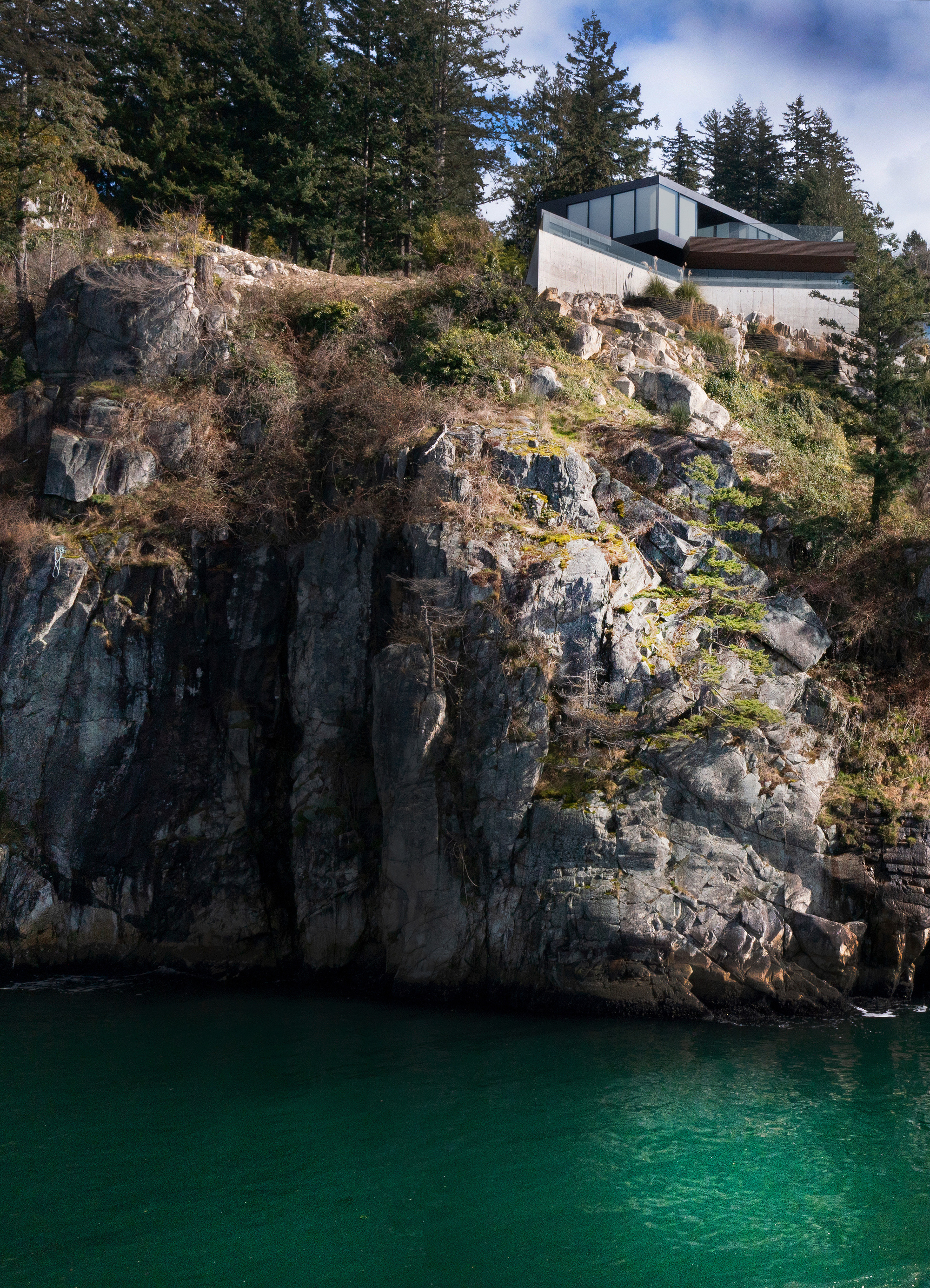 캐나다 서부에 있는 웨스트 밴쿠버, 그중에서도 화강암으로 이루어진 40m 높이의 해안 절벽 위에 자리 잡은 주택이다. 이곳은, 여러 대륙에 흩어져서 사는 이산가족이 선택한 지리적 ‘중간’ 지점이다.