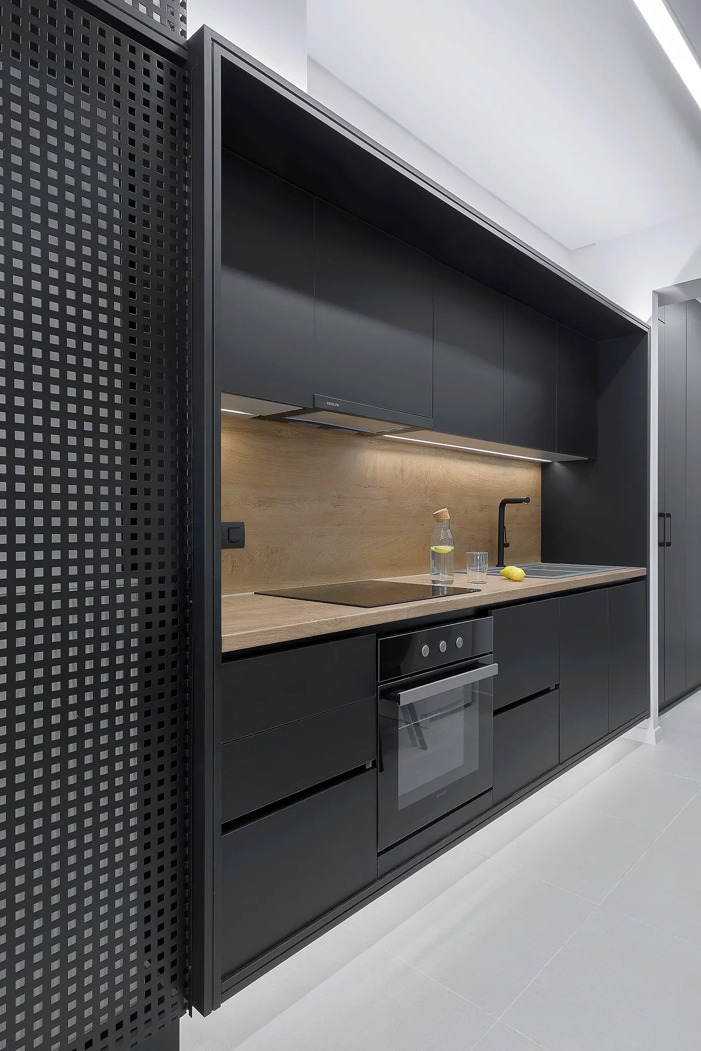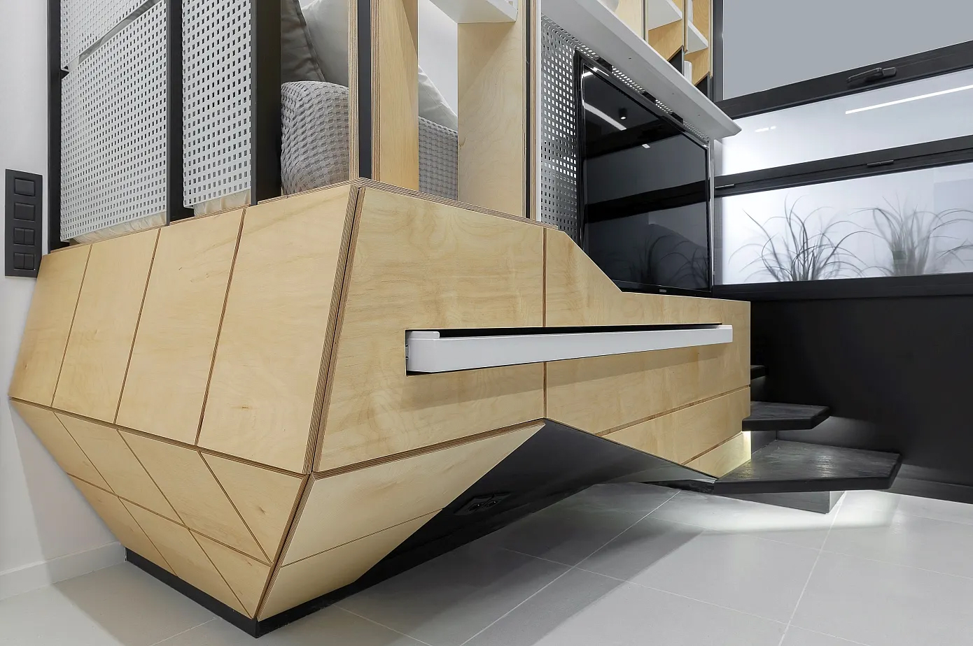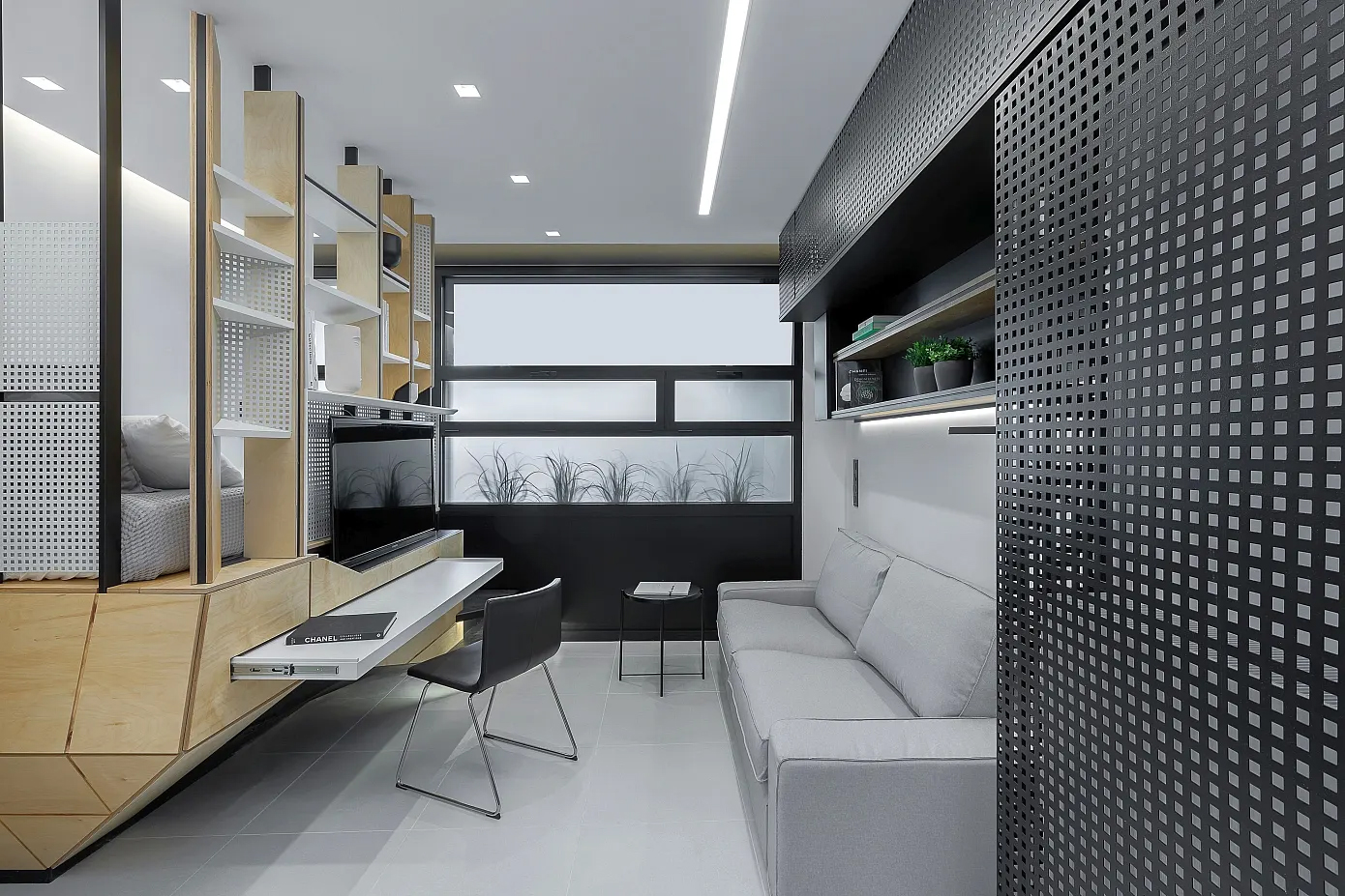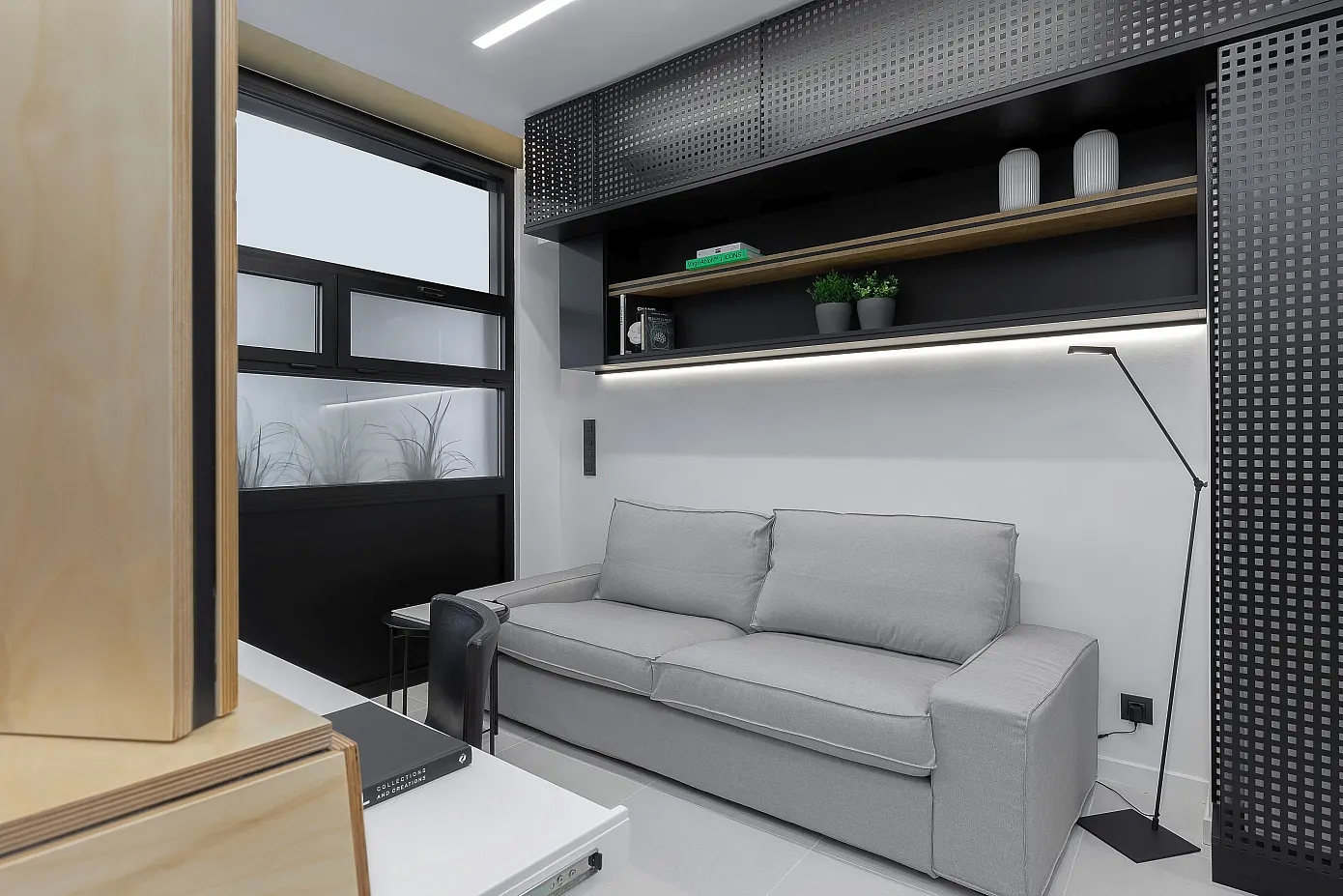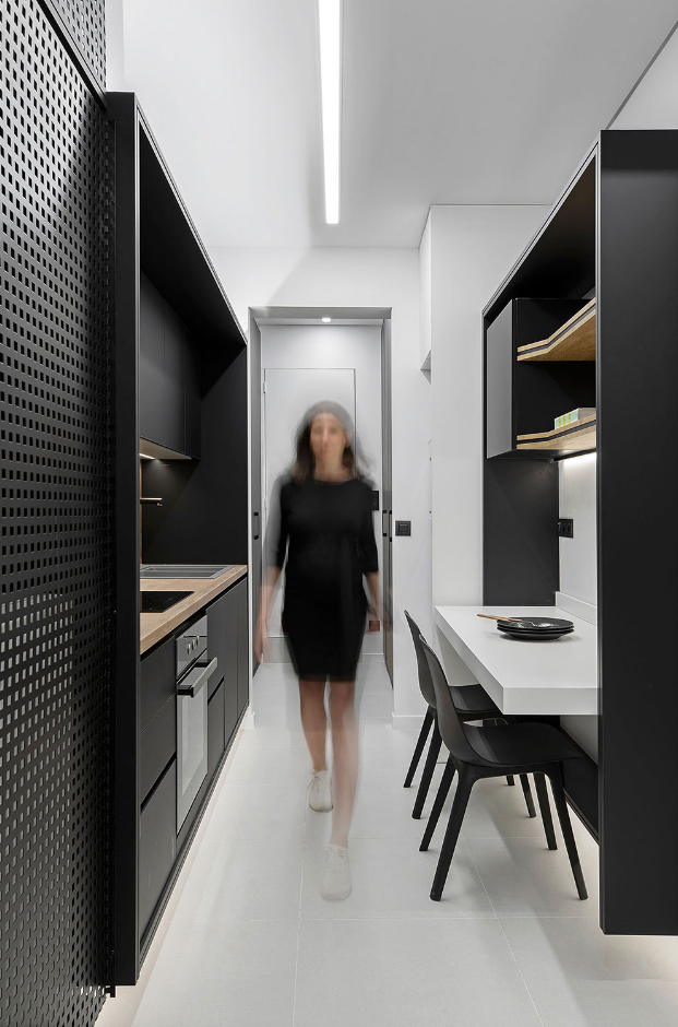 “디자인을 하면서 우리는 기존 공간의 단점을 있는 그대로 받아들여서 영감의 원천으로 삼았습니다.” 디자인팀의 설명이다. “우리는, 30제곱미터(약 9평) 규모의 공간을 보다 적극적인 방식으로 활용하여 최대한 다기능 공간으로 만드는 것을 목표로 삼고, 심플하면서도 우아한 스타일인 동시에 캡슐형 공간이나 좁은 선박 공간의 미학을 구현하고자 했습니다.”